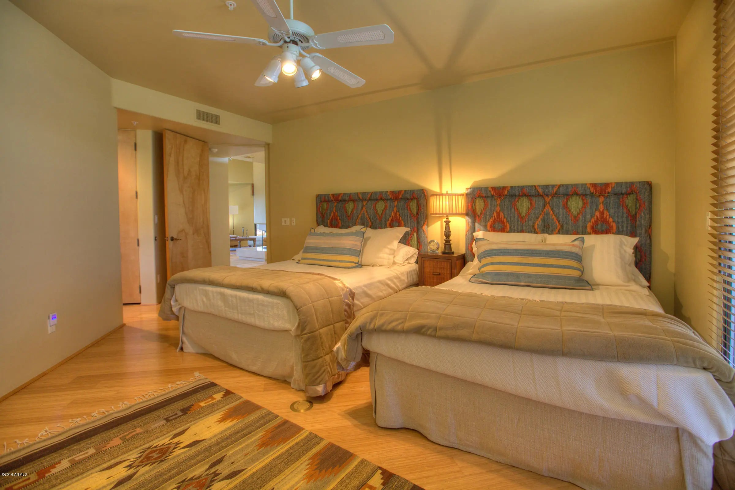 Fabulous home on the Apache golf course. Open and bright floorplan. Split master with two en-suite guest rooms. South facing with mountain and city light views. Pool and spa. Cost to heat pool is $100 per day. Available dates pending owners final approval. Per DMMA CC&R's, this home is available to rent on short term basis (30 days or less) to eligible renters. Eligible means current property owners in DM or current Club members of DMCI. Any person not a current property owner in DM or member of DMCI may only rent for 30 days or more.