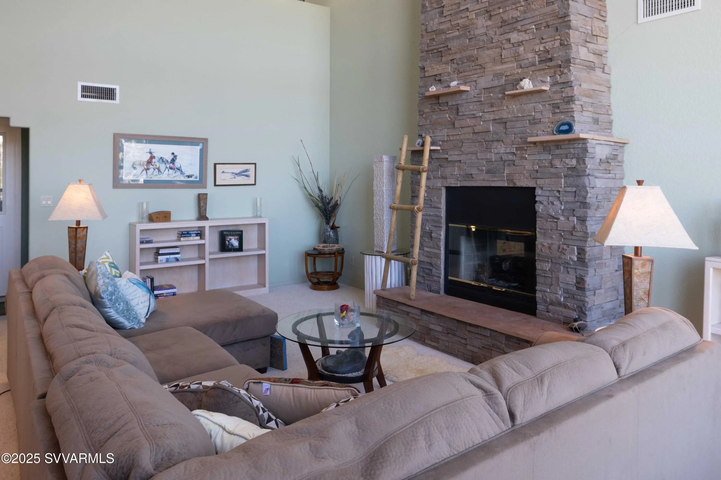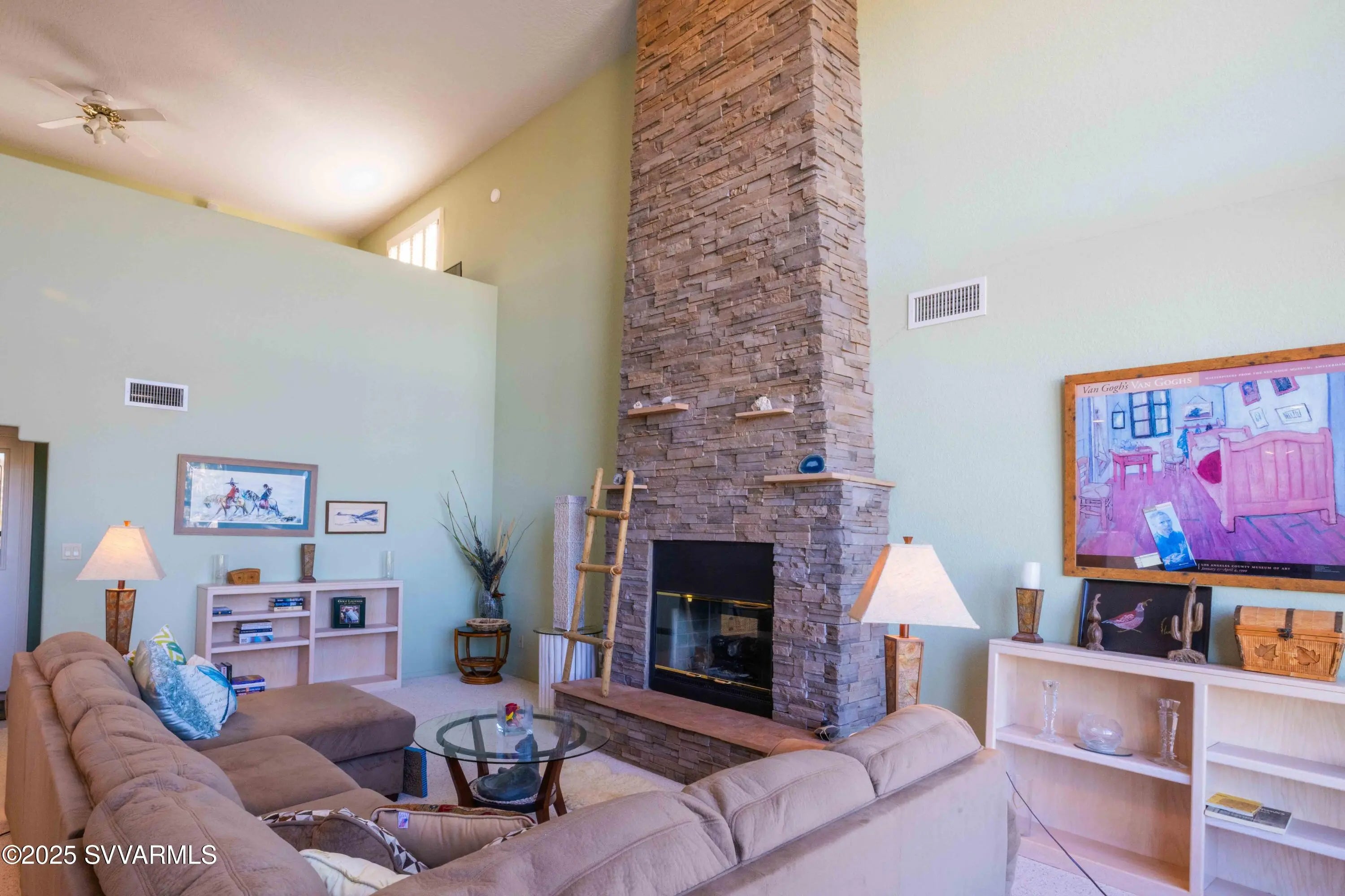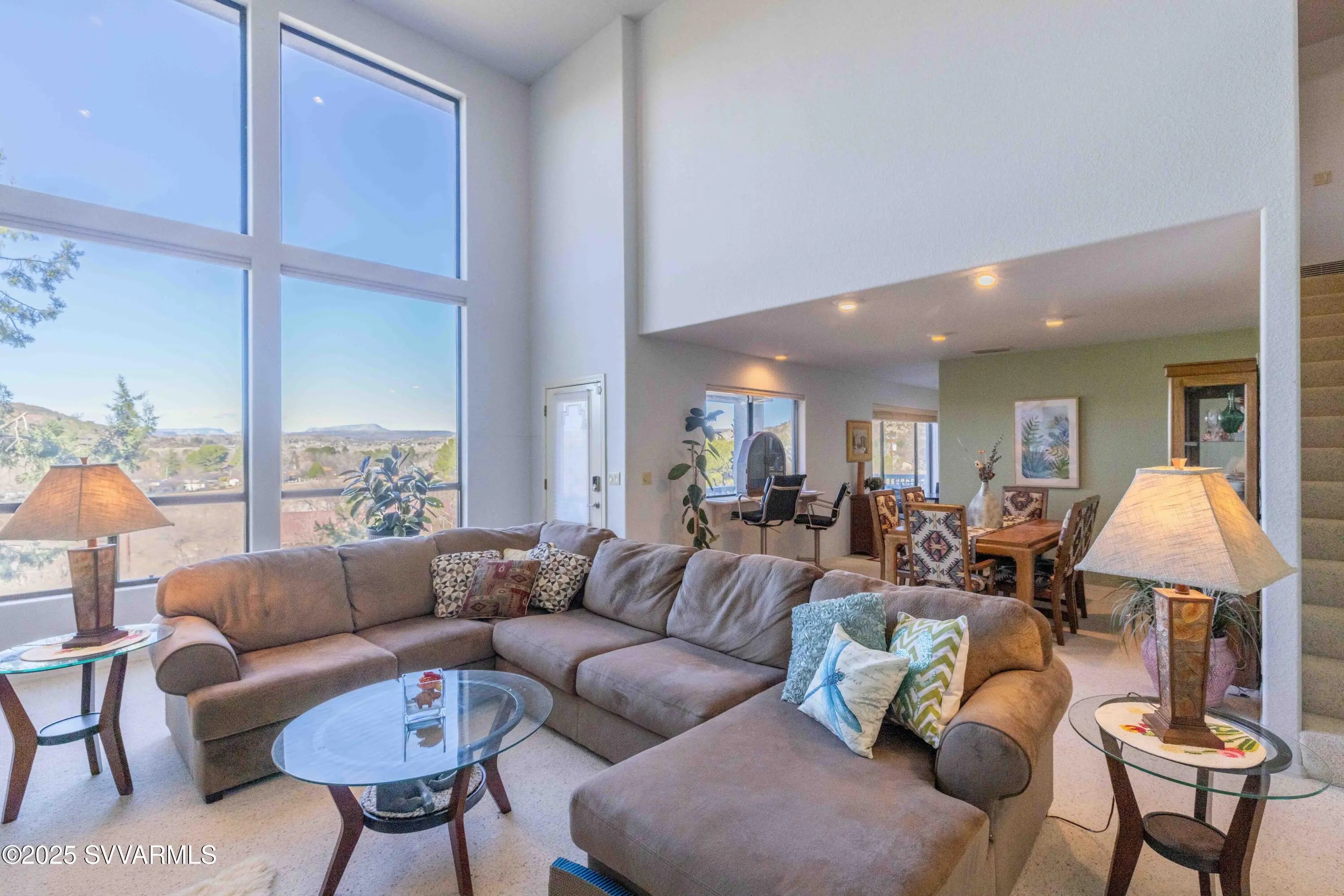 Perched high on a hillside with panoramic views to Sedona; this home has been well cared for & has only had 2 owners. Enjoy the views of Mingus Mountain, Sedona's famed red rock and the San Francisco Peaks in Flagstaff from the large deck or the living room with it's 16 foot ceilings and incredible rock fireplace. You'll find 2 guest bedrooms on the main floor with the primary bedroom and a loft tucked away on the upper level. There's a charming coffee bar/wine room with built in cabinets and sink in the guest wing; as well as a separate laundry room with utility sink. The primary suite has 2 large closets and a cedar closet, laundry chute, jetted tub and fireplace. If that's not enough, you have 2 full driveways for extra parking, a workshop and half bath in the garage.