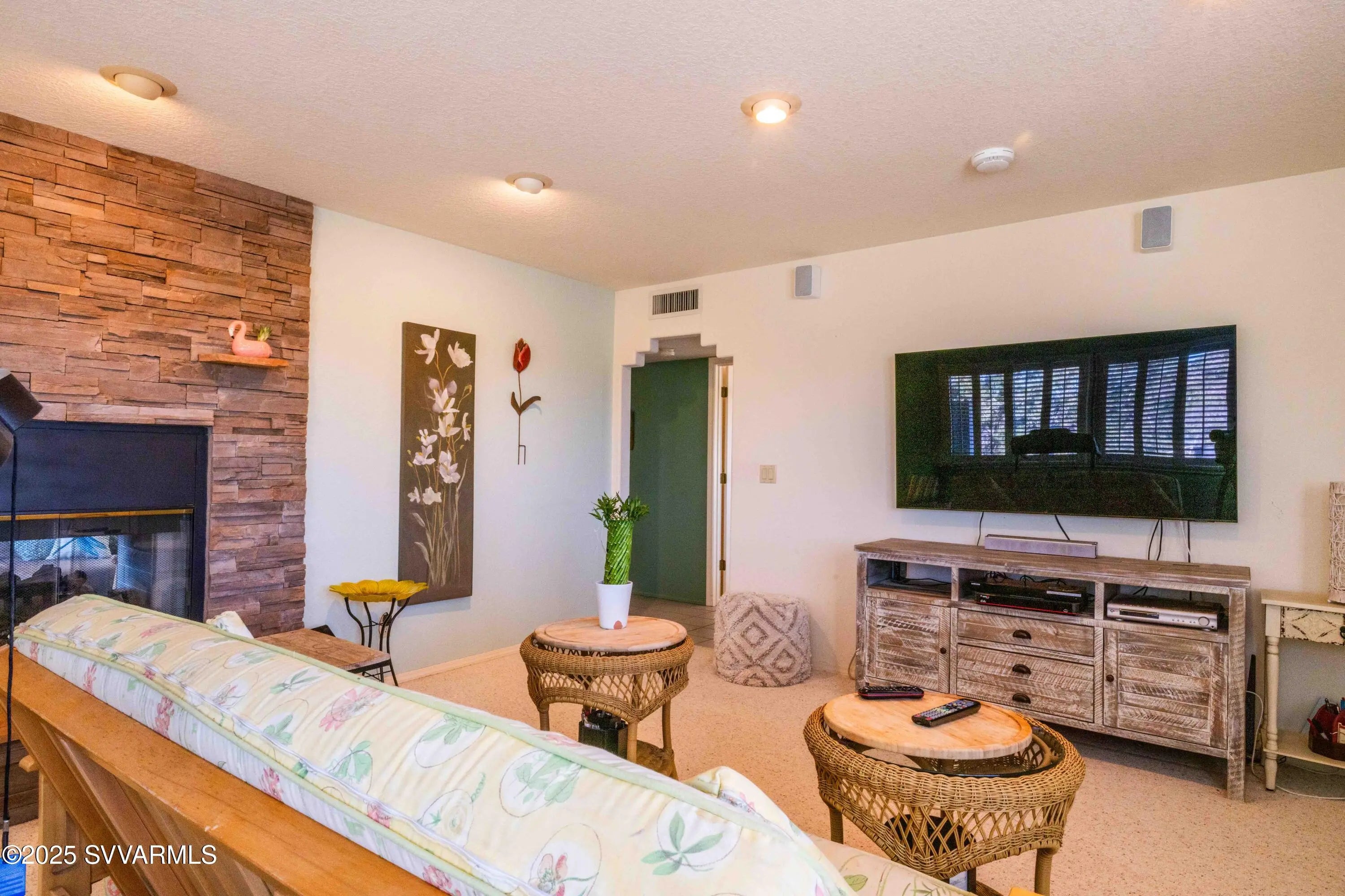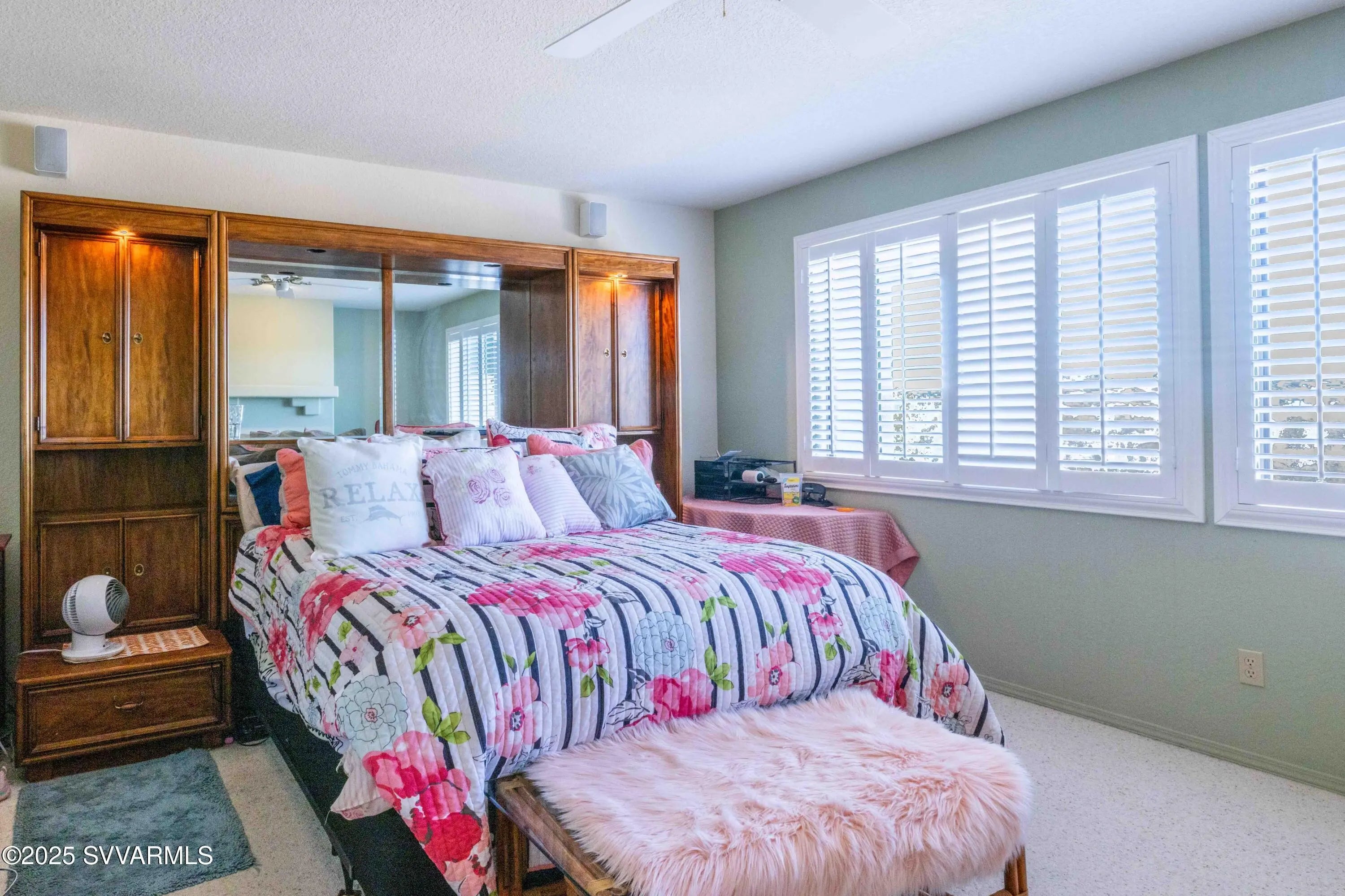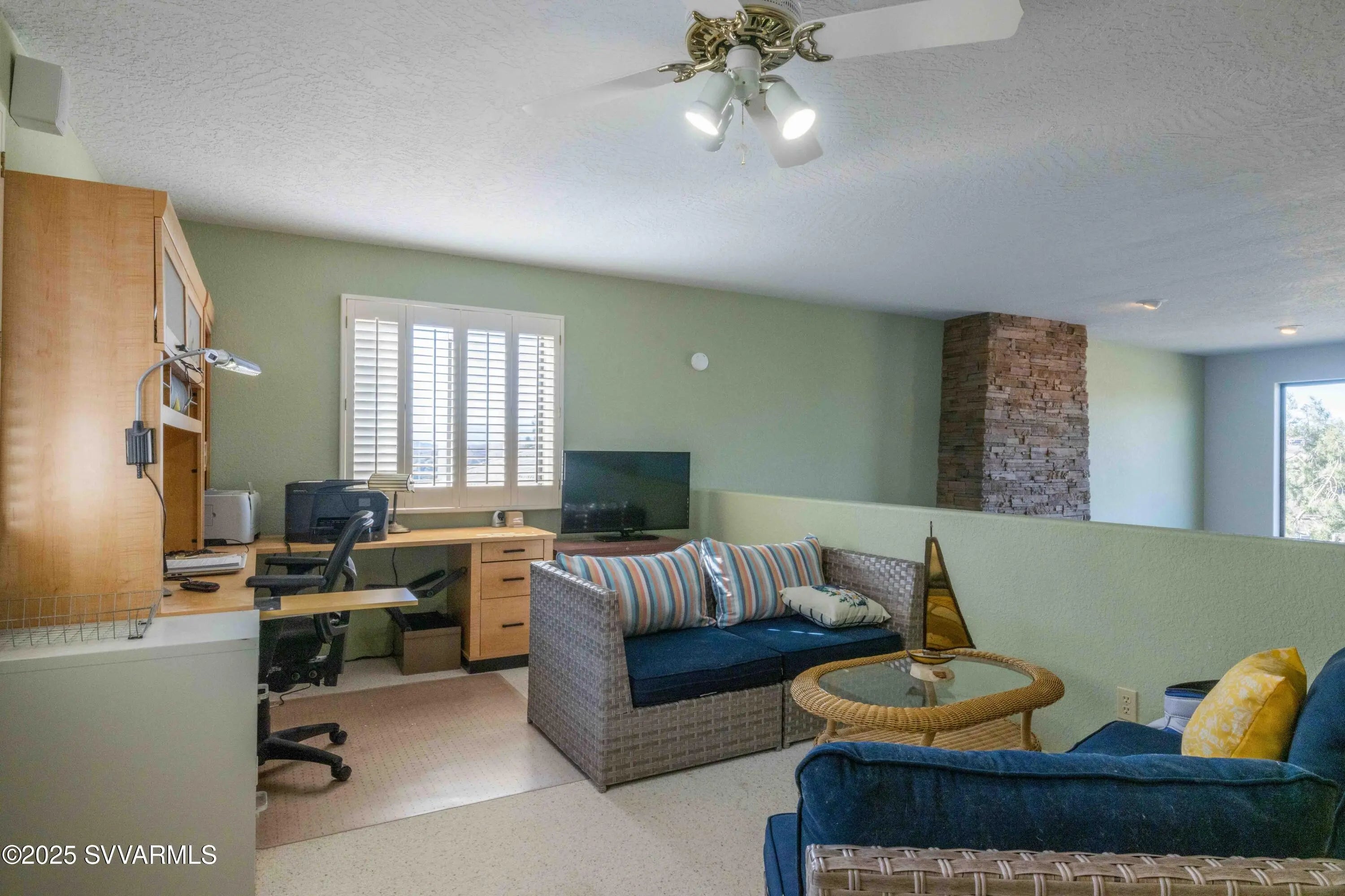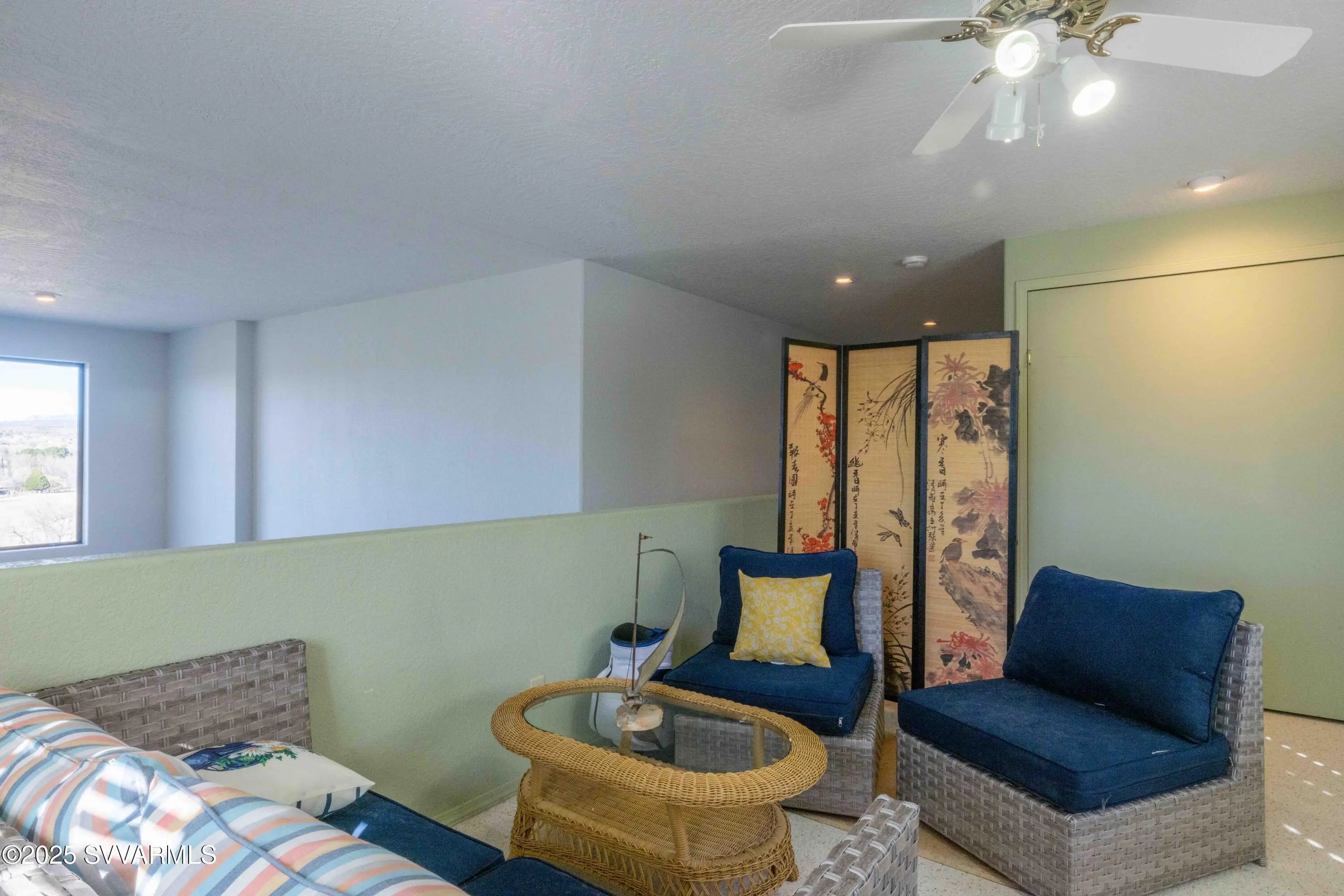 Perched high on a hillside with panoramic views to Sedona; this home has been well cared for & has only had 2 owners. Enjoy the views of Mingus Mountain, Sedona's famed red rock and the San Francisco Peaks in Flagstaff from the large deck or the living room with it's 16 foot ceilings and incredible rock fireplace. You'll find 2 guest bedrooms on the main floor with the primary bedroom and a loft tucked away on the upper level. There's a charming coffee bar/wine room with built in cabinets and sink in the guest wing; as well as a separate laundry room with utility sink. The primary suite has 2 large closets and a cedar closet, laundry chute, jetted tub and fireplace. If that's not enough, you have 2 full driveways for extra parking, a workshop and half bath in the garage.