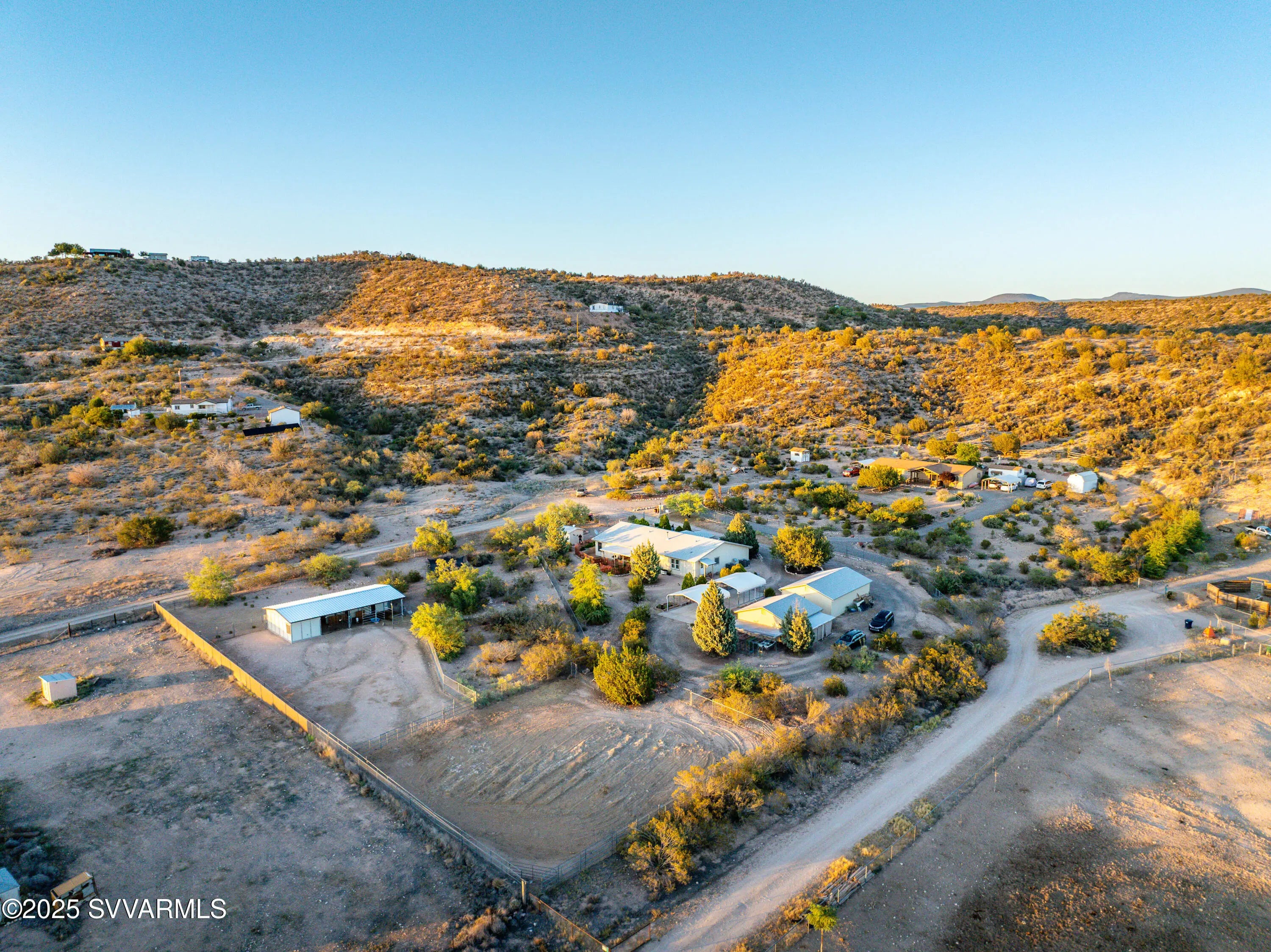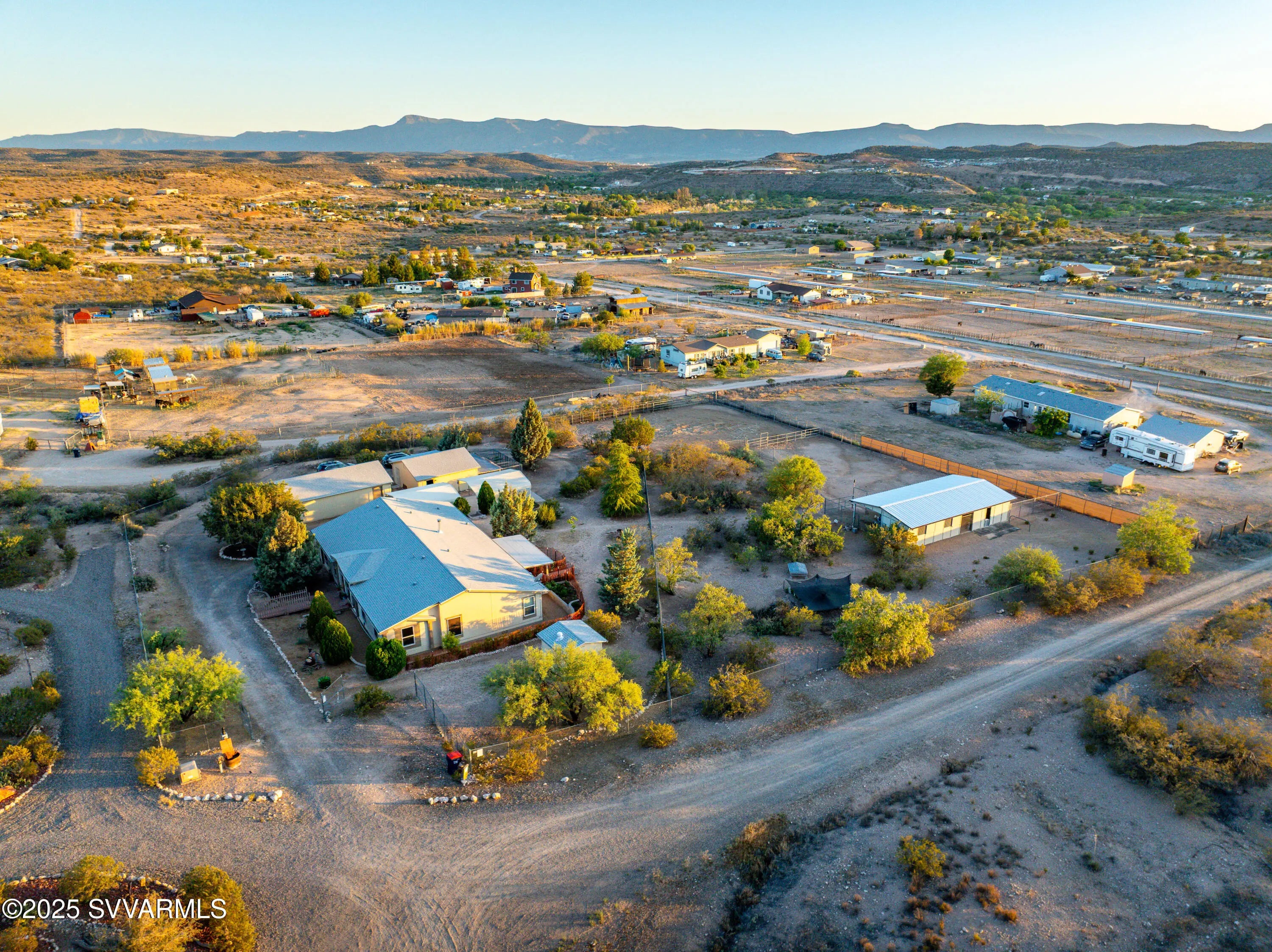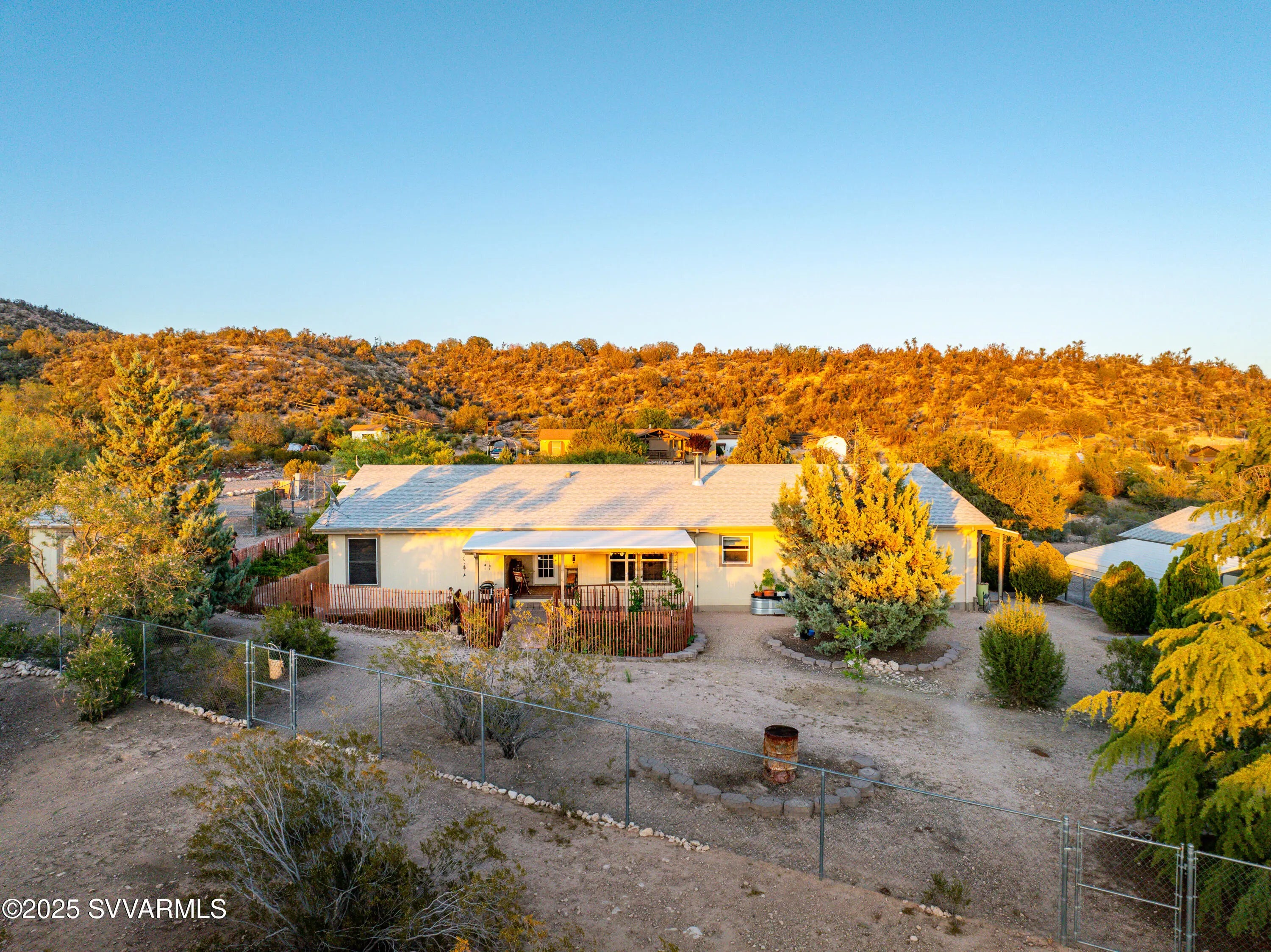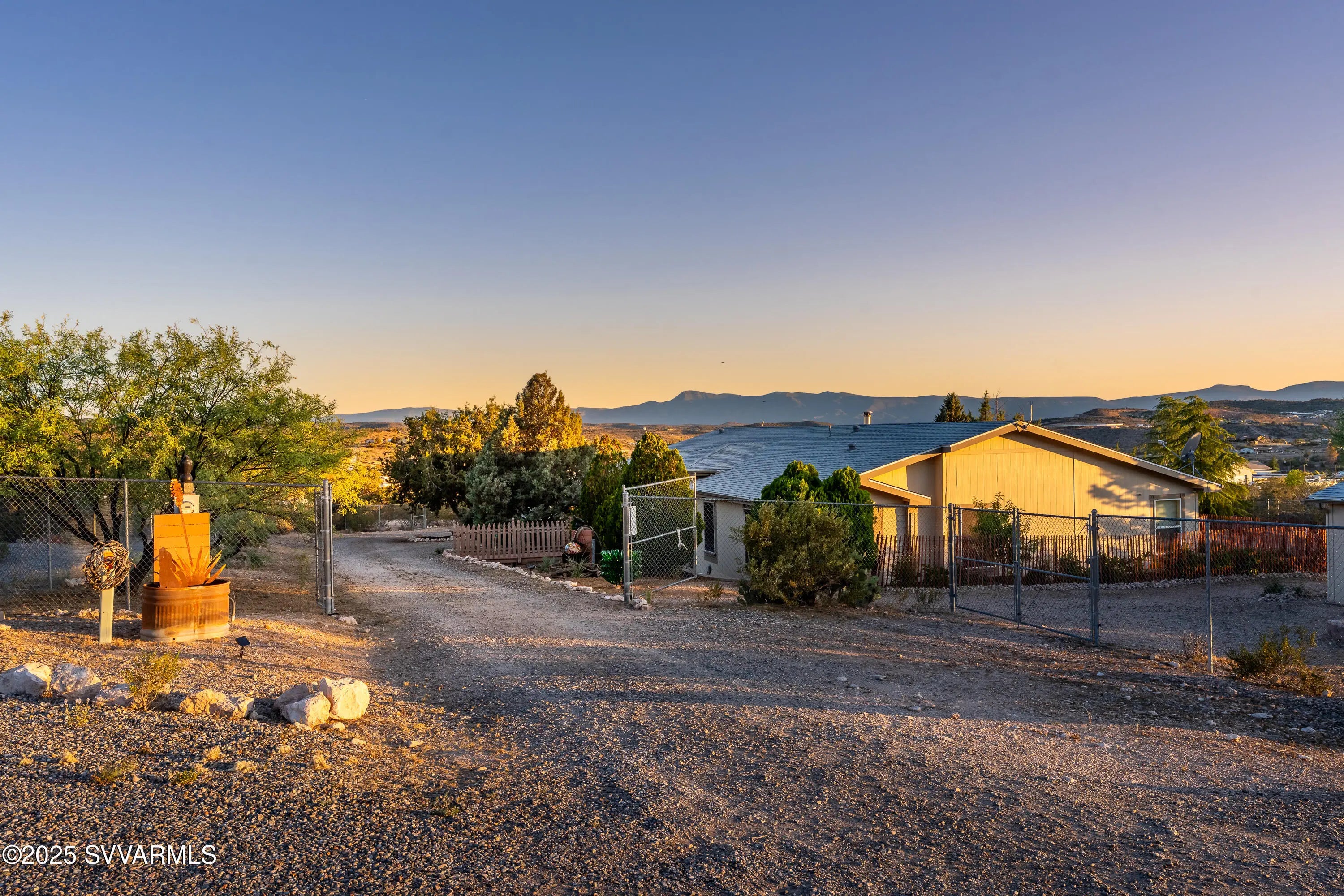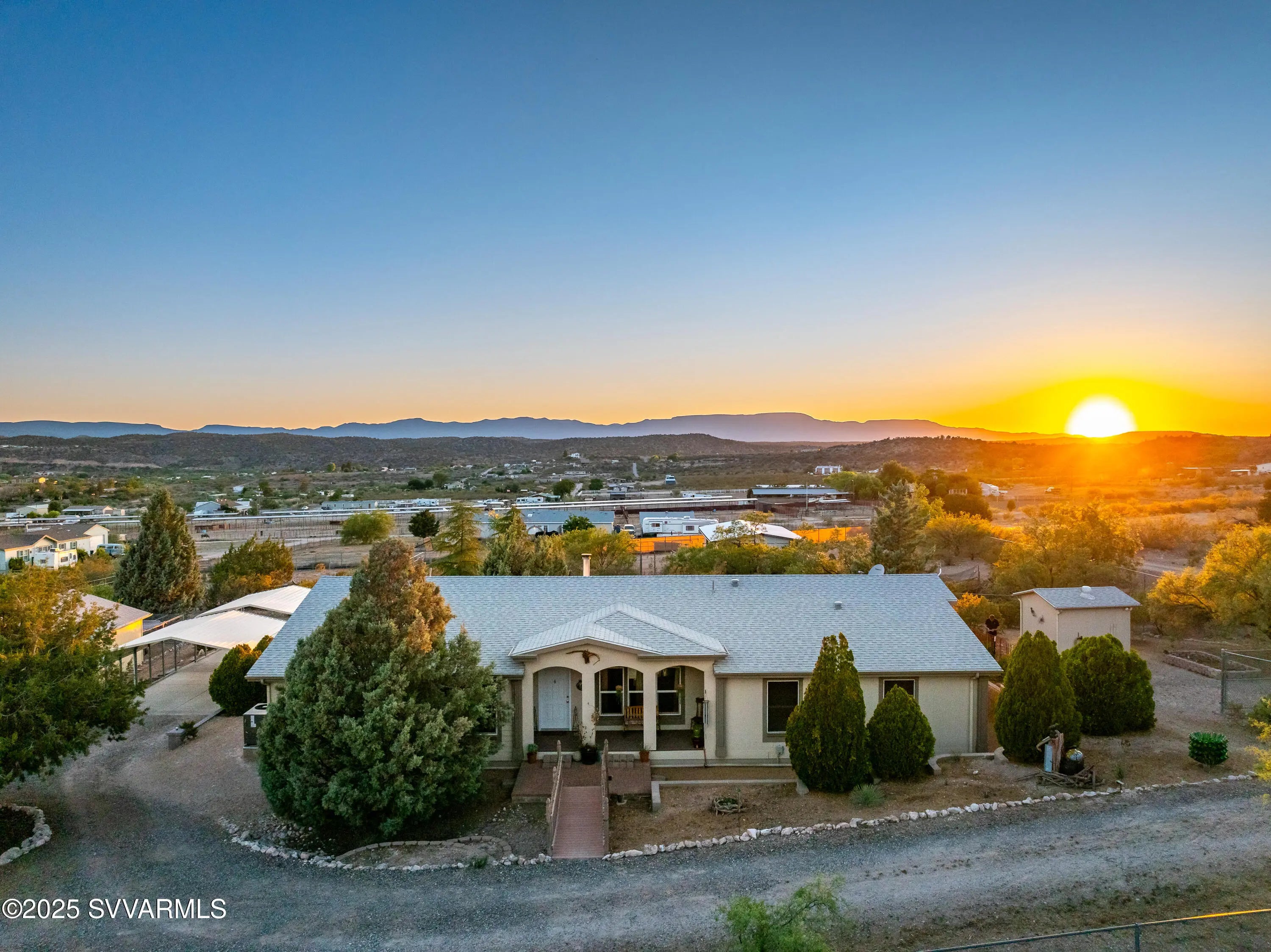 Welcome to a hidden oasis in rural serenity. Garden beds, animal spaces and sunsets make this an ideal property to Homestead. 2 Acres holds this 2,760 SqFt, 4 BD /2 BA home, 864 SqFt detached garage, 576 SqFt finished animal care building with four dog or cat kennels & runs, 1,152 SF barn with 3 stalls, tack room and huge paddock. 2 paved carports & private well with well house. This well cared for property got a new roof in 2022, new water heater in 2021, 2 new AC units in 2020 and a new well pressure tank in 2023. The property is fully fenced and cross fenced. It has an ideal private wing for mother-in-law, AirBnb, long term rental income or use it for office, art and kids! The house boasts a magical natural lighting. Properties like this are rare to find, lovingly maintained.