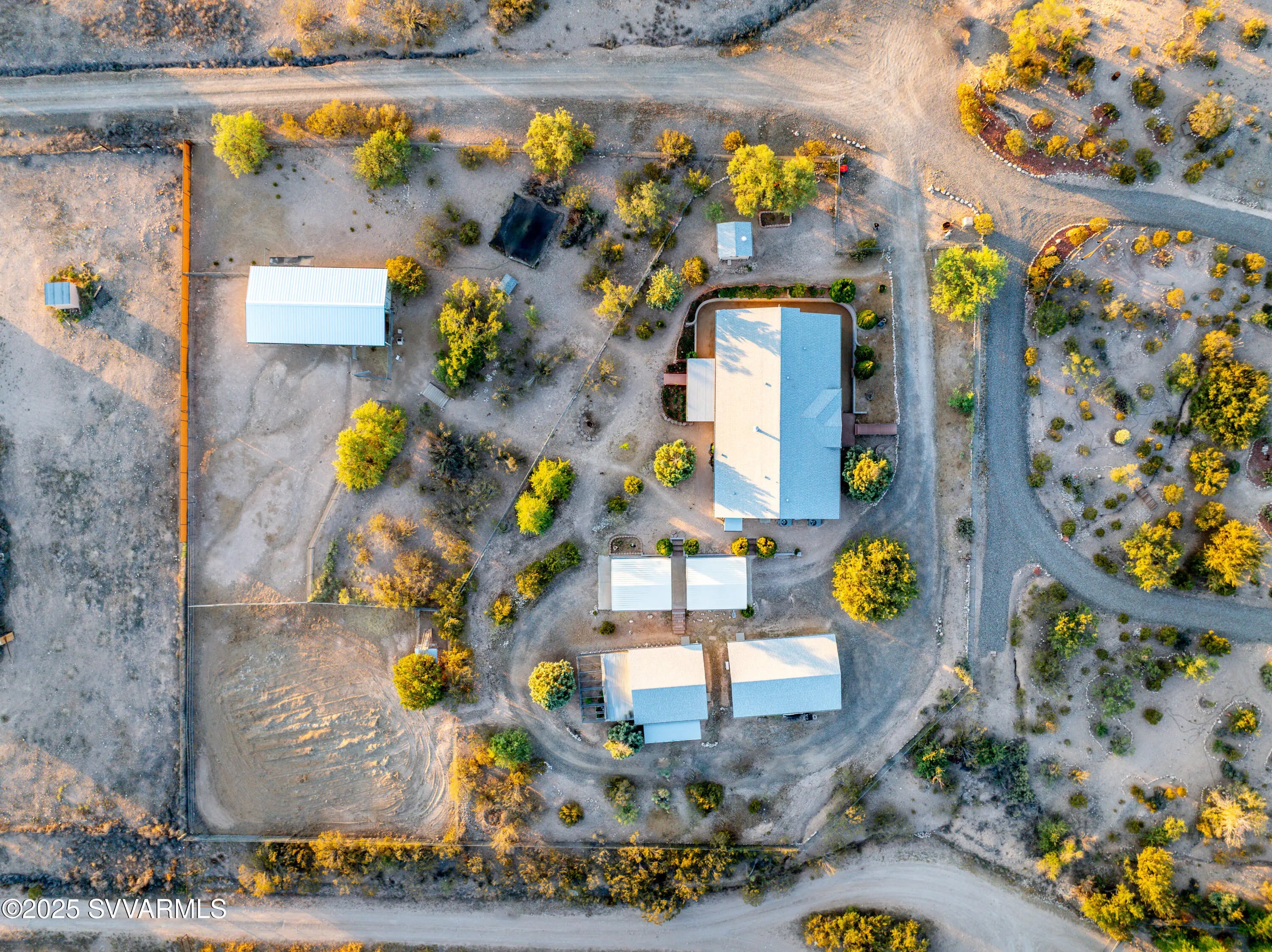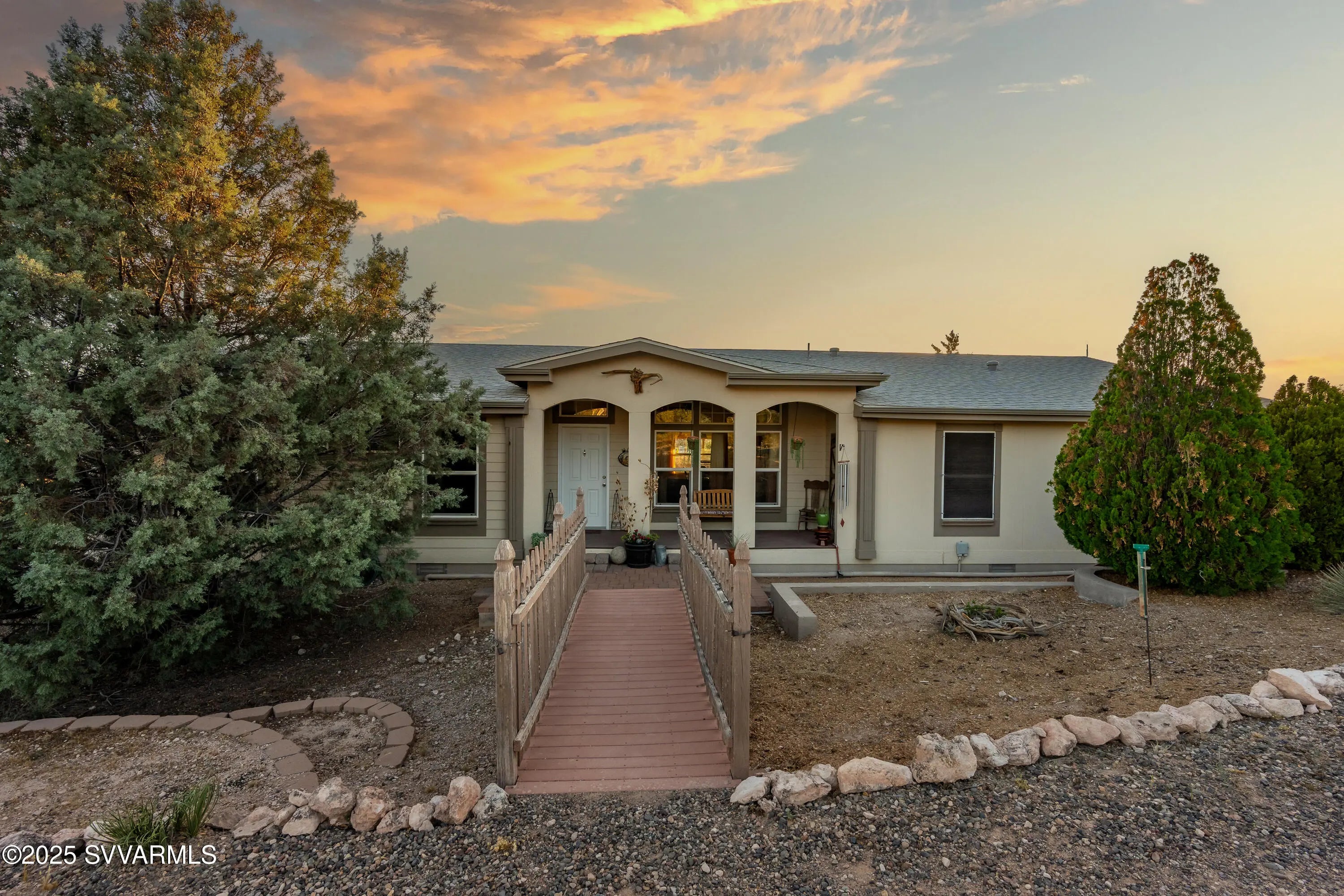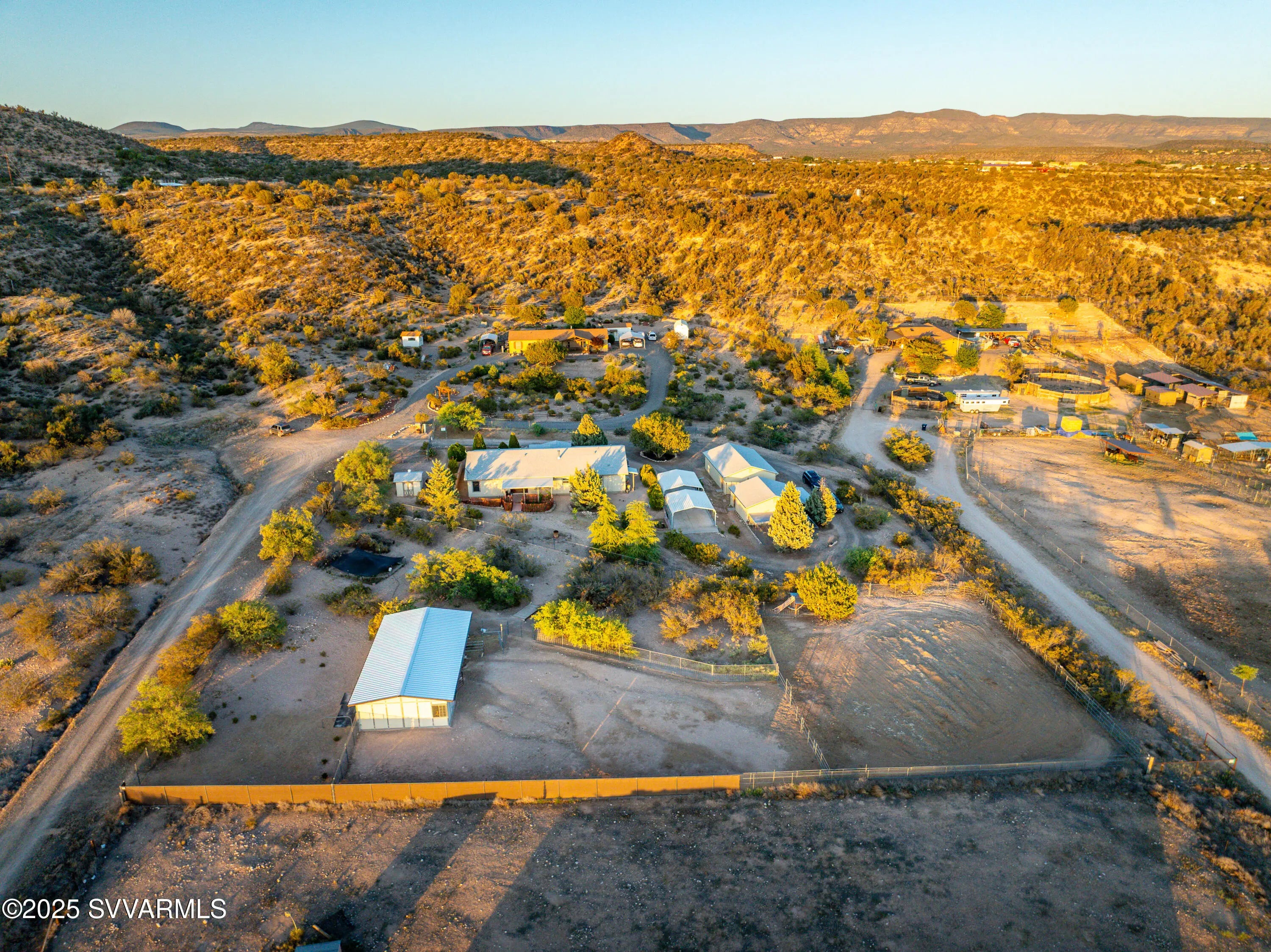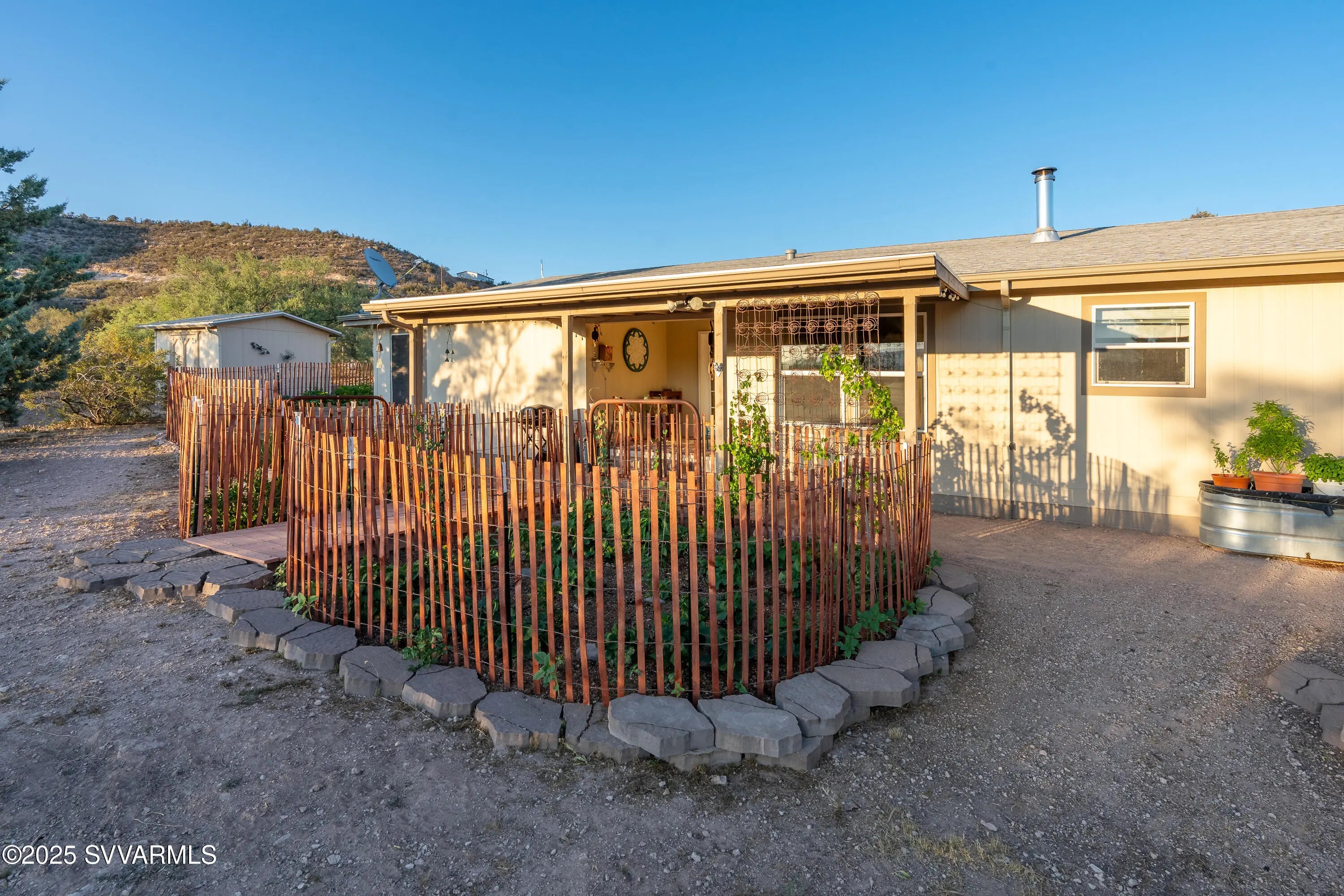 Welcome to a hidden oasis in rural serenity. Garden beds, animal spaces and sunsets make this an ideal property to Homestead. 2 Acres holds this 2,760 SqFt, 4 BD /2 BA home, 864 SqFt detached garage, 576 SqFt finished animal care building with four dog or cat kennels & runs, 1,152 SF barn with 3 stalls, tack room and huge paddock. 2 paved carports & private well with well house. This well cared for property got a new roof in 2022, new water heater in 2021, 2 new AC units in 2020 and a new well pressure tank in 2023. The property is fully fenced and cross fenced. It has an ideal private wing for mother-in-law, AirBnb, long term rental income or use it for office, art and kids! The house boasts a magical natural lighting. Properties like this are rare to find, lovingly maintained.