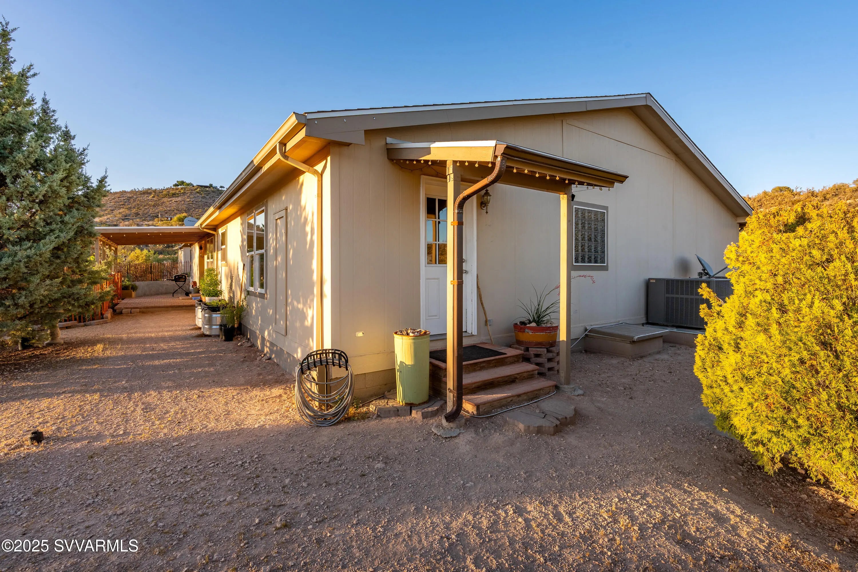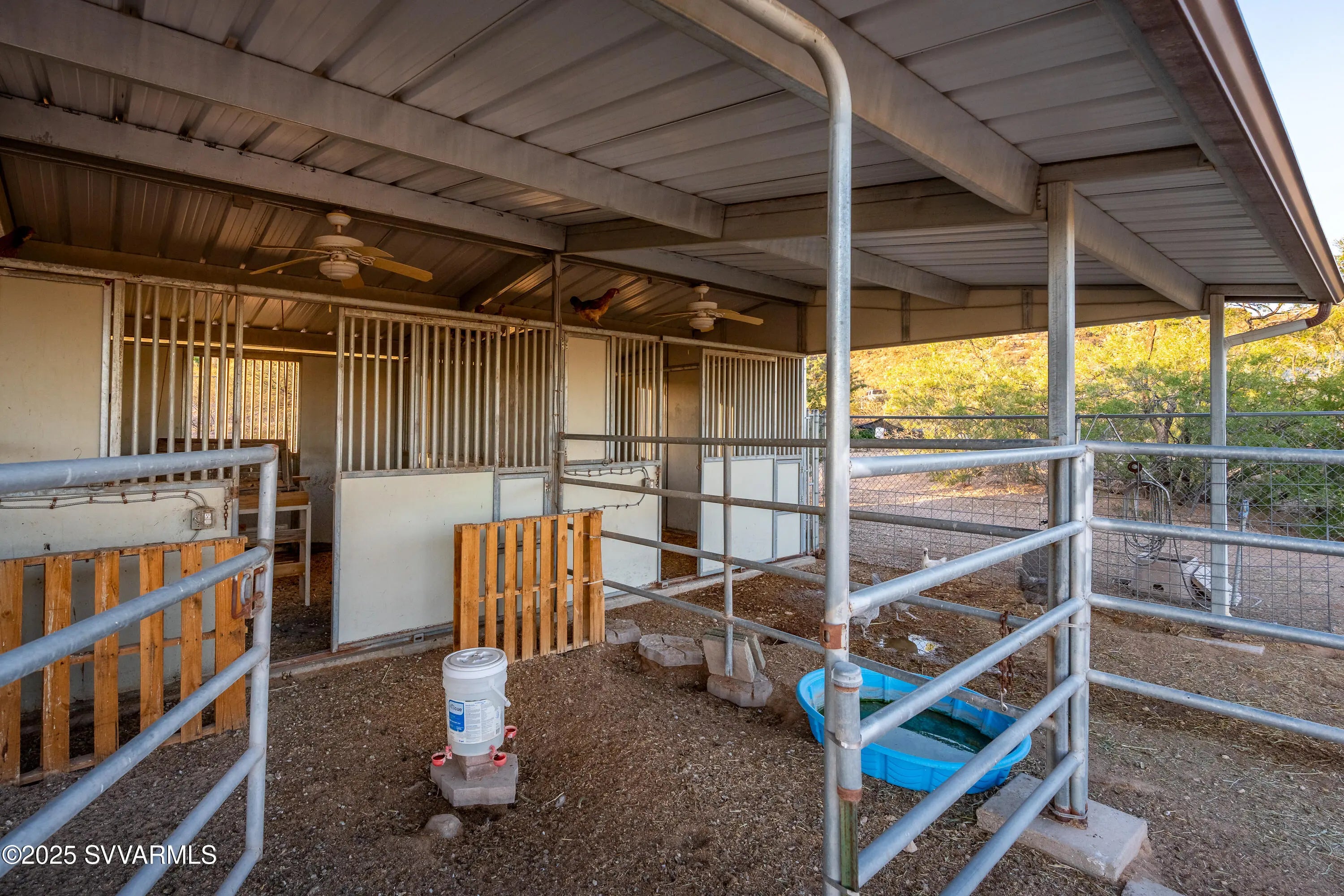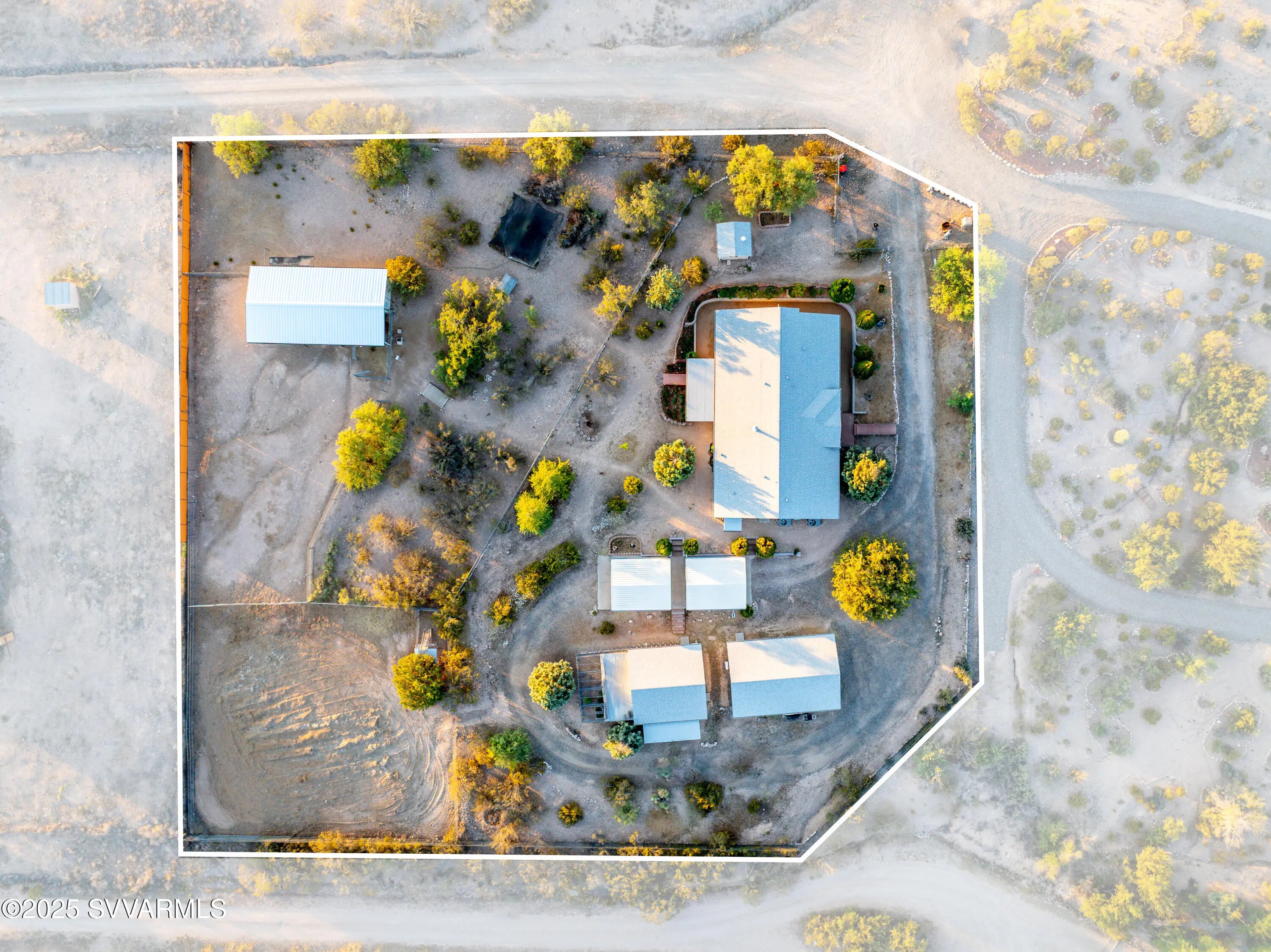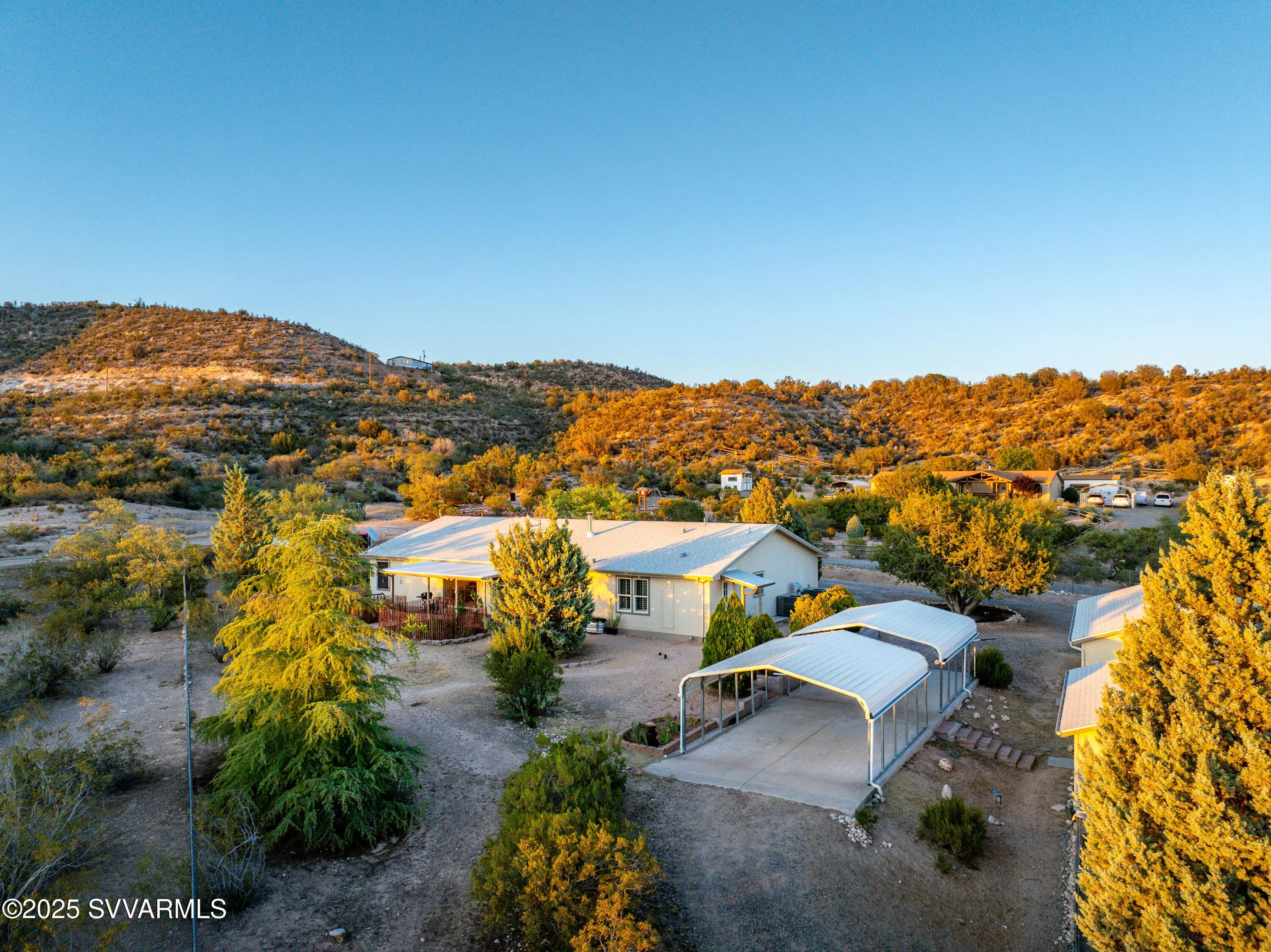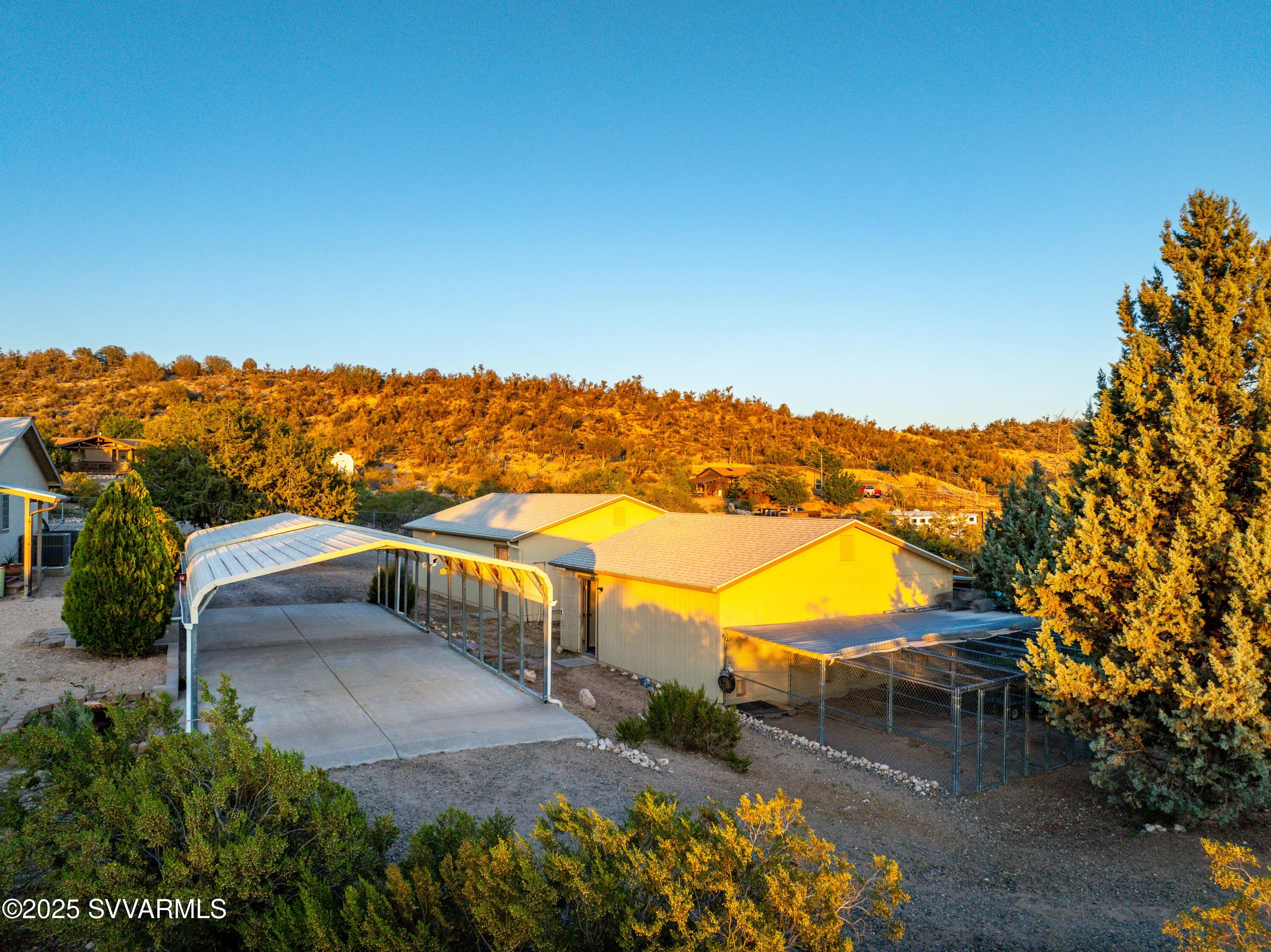 Welcome to a hidden oasis in rural serenity. Garden beds, animal spaces and sunsets make this an ideal property to Homestead. 2 Acres holds this 2,760 SqFt, 4 BD /2 BA home, 864 SqFt detached garage, 576 SqFt finished animal care building with four dog or cat kennels & runs, 1,152 SF barn with 3 stalls, tack room and huge paddock. 2 paved carports & private well with well house. This well cared for property got a new roof in 2022, new water heater in 2021, 2 new AC units in 2020 and a new well pressure tank in 2023. The property is fully fenced and cross fenced. It has an ideal private wing for mother-in-law, AirBnb, long term rental income or use it for office, art and kids! The house boasts a magical natural lighting. Properties like this are rare to find, lovingly maintained.