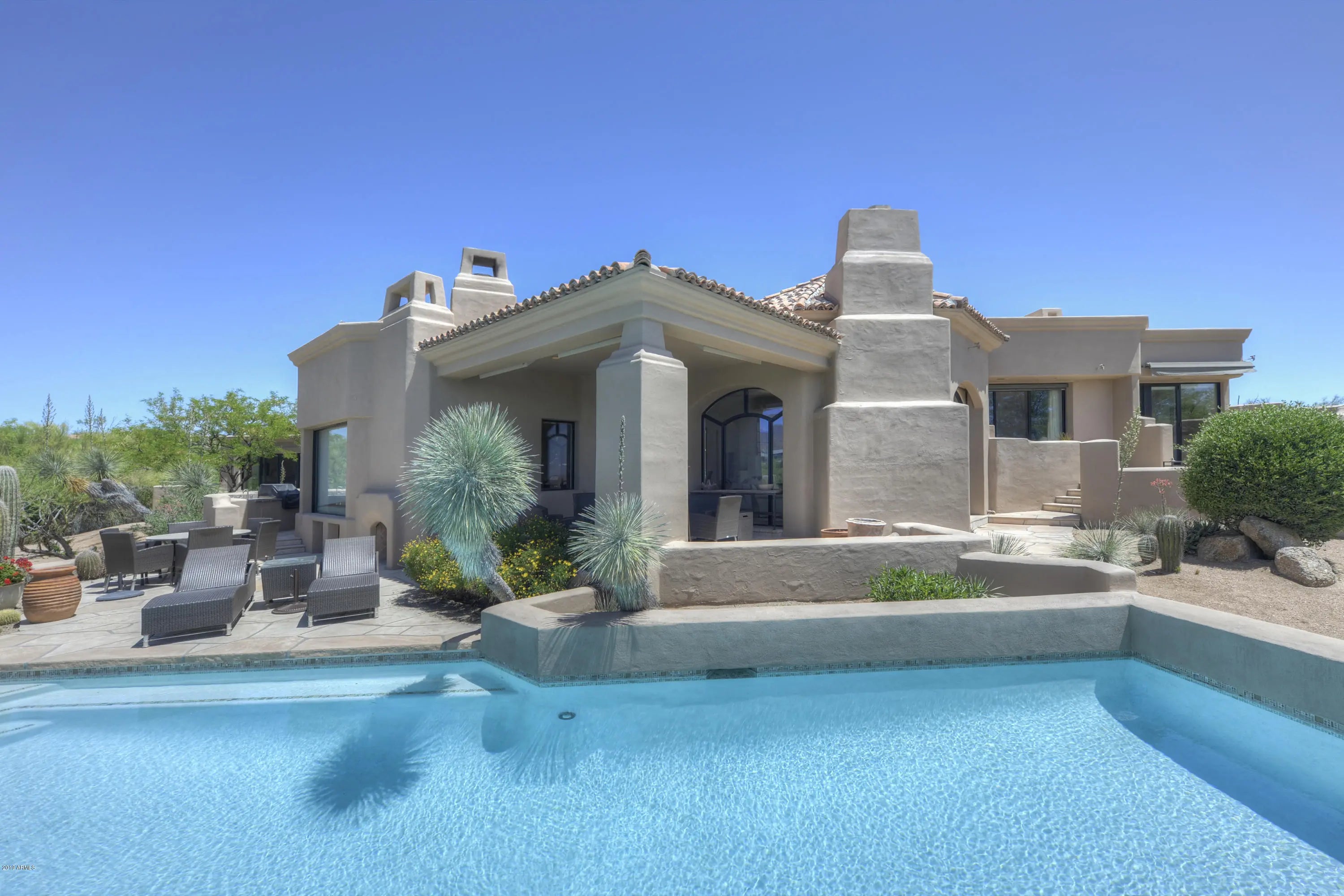 The absolute most peaceful and beautiful home to rejuvinate and enjoy Scottsdale. A Lash McDaniel home with stunning architectual elements and windows that frame a private sanctuary, natural open space, mountain views, and city lights. This welcoming home offers 3 bedrooms, and an office/den with a murphy bed. The cascading pool, built in BBQ, covered patio and open sitting areas make the backyard a place you won't want to leave. A newly constructed guest casita with bedroom, breakfast bar, bathroom, private entrance and private patio completes this oasis. Homes in Desert Mountain are available to rent on a short term basis (30 days or less) to eligible renters only. Eligible renters are defined as current property owners in Desert Mountain or current Club members of Desert Mountain Club, Inc. Any person who is not a current owner of property in Desert Mountain or a member of Desert Mountain Club, Inc. may only rent for 30 days or more.