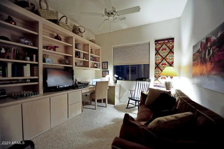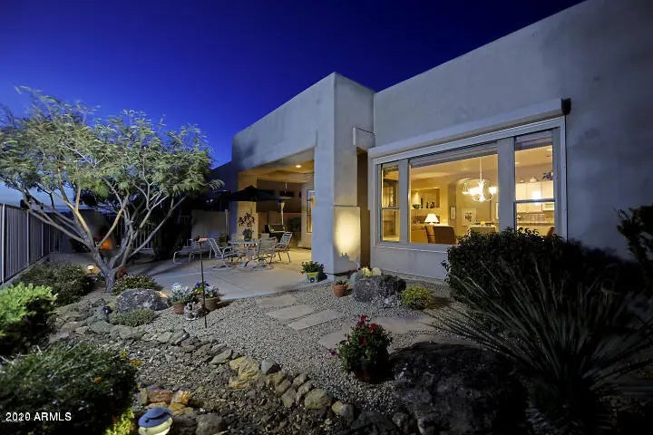 NOT available for Jan.-April 2025. Fully furnished 2/2 bedroom/bath on the 18th fairway of the Legend Trail Golf Course. The open great room plan has a master bedroom with a private courtyard, a second bedroom & bath & a den/office with built-ins. The kitchen, dining & living room all enjoy expansive uninterrupted views of the course, city lights, mountain profile & breathtaking sunsets. Walk to the community center with its two heated pool, spa, tennis/pickle ball courts, three fitness rooms, entertainment area & activities, or around the corner to the golf club for breakfast/lunch and/or golf. The Legend Trail community allows for privacy but hosts many activities for it's members/renters. This home is fully furnished & includes all utilities with caps on the electric at $200.00/m