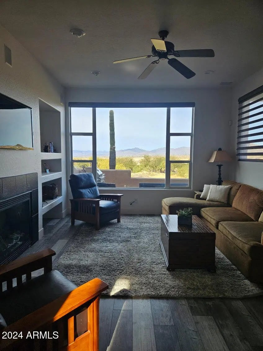 Fabulous Golf Course views!!! Lovely Tuscan-stye Gated Community at the highest elevation of the Village at Troon North. It provides spectacular views of the surrounding mountains & beautiful World-Class Golf Courses. This magnificent luxury townhouse has a prime view lot & stunning views from every window. Terrific floor plan features quality upgrades, custom crafted cabinets, designer appliances, engineered stone countertops, gas fireplace and upgraded flooring. Each of the large bedrooms offer walk-in closets & private balconies. This one is a MUST SEE!