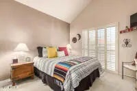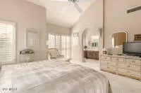 Great location, AZ SW charm with tile throughout, light and bright w/eat at island, entertainers delight and ready for a large family. Resort community in Scottsdale Ranch. Location, Location, Location! 24 Hour Manned Gated community of the Racquet Club. Close to 1 of 5 pools, BBQ grills, 6 spas, 9 tennis courts, 2 pickleball courts, Fitness Center with Sauna, Tennis Pro, Activities Director and a Grand Clubhouse. Close to the 101, Scottsdale Ranch's Lake Serena, Scottsdale Ranch parks, restaurants, shopping, golf, spring training facilities, resorts, casinos, Old Town Scottsdale and much more! Great for vaction rental. First months rent due at signing of the lease. Prices may vary based on availability and season.