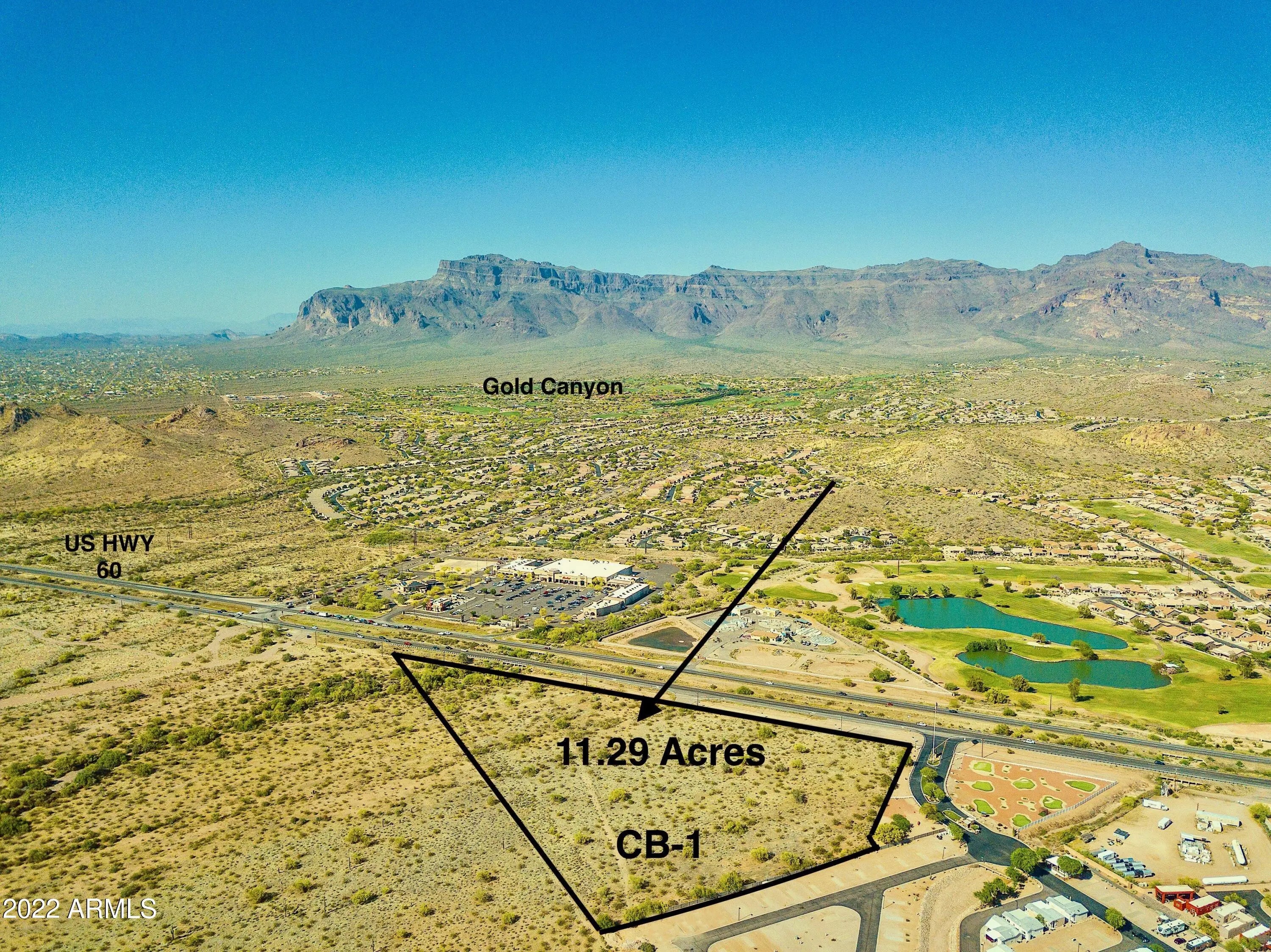 Development opportunity in Gold Canyon with large frontage on US Highway 60. Visible traffic from both directions would provide excellent exposure. Annual Average Daily Traffic estimated over 29,000 in 2020 between Exit 200 Goldfield Rd. & Superstition Mountain Dr. Borders large tracts of state owned land. Zoned CB-1, Local Business District in Pinal County with permitted land uses of office, retail & other commercial uses (including gasoline stations). Opportunity for freestanding restaurant, hardware store, among many other needed businesses for the community, which is in demand. Four miles from Arizona Renaissance Festival. Excellent opportunity in established community.