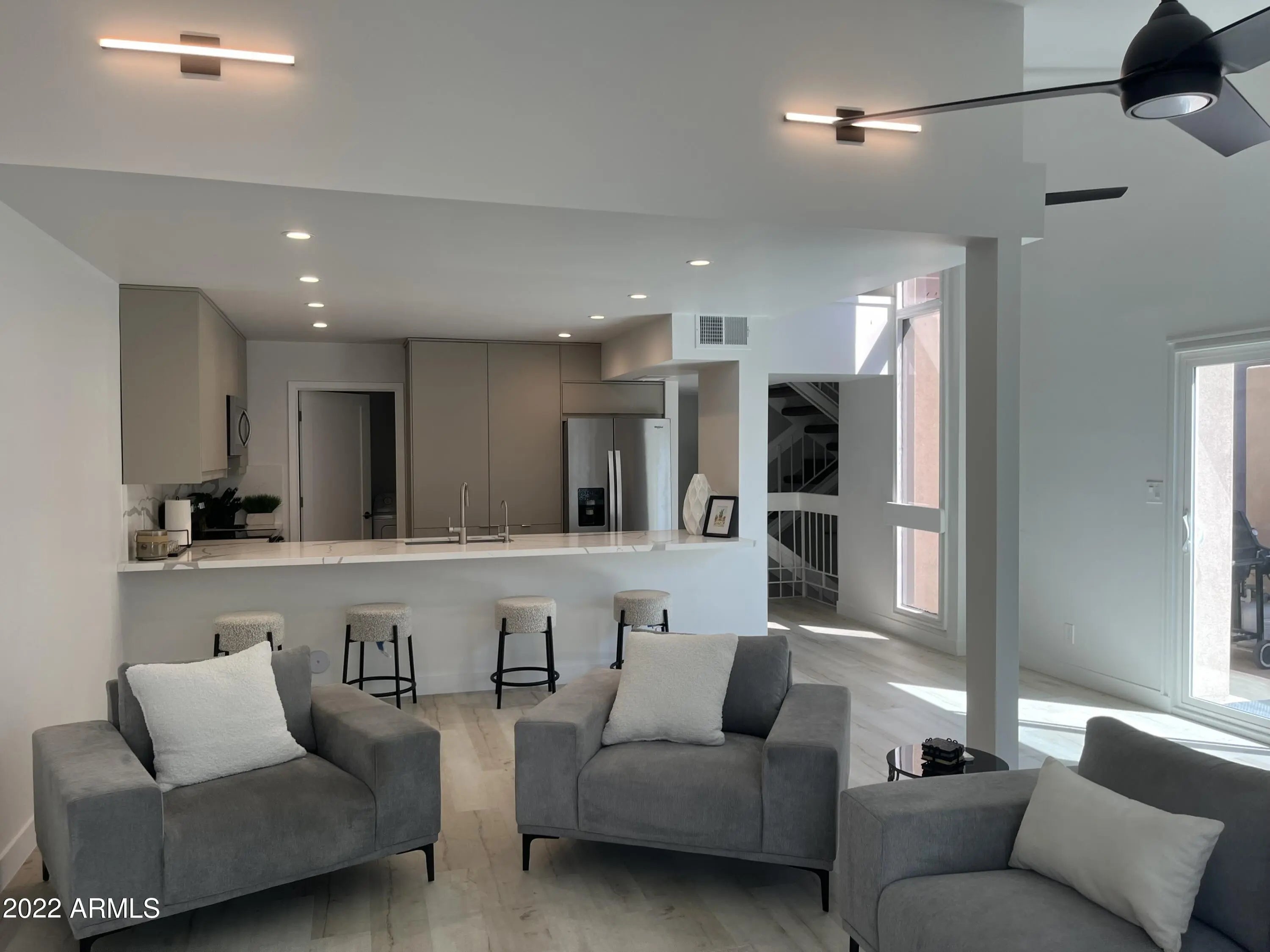 ONE-OF-A-KIND *REMODELED* AVAILABLE Exceptional fully updated contemporary Villa at the luxurious Casita Chaparral community. Spacious 2 bedroom, 2.5 bath townhome. with MOUNTAIN VIEWS! Perfect for entertaining! Bright open great room floor plan. Designer kitchen open to dining/living room with quartz countertops & backsplash, stainless-steel appliances. Two spacious master suites with luxurious spa-like bathrooms. Convenient full size and washer/dryer included. Amazing views of Camelback Mountain throughout. Relax on your private balcony and take in the fabulous sunsets. Large community pool and spa resort style living located directly on Scottsdale's Greenbelt. Walk to Chaparral Park, Old Town, golf and lots of shopping nearby! FULLY FURNISHED AND MOVE IN READY. ONE NOT TO BE MISS!