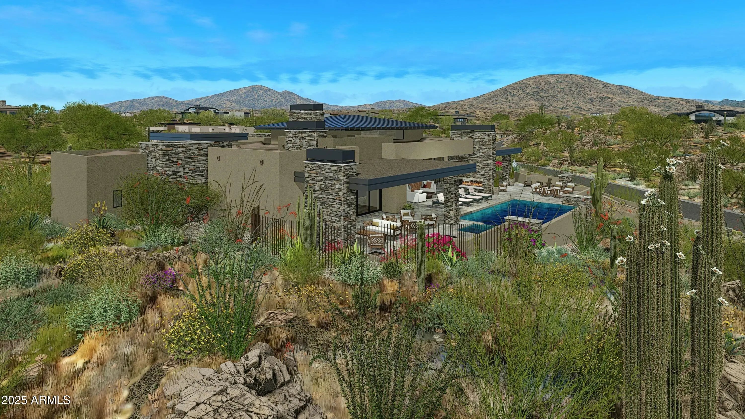 Membership available at increased price. Ground Break in Feb 2024- New build in Desert Mountain's Village of Gambel Quail Preserve Lot 215. Spectacular combination of Black Stone Development and Graffin Design on this cutting edge contemporary home featuring everything that today's buyers are seeking! Home features 4 bedrooms, office oversized laundry room and four car garage. Ideal great room floor plan. Oversized master bedroom with spa like bath and dual closets. A chef's kitchen with all the latest in high end appliances and cutting edge finishes that spill out to the patio through walls of glass, multi slide door systems and into the outdoor living, dining, patio, pool/spa and outdoor kitchen for today's outdoor living needs. Enjoy ample storage for autos and outdoor adventures in the four car garage with additional storage closet. Views include surrounding mountains including Lone Mountain, Black Mountain, The Continentals, sunsets and Desert Mountain night lights. The location of Gambel Quail Preserve is close to the main gate for quick access to shopping and dining. Additional community amenities include golf, biking and hiking trails. The Sonoran Fitness Center (spa, pickle ball, tennis, swimming, fitness facilities and much more) is nearby.