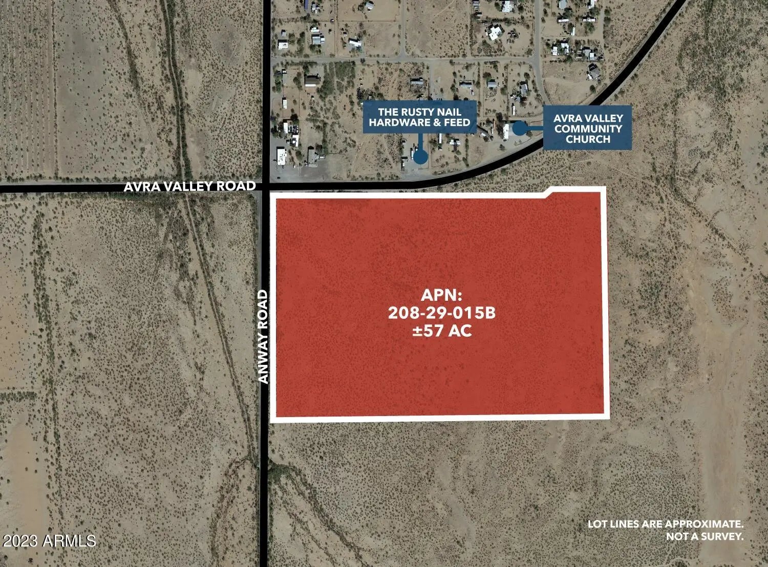 Rare +/- 57 acres in the Marana / Avra Valley AZ area. In the path of growth. Location, Location, Location!!! 57 flat acres on a section corner at the intersection of main east-west arterial Avra Valley Rd and major north-south paved Anway Rd in the fast-growing Avra Valley / Marana areas. Zoned RH (Rural Homestead) in Pima County. Many possible uses with electricity along the western boundary and level, easy to develop land. Commercial potential with businesses across the street. Develop an Equestrian business etc. Easy direct access to Marana, I-10 and Tucson. Near proposed future I-11 alignment. Great Investment / Speculative Buy. Seller will allow time for a re-zoning if wanted by Buyer. Detailed Marketing package available. See virtual tour for a birds eye view!