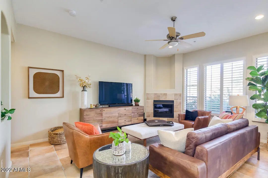 Enjoy this gem of a townhouse in an immaculate gated community of Cachet at the McDowells. Plenty of space in this split 3 Bedroom 2 Bath home. The master bedroom offers a King Size bed with luxury linens, 65'' Television and your own private balcony; as well as a large soaker bathtub, walk in shower and a large master closet. The living room has a fireplace, large television, luxury couches and chairs. Plenty of books to read, games to play and puzzles to attempt. A beautiful furnished patio with views of the McDowells, beautiful large dining table for guests and friends. The two other bedrooms offer double beds with their own closets and share a bathroom. It also has a Large TWO CAR garage that can fit 2 full size SUVs. Come relax and ENJOY THE HEATED POOL, Jacuzzi, and workout facility HIKING at the McDowell Mt Preserve, Biking Trails, BB Courts, etc.... and more not to mention proximity to West World, SHOPPING, RESTAURANTS & GOLF!!