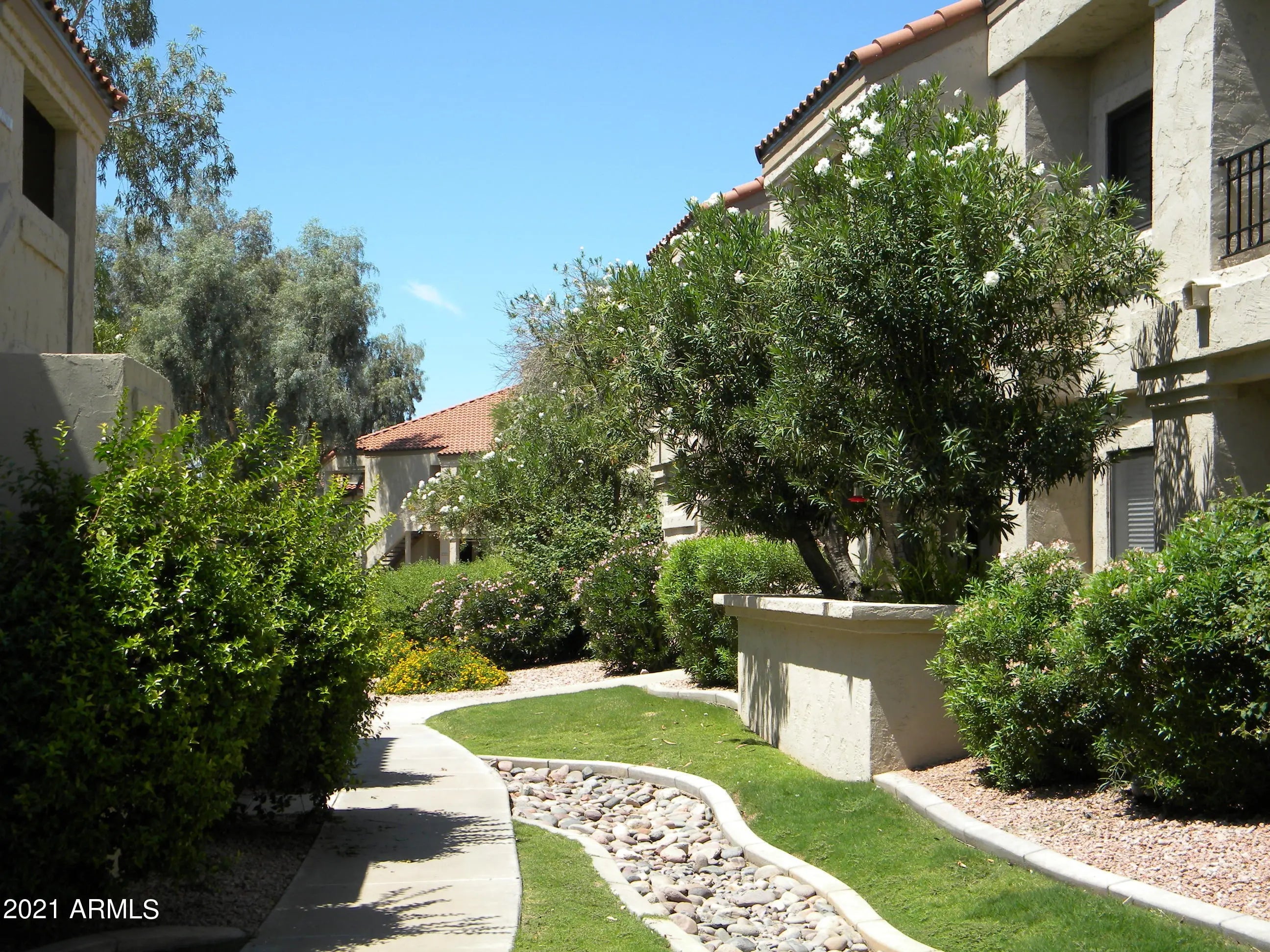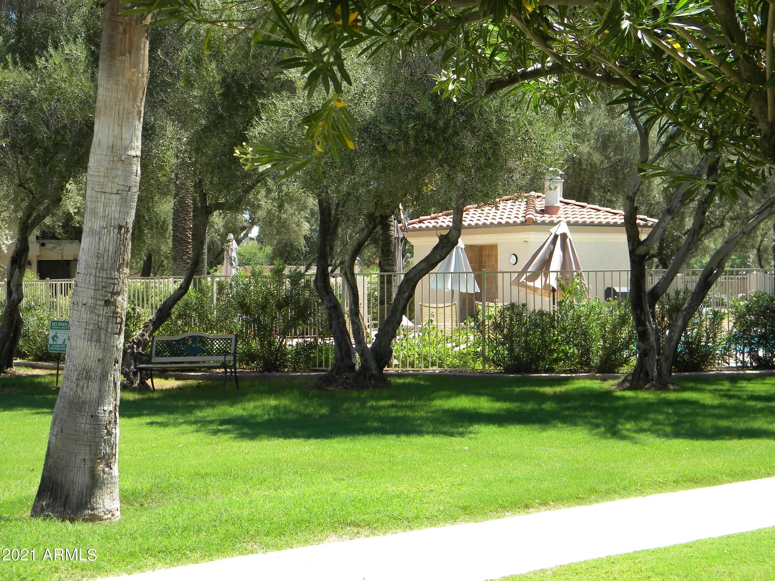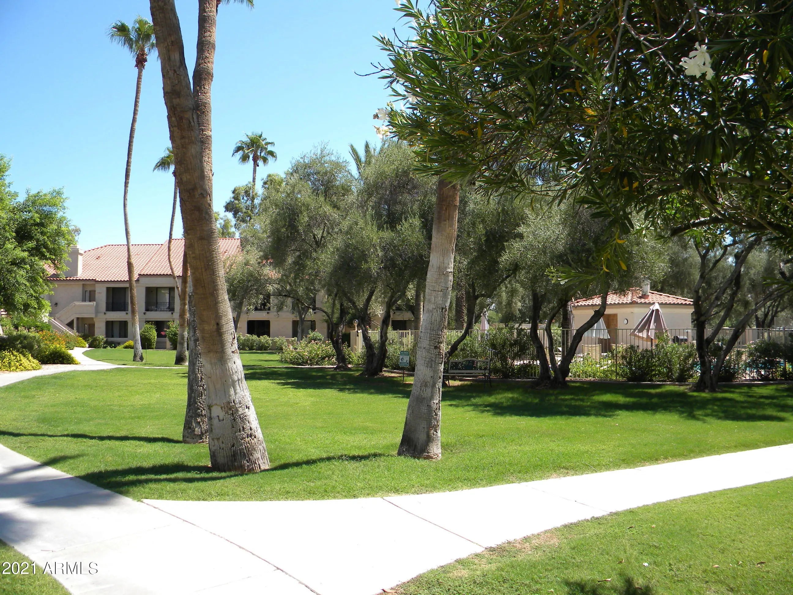 Summer rate $2,300, Winter rate $4,000. Exceptional 5-star newly remodeled & newly fully furnished 2 BR/ 2 BA guard gated-community Mediterranean-style casita at the Racquet Club. An oasis in the desert, this chic contemporary condo next to the pool is fully furnished & features premium upgrades, new furniture & appliances, superb kitchen, full-size W/D, flat-screen television w/Roku streaming, wireless internet access, & a relaxing patio/deck on the park. Enjoy the amenities of the lake, 5 community pools & 6 spas, the vacation-resort feel of this tennis community, the walking trails, workout room, community center & walking-distance to retail, restaurants, grocery, etc... nearby.