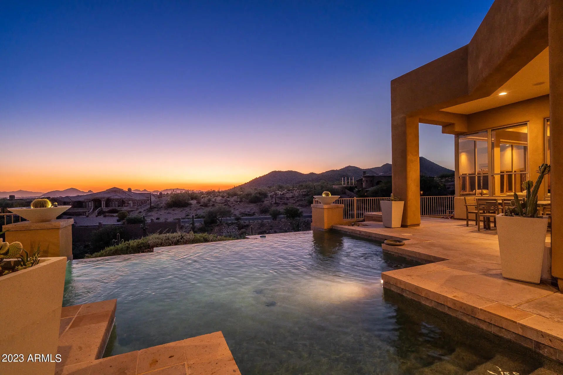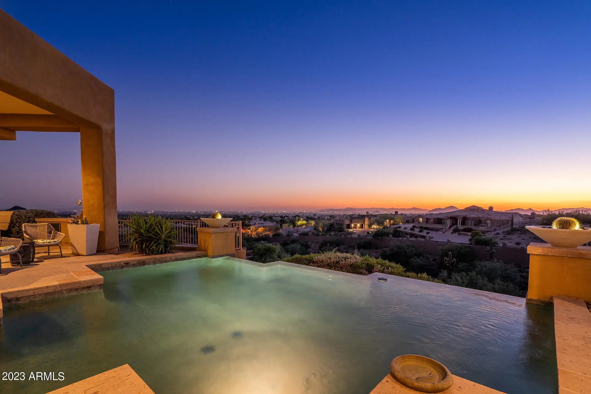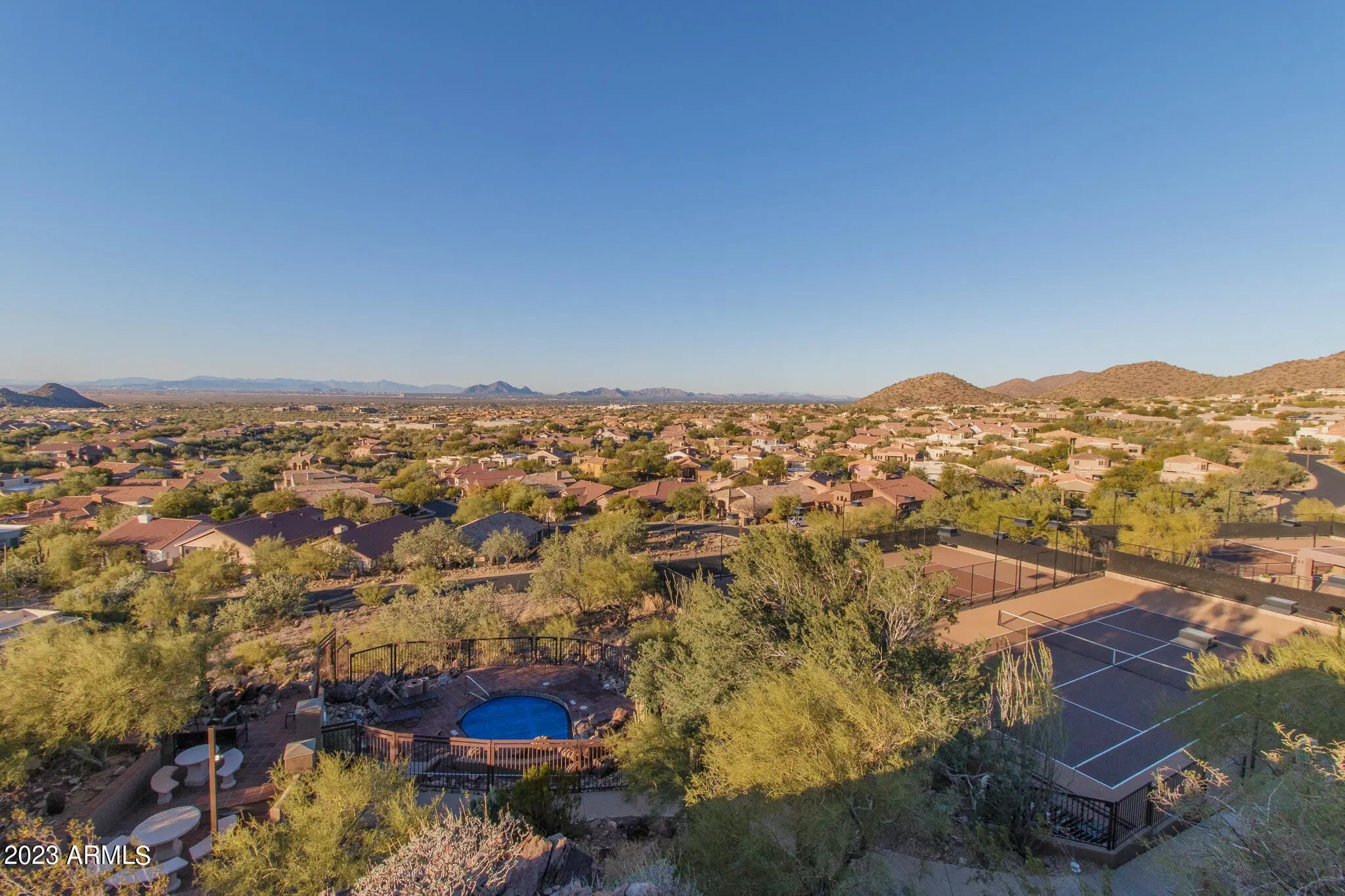 HOME AWAY FROM HOME. FULLY FURNISHED 4 BEDROOM , 4.5 BATH HOME WITH STUNNING VIEWS AND PRIVACY. ENJOY THE ARIZONA WEATHER IN THIS EXCEPTIONAL RESORT-STYLE PROPERTY IN THE HIGHLY DESIRABLE GATED SCOTTSDALE MOUNTAIN COMMUNITY. UPGRADED HOME INCLUDES TRAVERTINE FLOORING, GRANITE COUNTERTOPS, WET BAR WITH WINE FRIDGE, MULTI OVENS AND GAS COOKTOP. ENJOY THE VIEWS FROM THE EXPANSIVE WINDOWS WRAPPED AROUND THE PROPERTY. JAW-DROPPING MOUNTAIN & CITY VIEWS. THE OUTDOOR PATIO IS GREAT FOR ENTERTAINING FAMILY & FRIENDS. ENJOY THE HEATED NEGATIVE EDGE POOL, BBQ, AND OUTDOOR FIRE PIT. CLOSE TO KIERLAND COMMONS, PHOENIX OPEN, BARRETT JACKSON, GREAT RESTAURANTS, MAJOR FREEWAYS & SHOPPING. COMMUNITY FEATURES INCLUDE TENNIS COURTS, WALKING/BIKING PATHS & ON SITE GUARD. Tenants can participate in tennis and pickleball courts.