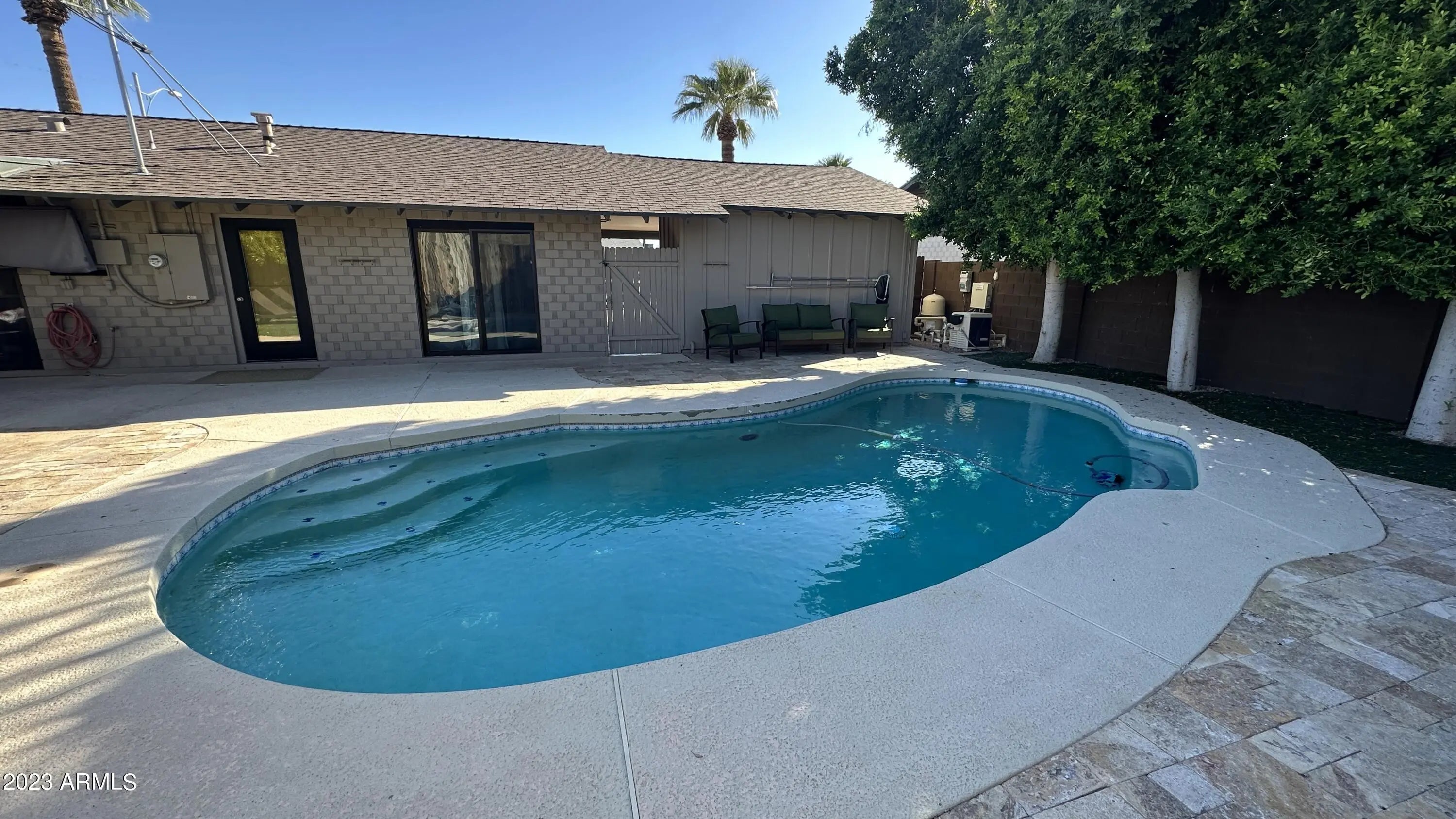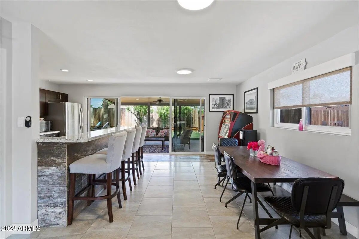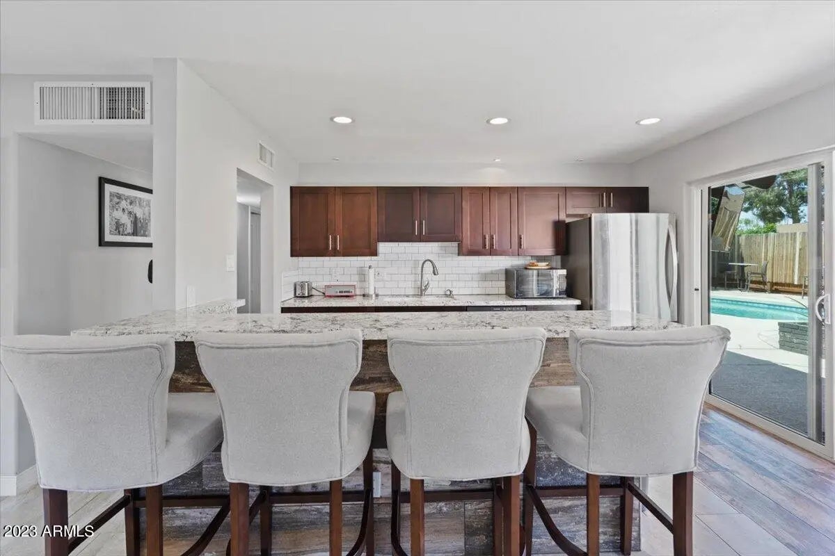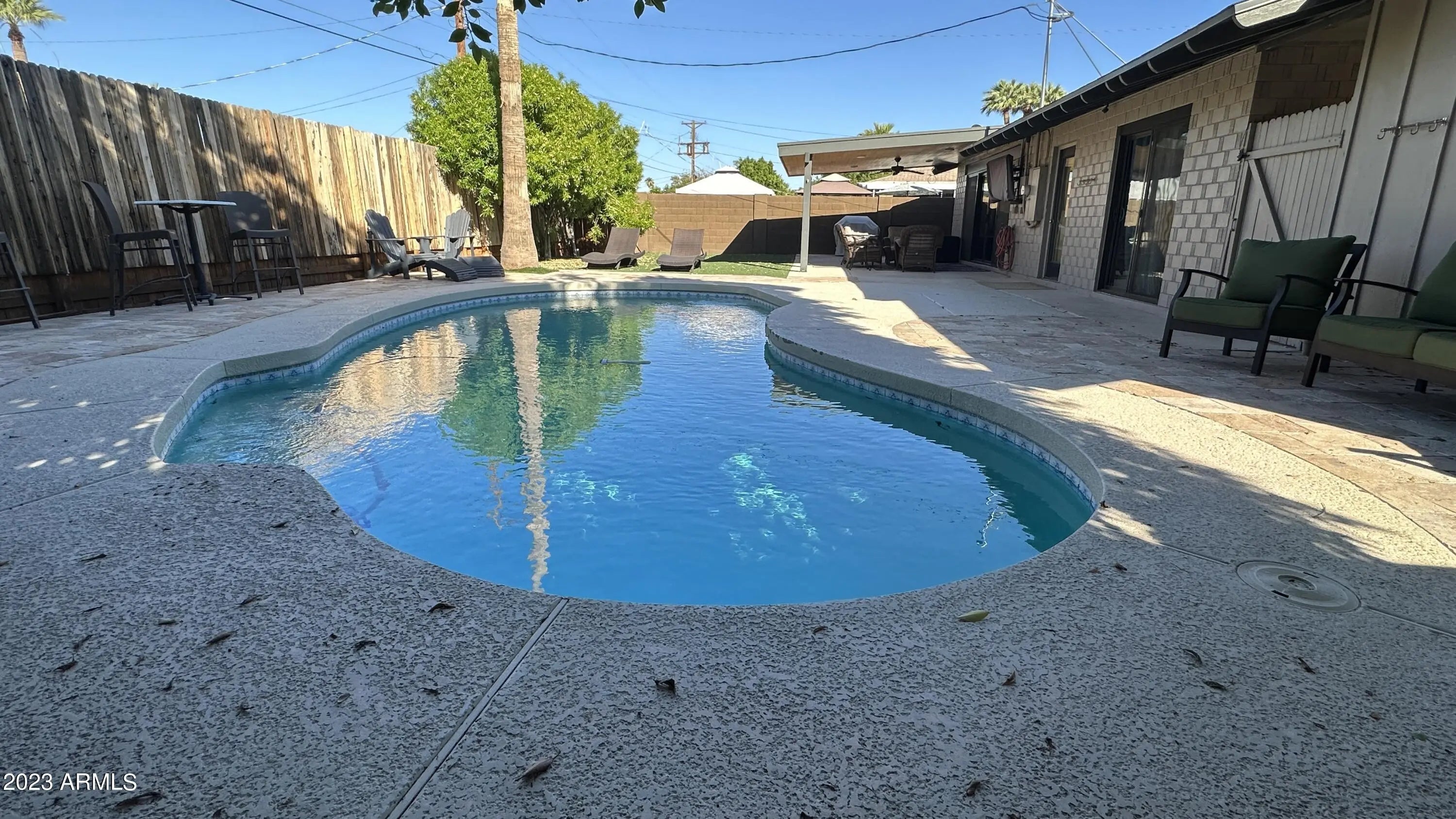 Modern & FURNISHED single story home with three bedrooms, two bathrooms and pool near downtown Scottsdale. Stocked and upgraded kitchen with gas stove. Large and open living room with TV, piano & Jukebox. Spacious master bedroom with king size bed plus exit door to beautiful backyard. Other bedroom has built in desk and King Size Bed. Third Bedroom also has a desk and bunk beds plus a twin size bed. Quiet resort like backyard with large covered patio with TV and pool. Full size washer & dryer included. Excellent Scottsdale location close to Fashion square, theaters, restaurants, the canal, entertainment and more. This home includes everything you need for temporary housing. Available for mid term with 30 days minimum.