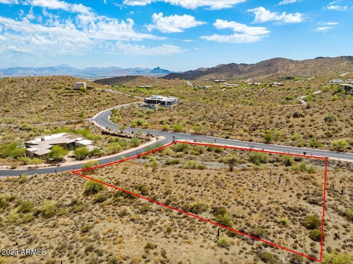 Welcome to an unparalleled oasis of luxury living nestled within the prestigious Eagles Nest community in Fountain Hills. This extraordinary 1.1-acre corner lot epitomizes exclusivity, offering an enchanting blend of natural beauty and timeless elegance. Situated in the heart of this secluded enclave, this property commands attention with its commanding presence and pristine surroundings. Boasting 360-degree panoramic views of the majestic McDowell Mountains, Four Peaks, and the captivating Sonoran Desert, every moment spent here is an ode to the awe-inspiring beauty of Arizona's landscape. As you step onto this meticulously landscaped estate, you'll be greeted by the gentle rustling of desert flora and the refreshing scent of sagebrush. The vast, sun-drenched expanse of this lot allows for endless possibilities in crafting your dream home. Whether you envision a sprawling modern masterpiece, a Mediterranean-inspired villa, or a desert retreat that seamlessly blends with the environment, this canvas awaits your creative vision. Elevated above the surrounding terrain, this corner lot offers ultimate privacy, making it the perfect canvas for your custom-built dream home. The possibilities are as limitless as the horizon itself. Imagine waking up to awe-inspiring sunrises over the Four Peaks and savoring breathtaking sunsets over the McDowell Mountains from the comfort of your own paradise. Eagles Nest is a community known for its exclusivity, where residents relish a lifestyle of tranquility and natural splendor. Miles of pristine hiking and biking trails wind through the Sonoran Desert, providing opportunities for adventure and connection with nature. In this world of unparalleled luxury and natural beauty, the possibilities are endless, and the future is limitless. Seize this extraordinary opportunity to transform your vision into reality and make this property in Eagles Nest your ultimate expression of refinement, privacy, and boundless luxury. Your journey to a life of serenity, opulence, and panoramic perfection begins here. Lot corners/boundaries have been staked and flagged for your convenience.