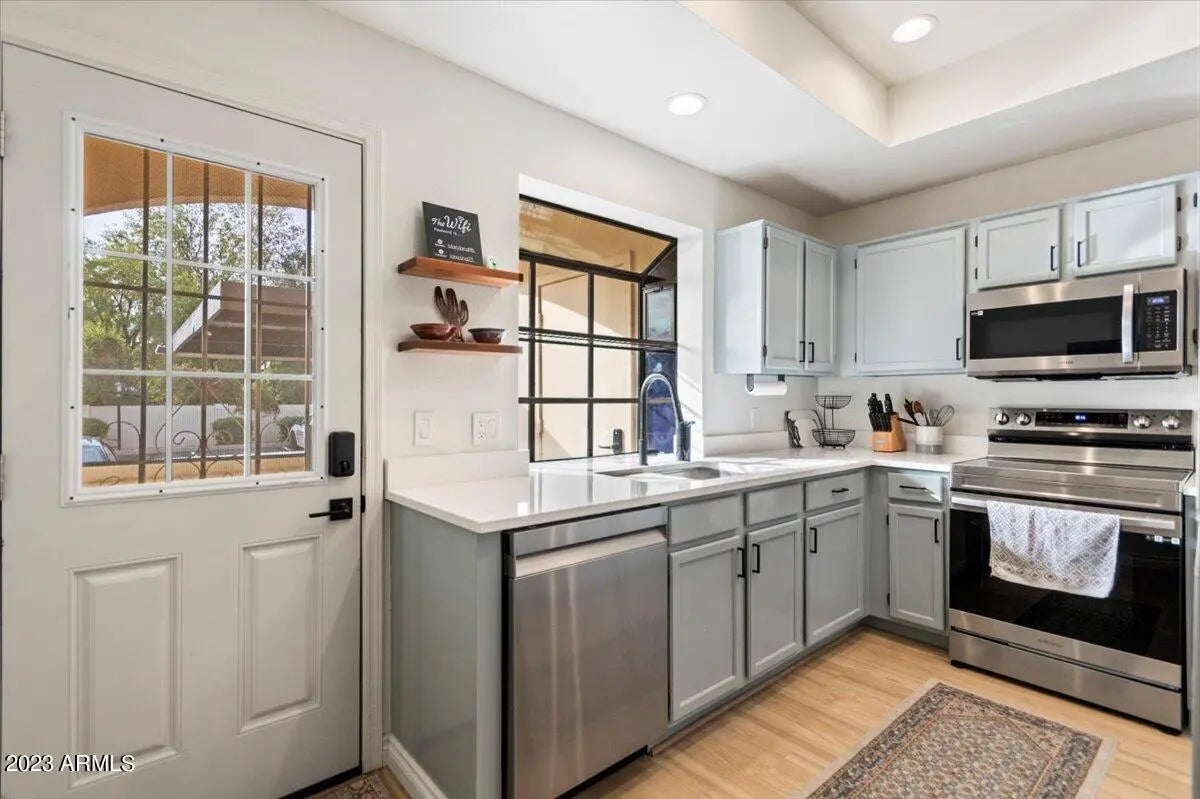 FULLY FURNISHED. Great Location just off 12th Street and Maryland close to any part of the valley. Minutes from the 51 Freeway. Ground level, Private gated entryway with a terracotta tile patio and BBQ. When you walk in you will notice luxury plank flooring throughout the home. This home has a full recent remodel. A quaint kitchen with pastel cabinets, stainless steel appliances, quartz countertops, a recessed ceiling, and a beautiful bay kitchen window. The primary bathroom includes double sinks. A comfortable home you can relax in. Covered assigned parking next to the front door. Quiet neighborhood. Non smoking. Includes all services: WiFi, Cable TV, and all utilities. ($50 cap on utilities). Low Season (May-Oct) $2295. High Season (Nov-Apr) $2495.