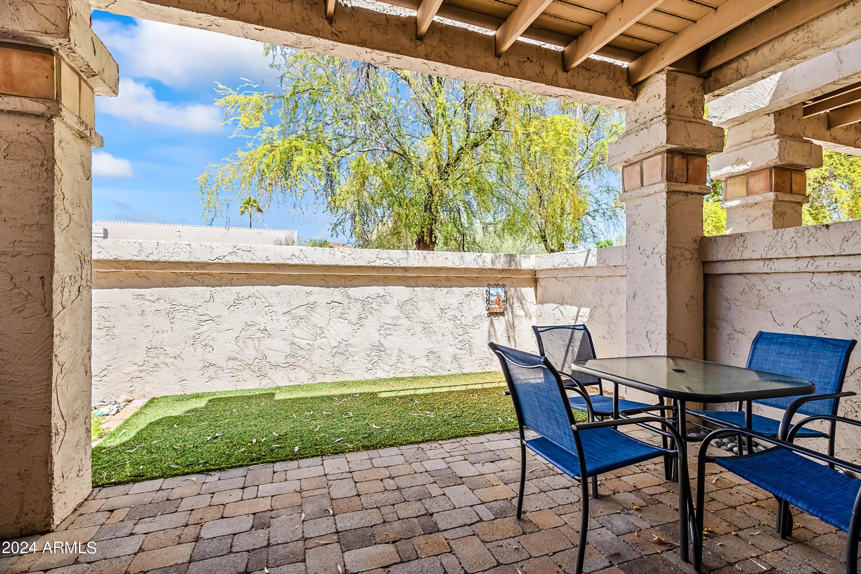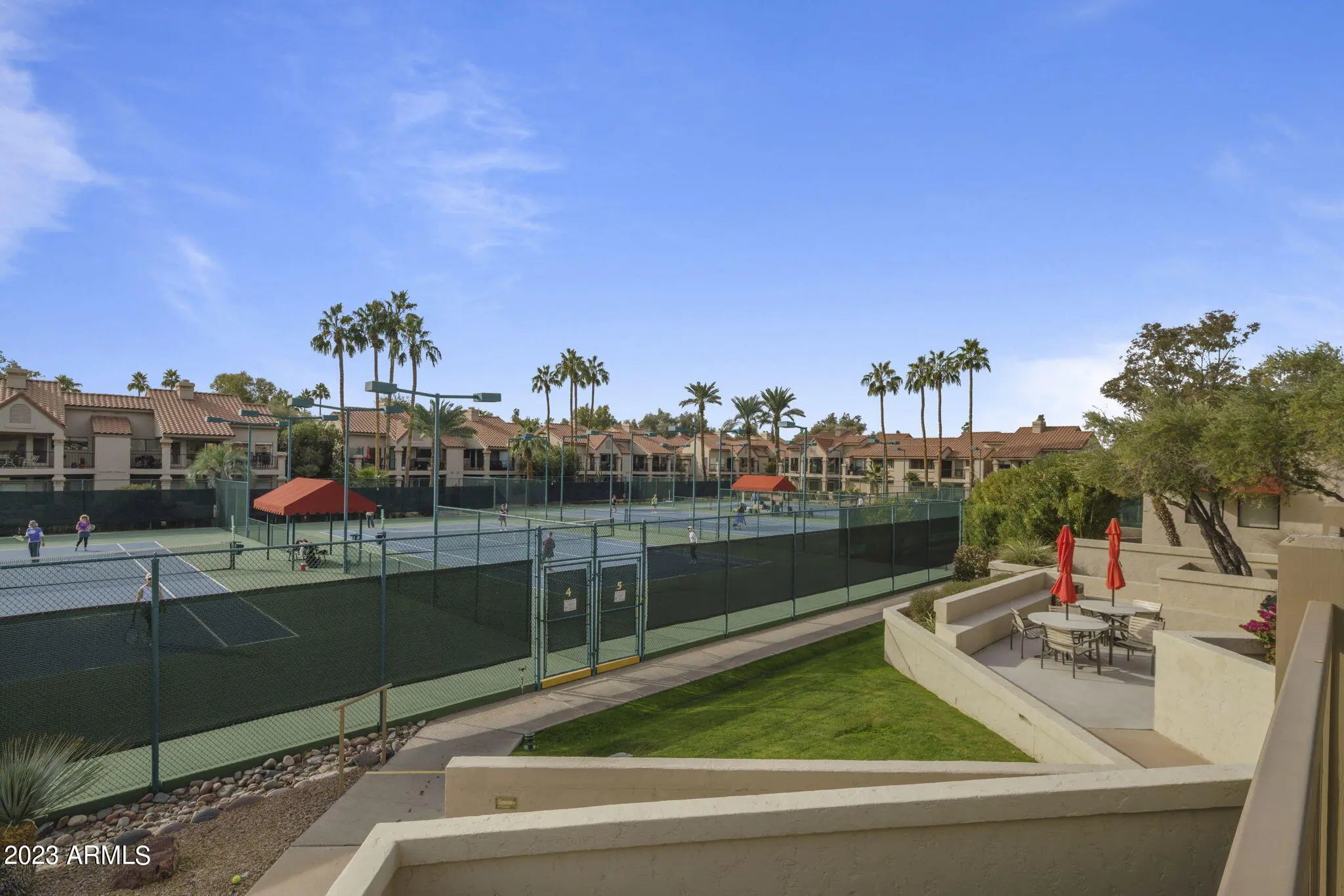 Fully furnished vacation rental available April 1, 2025! Beautifully remodeled 2 bedroom, 2.5 bath townhome located in the prestigious, gated Racquet Club community of Scottsdale. The home boasts high ceilings, abundant natural light, and a spacious open floor plan. Ideal for entertaining, the main living area features a luxurious kitchen with quartz countertops, breakfast bar, tile backsplash, ample cabinet space, and opens to the adjacent dining and living room. The kitchen/ dining area look out onto the small private backyard w/ artificial turf, outdoor dining, and covered patio. Retreat upstairs to the remodeled master suite, complete with a private balcony, walk-in closet, & ensuite bathroom featuring a large over-sized shower and dual vanities. Also upstairs, is the secondary bedroom and bathroom. The Racquet Club community offers numerous amenities, including six sparkling swimming pools, tennis courts, fitness center, and a clubhouse. With its prime location in Scottsdale, you'll have easy access to shopping, dining, and entertainment. Nearby golf courses, hiking trails, & parks provide endless opportunities for outdoor recreation. A must see!