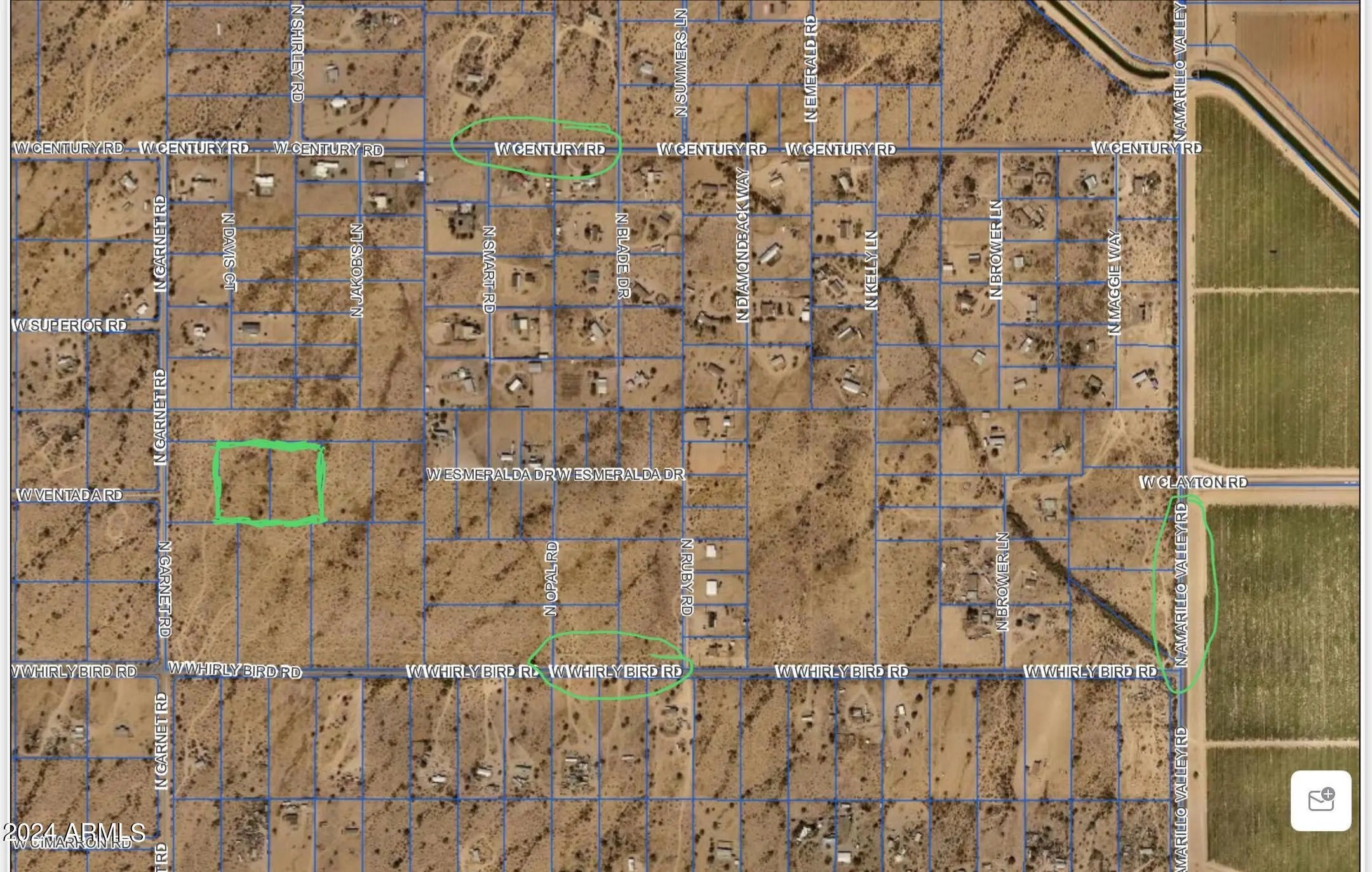 What a beautiful 5 acre parcel (parcel 2 and 3 of plat). The town of Maricopa is growing fast. Great site for your dream ranch, horse property, farm or builder (the property is already split into 2 parcels for home sites) and can be split again to make 4 home sites. This parcel (APN 501-10-069C and D) is 730 ft. from pavement on W Whirlybird Rd or 1500 ft. from W Century Rd. Great location just minutes from Town of Maricopa, 45 minutes from Phoenix Sky Harbor Airport. A great investment opportunity. Don't miss out on this pristine acreage with endless possibilities. Seller may finance with 50% down and 2 yr term. Survey available upon request.
