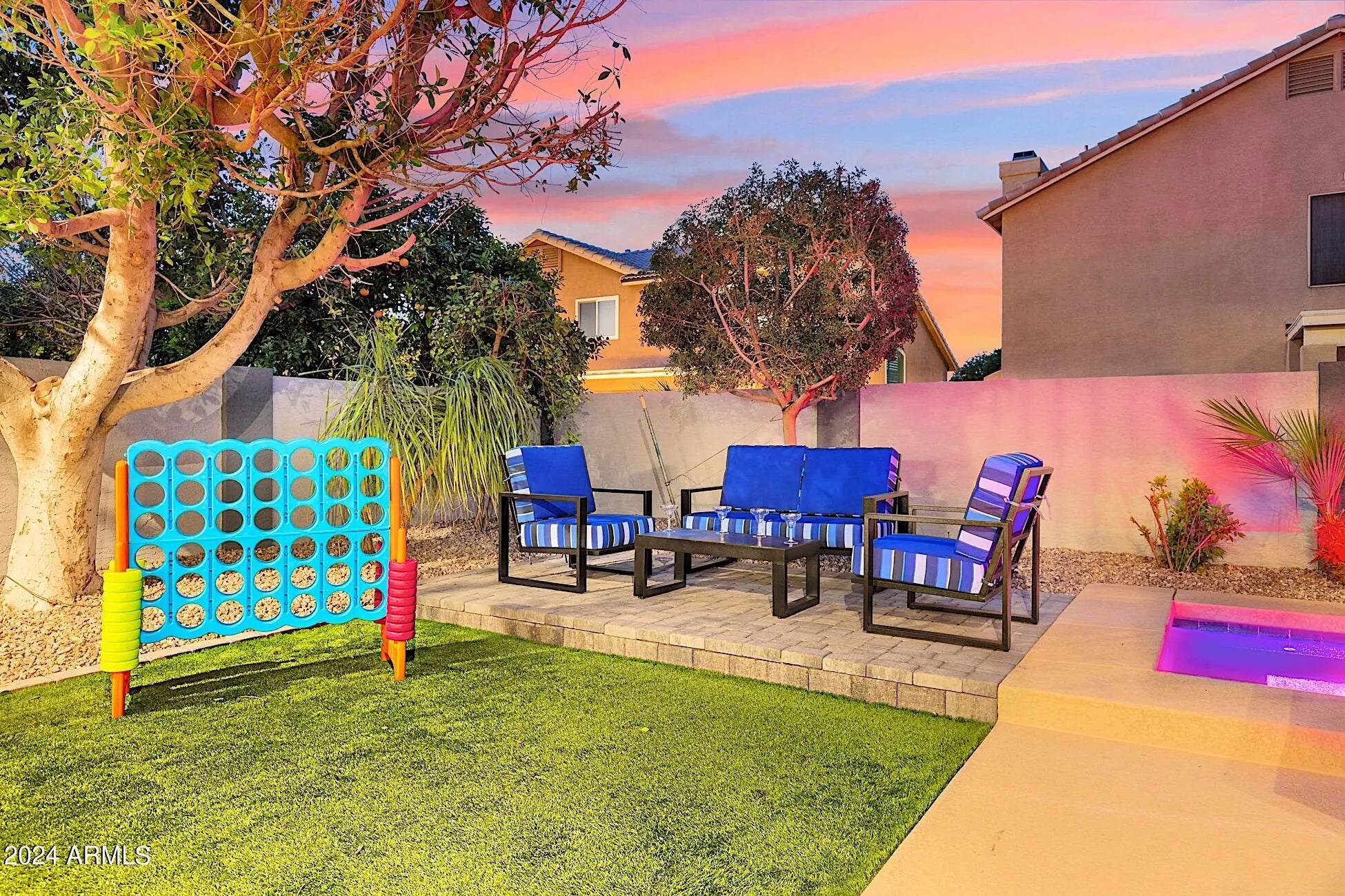 Sprinklers In Rear, Sprinklers In Front, Desert Front, Synthetic Grass Back