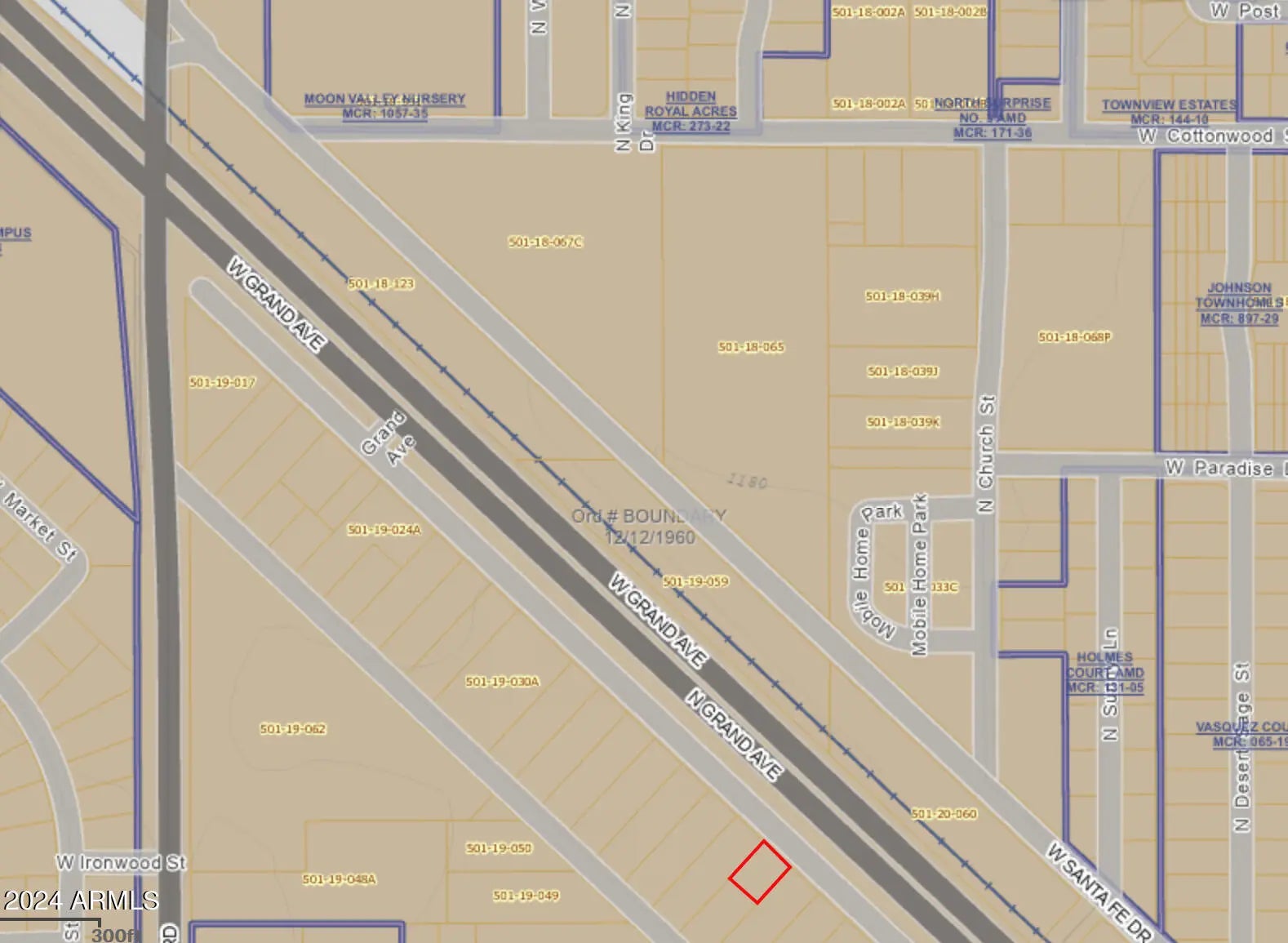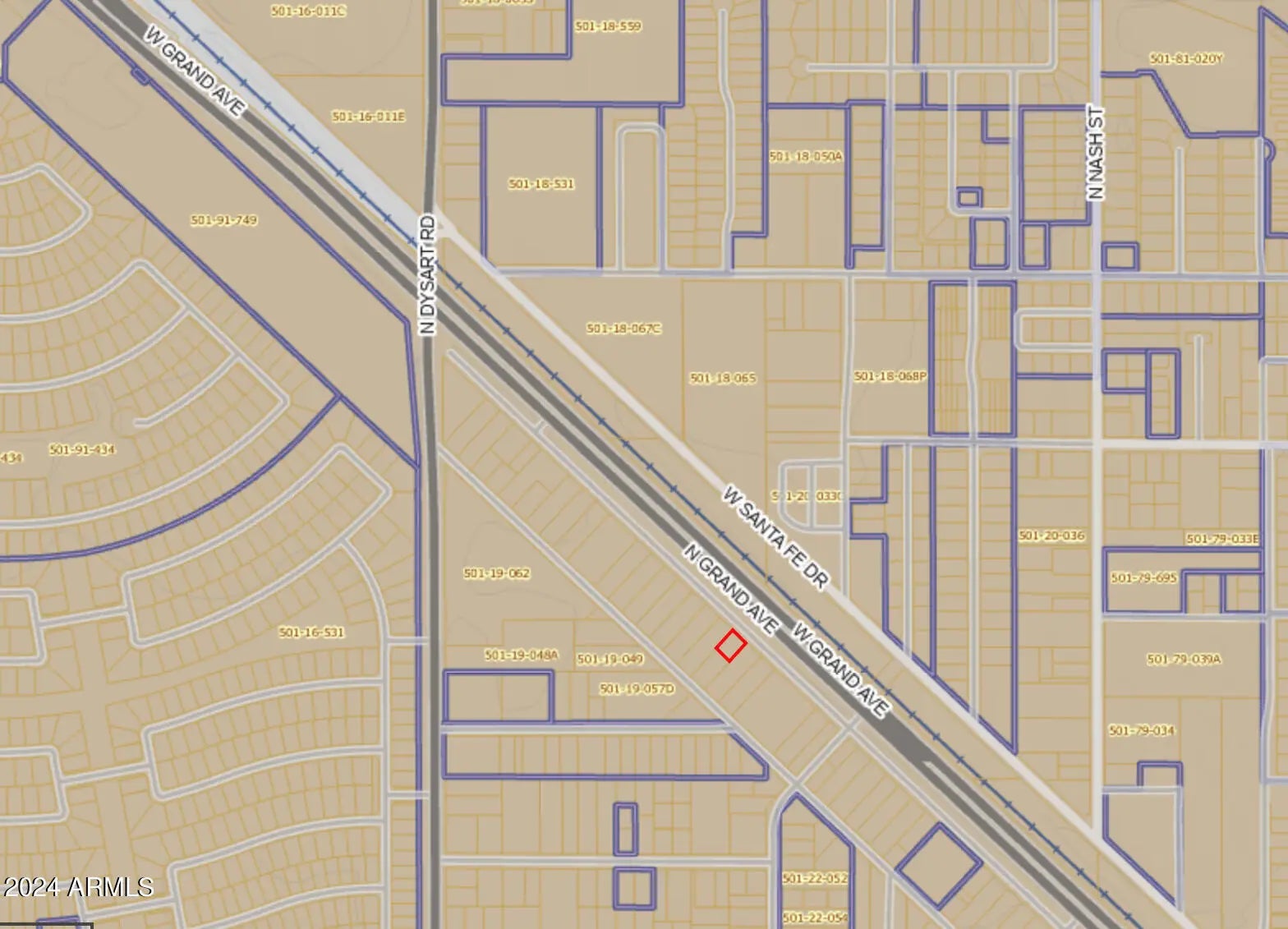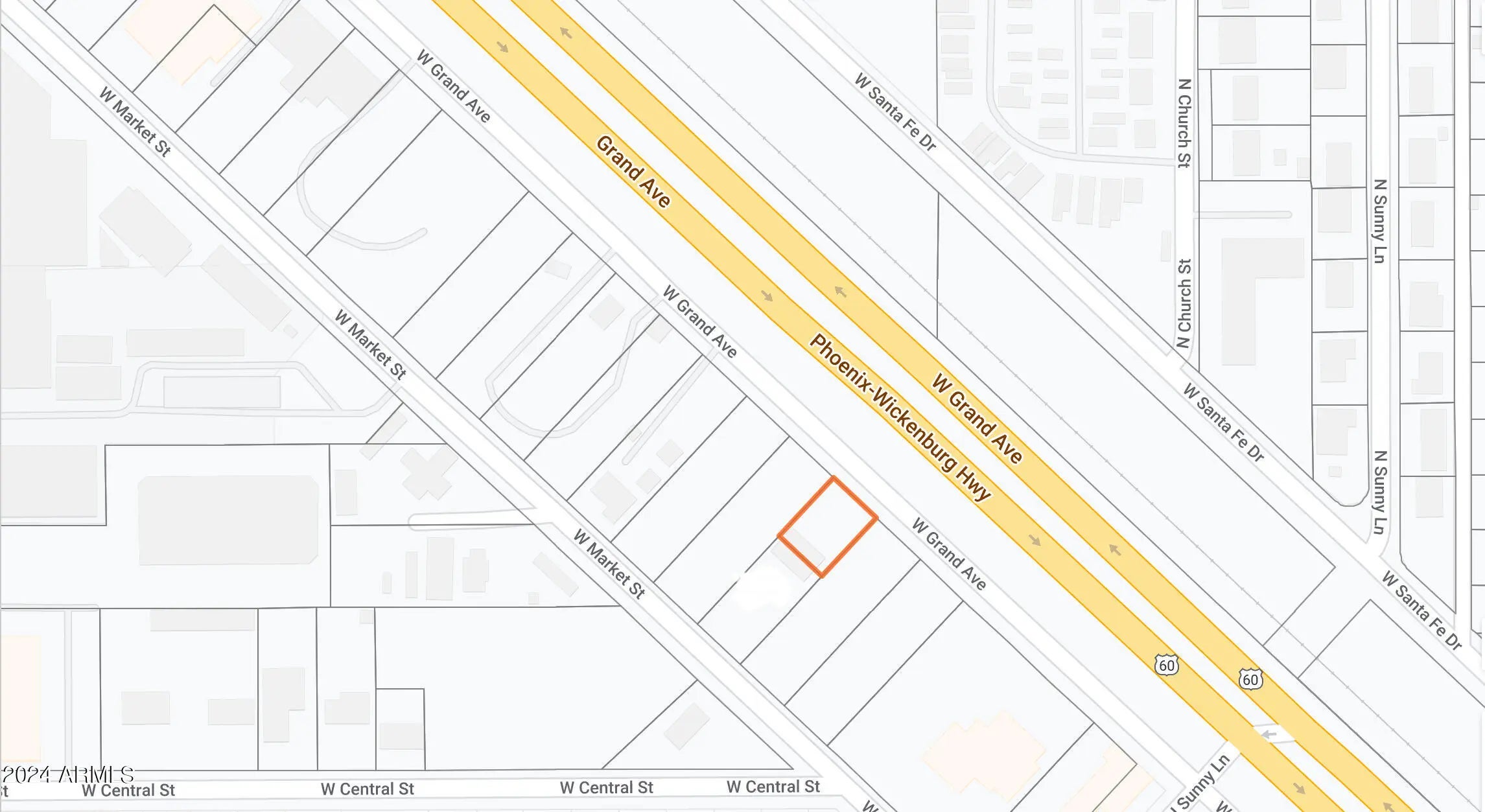Surprise Opportunity Zone. This property has immense traffic flow, facing along U.S. 60 / Grand Ave. flat vacant land. parcel is county zoned C-C and city zoned C-2. Great location for small business, office or retail. There is a cement slab at the back of the property that is half on this lot and half on the lot behind it that is facing Market Street.
