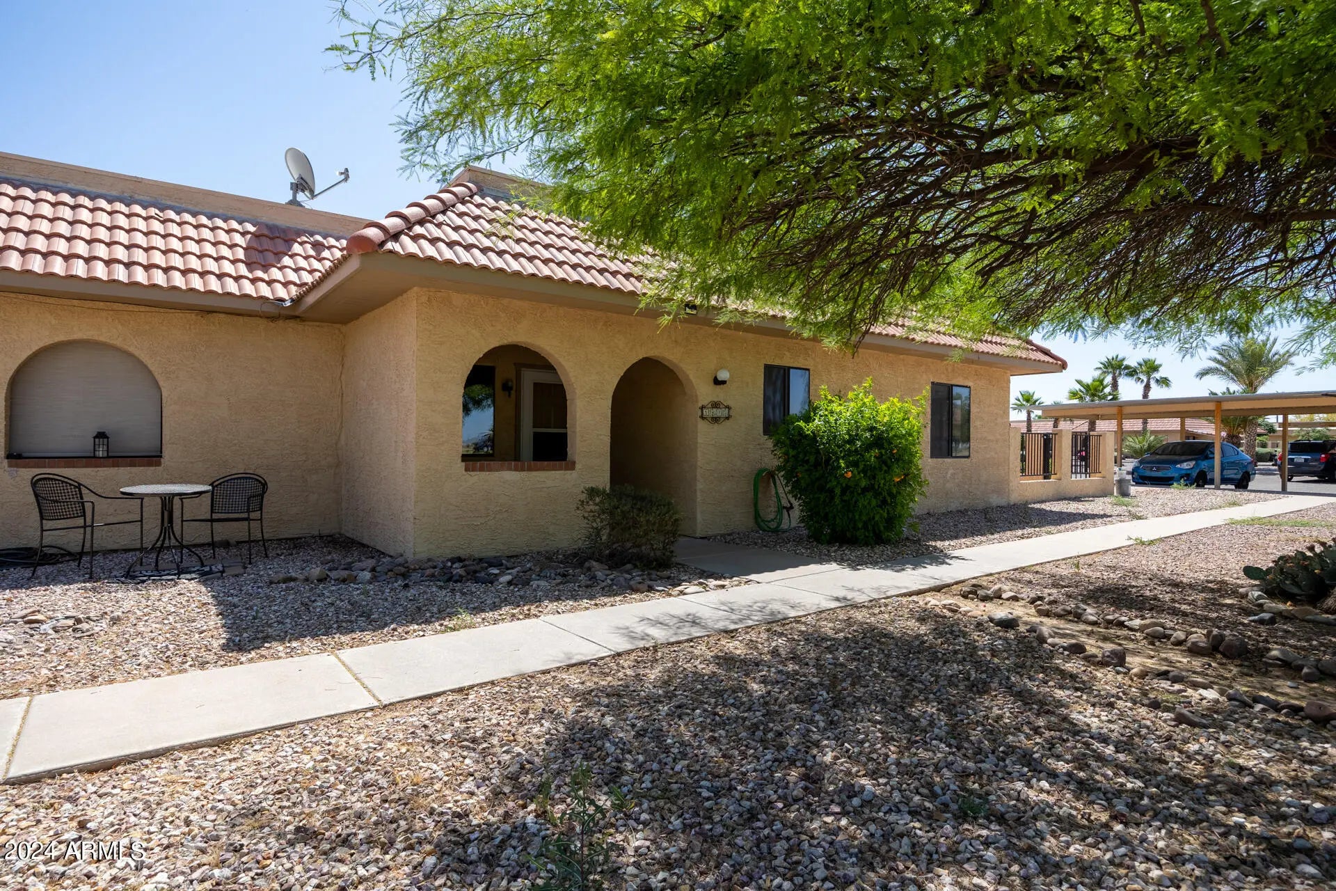Motivated Seller! Escape to your own peaceful haven at this elegant 2 Master bedroom,2 bathroom home nestled among mature trees and situated on a stunning golf course community with amazing views of the 1st and 9th holes. Inside, you'll find upgraded bedrooms and bathrooms,with new flooring, paint, and bathroom remodel. This home has a large living space at every turn. Step into the inviting kitchen with a breakfast nook, perfect for enjoying your morning coffee and taking in the serene surroundings. This home boasts multiple patio areas to enjoy all of the amazing Arizona weather. HOA maintains the roof in this community. Roof maintenance was completed 2022. Courtyard Patio roof covering just Inspected and Maintained as well. There is so much pride of ownership here. Your new home awaits