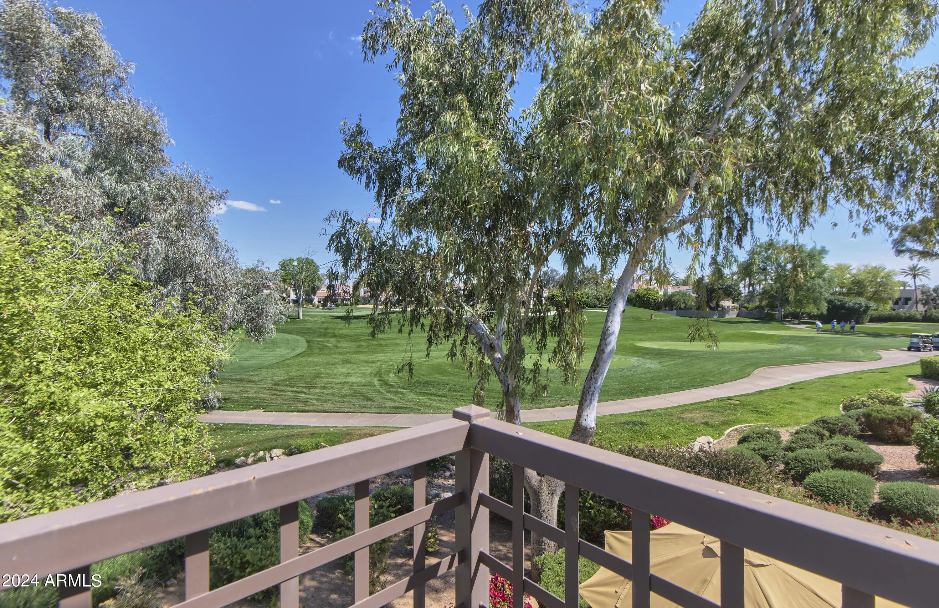 Beautiful 2 story townhome on the Golf Course at Gainey Ranch! 2 luxury master suites: one downstairs, one upstairs. There is also a large loft for office or den. Travertine floors throughout entire home. Newer quartz counters in updated fun kitchen. Updated bathrooms. Enjoy Amazing Views from the upstairs balcony and downstairs patio. Walk onto the golf course. Just across from community pool & spa. Wonderful location in the heart of Scottsdale at McCormick Ranch. Close to shopping, walk across to Gainey Village and Hyatt Resort and so much more. Furniture and furnishings are subject to change. Amazing lifestyle that comes with living in Gainey Ranch, A New Community Center which include state of the art Gym, and Tennis & Pickle-ball. (Short term prices vary)
