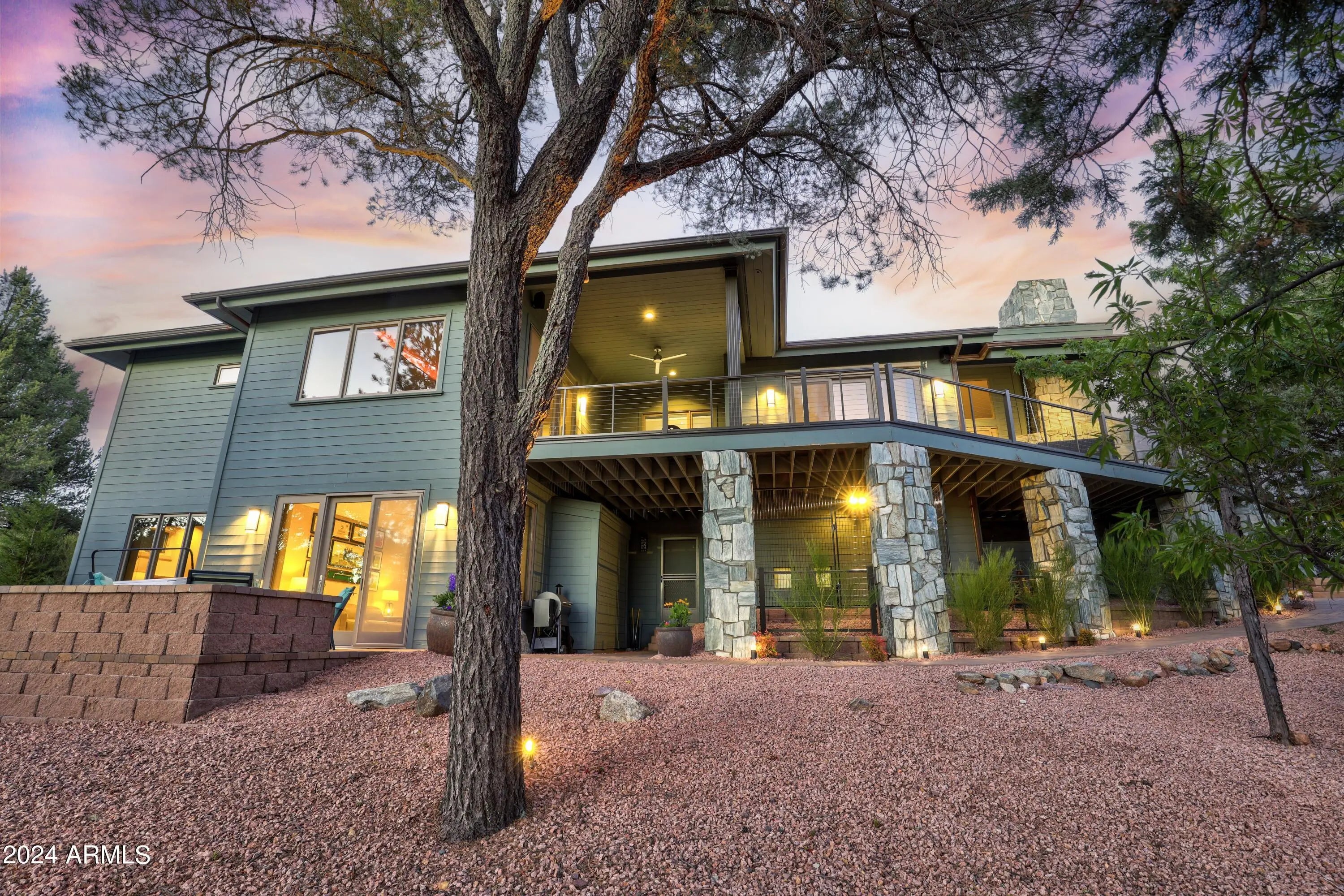 Discover a refined mountain retreat in the exclusive gated community of Chaparral Pines, where sweeping views, thoughtful updates, and inviting spaces come together in perfect harmony. Overlooking the lush 7th fairway and the dramatic Granite Dells beyond, this four-bedroom, five-bath home with a dedicated office delivers both luxury and livability across three well-designed levels. Recently refreshed with new interior paint in the main living areas, newly painted kitchen cabinetry, stylish wood-slat accents on the island, and warm and luxurious new finishes at the wet bar, the home blends a contemporary touch with timeless mountain character. Step inside the grand great room, where floor-to-ceiling windows flood the space with natural light and frame an ever-changing mountain... These updates complement the home's timeless architecture while eliminating the need for immediate cosmetic renovations. The great room is the heart of the home, anchored by a stone fireplace and radiant heated floors, and framed by dramatic floor-to-ceiling windows that capture ever-changing views of the golf course and Granite Dells beyond. Designed for both everyday comfort and effortless entertaining, the adjoining wet bar creates a natural gathering space for hosting or relaxing fireside. The remodeled kitchen - originally updated in 2020 and recently enhanced - features quartz countertops, premium appliances, custom cabinetry, and an open flow into the dining area and breakfast bar, making it equally suited for intimate meals or larger gatherings. Outdoor living is a standout feature. An expansive deck offers front-row sunset views, an outdoor fireplace, and a private hot tub, ideal for mountain evenings under the stars. Below, a second patio extends the living space and connects seamlessly to the lower-level family room. The private elevator provides long-term livability and ease, connecting every level of the home - from the serene primary suite to the guest accommodations below - making this property especially appealing for full-time living, second-home use, or multigenerational needs. The lower level offers a spacious secondary family room with direct outdoor access, while each bedroom serves as a private retreat with its own en-suite bath, offering comfort and privacy for family and guests alike. Residents of Chaparral Pines enjoy access to one of Arizona's premier private golf communities, featuring championship golf, a full recreation center, fitness facilities and classes, swimming pools including a children's splash pool, tennis, basketball, and volleyball courts, all set against the backdrop of the Mogollon Rim.