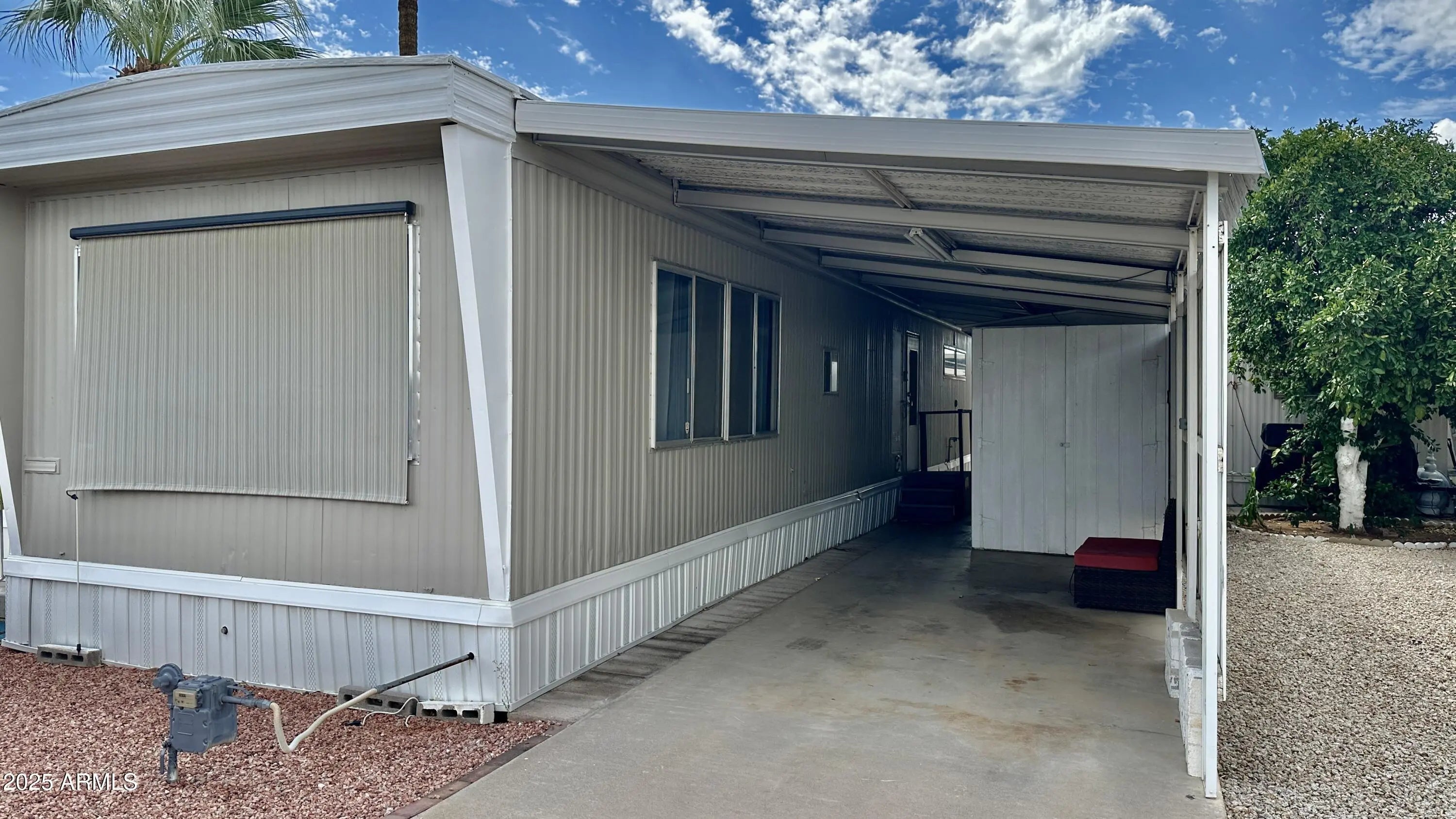 freshly pained exterior!!! Seller might carry note for the right person. This well maintained manufactured home is located in Trail Rider's Ranch, a 55+ gated, pet friendly community. Conveniently located in a prime location on Main Street near shopping and entertainment. 2 bed 1.5 bath with a large Arizona room which is perfect for entertaining. Stainless steel appliances are included. Lots of storage! Lot includes 2 palm trees and 2 patios Workshop has electricity. This one is a must see!!