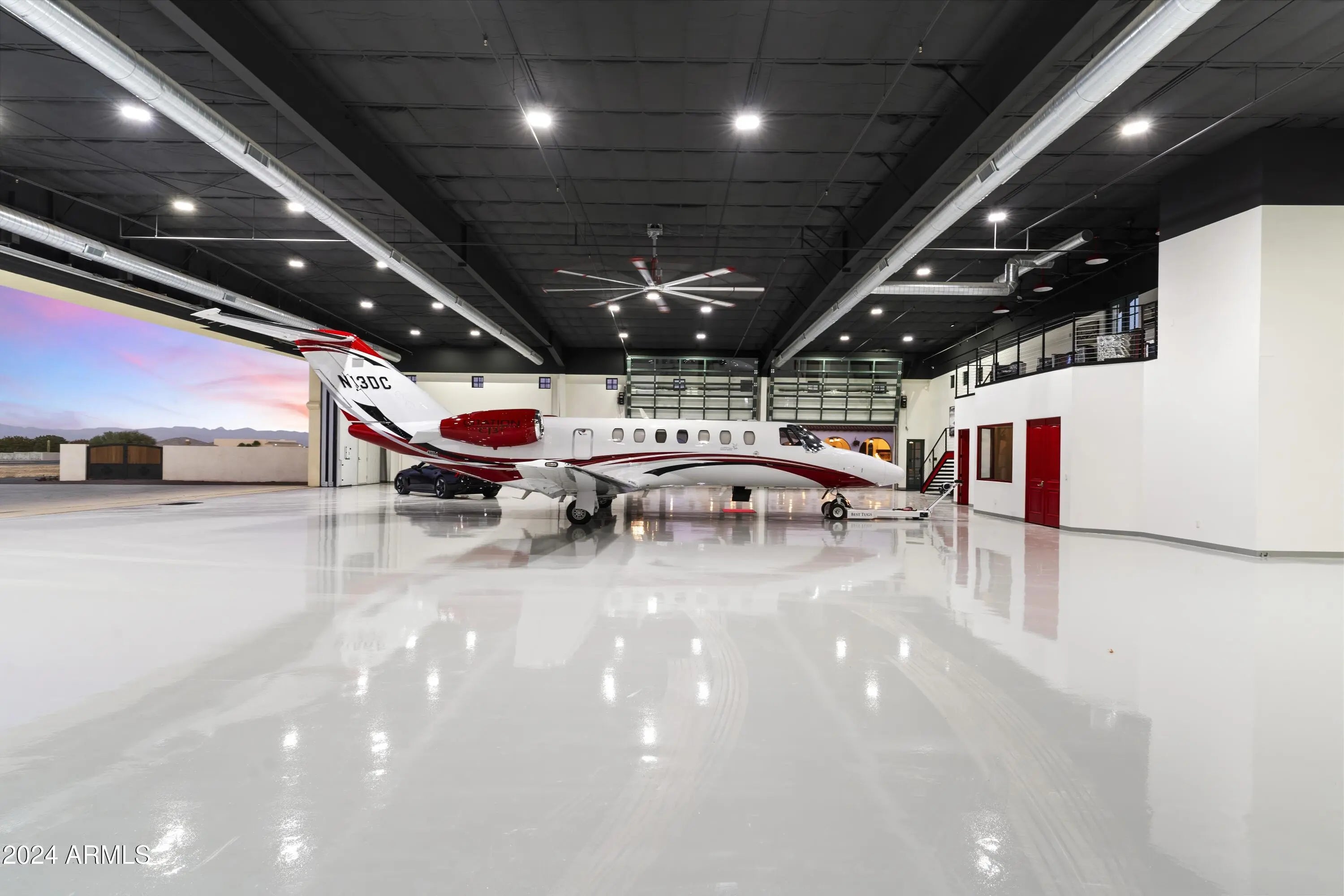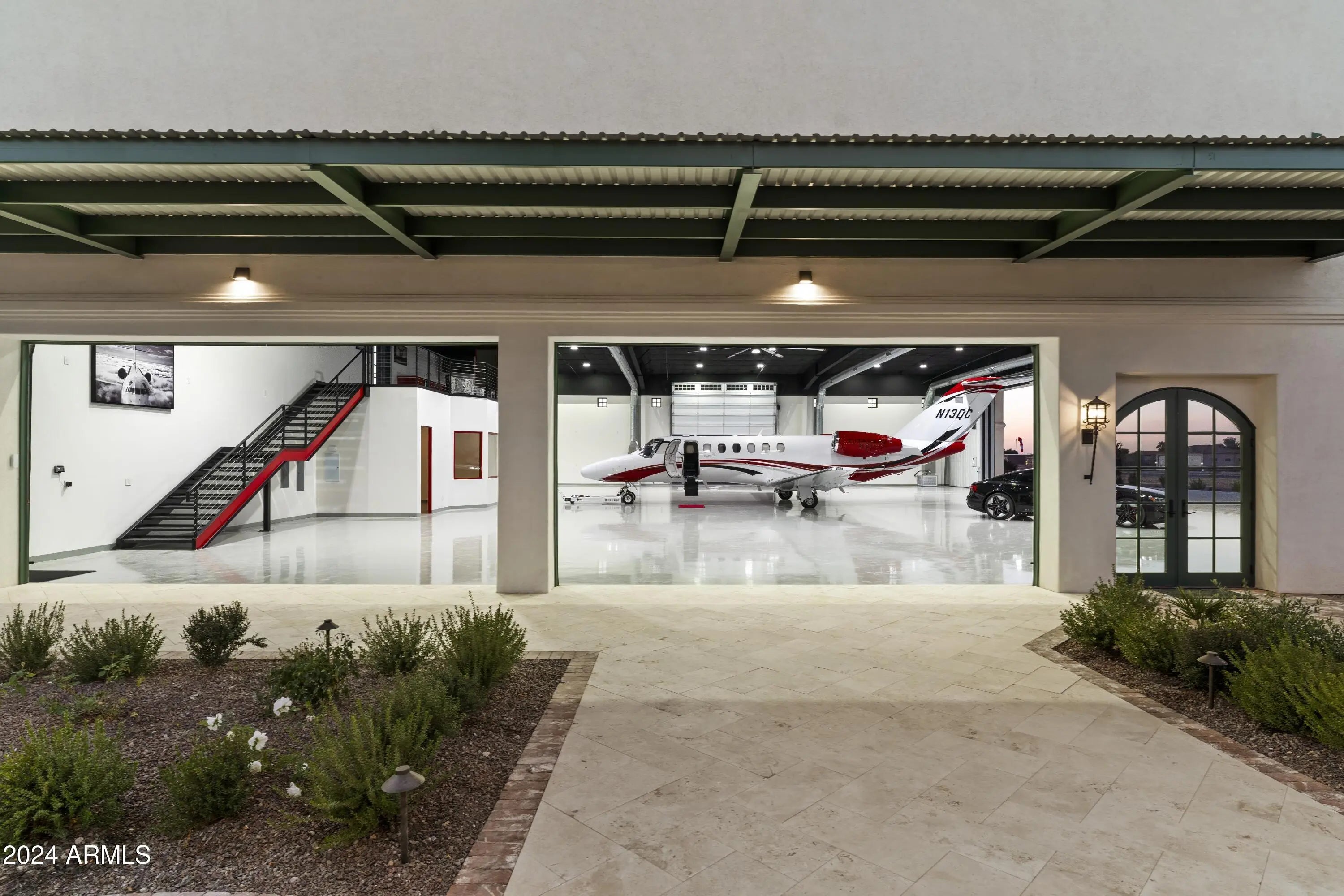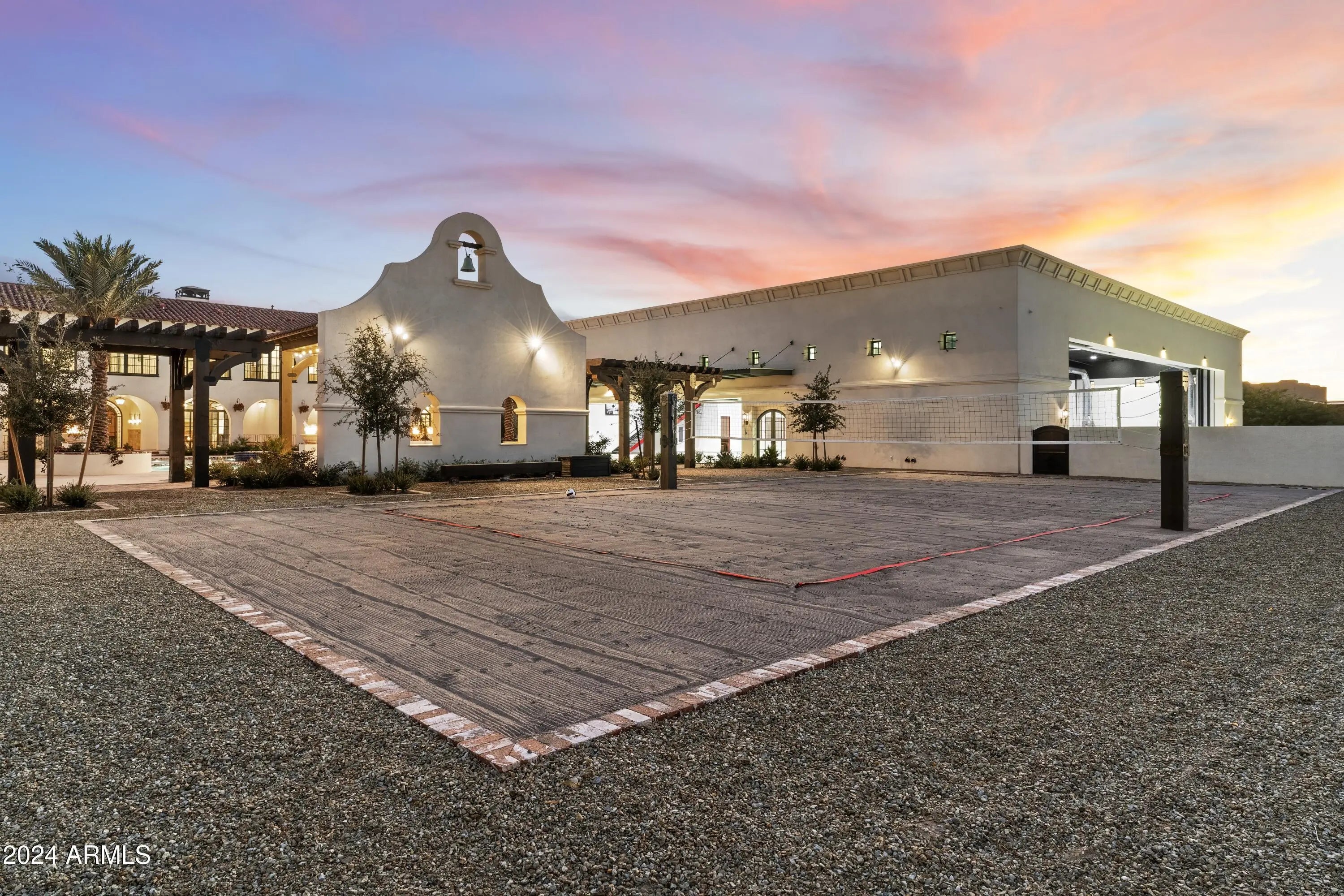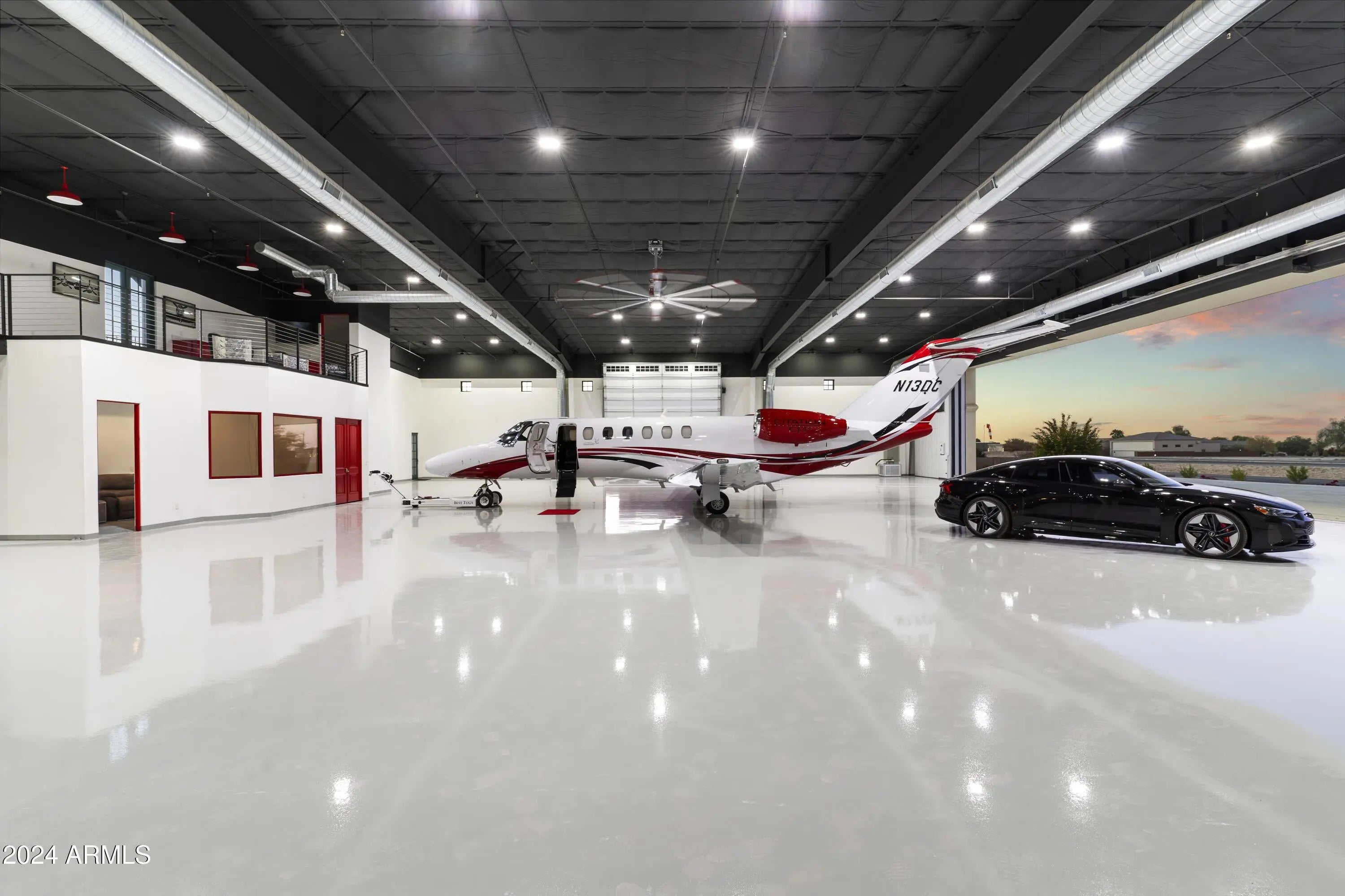 Introducing Misión Veintidós (Mission Twenty-two). This amazing Pegasus Airpark (5AZ3), Queen Creek, AZ home was inspired by classic Spanish style mission architecture. The unique mission style entrance to the home is through a breezeway gate which leads you to a stunning courtyard view of the estate. This estate of 32,000 sq ft of luxury living, with an incredible 26,000+ sq ft of conditioned space has 16'' thick walls for style and maximum efficiency. Perfectly situated on North South double lot, taking a massive 350' of taxiway, sits the main residence on three levels and includes all these features: A 10,000 sq ft steel construction Hangar with Full HVAC, Epoxy coated floor, ''Big Ass'' Fan, Pocket style main hangar doors with an 78'x17' clear opening. Flight office, Storage room, Downstairs bathroom, Interior stairs to mezzanine with bar, Upstairs bathroom, Balcony, Two motorized vertical opening 20 ft glass garage style doors facing the courtyard. " A massive courtyard featuring: 2,000 feet of covered breezeways, Multiple swimming pools with fountains and firepots, Covered outdoor full kitchen under a mission style bell tower, Lit Pickle ball/basketball sports court & Putting green, Sand Volleyball court. "The main house has a 5,000 sq ft Basement: bowling alley, 75 ft shooting range, Tiger Woods' (Full Swing Pro 2.0) Golf Simulator, Wine Cellar, Walk-in vault, Storage room, Bathroom, Interior and exterior stairs. " Next is a 2000+ sq ft detached Master Bedroom: Custom his and her walk-in closets, Separate bathrooms and linens, Large walk-in shower & separate tub, Incredible ceiling details with accent lighting, Multiple balconies, Bar, Fireplace, sliding doors. " Master Spanish Garden: with water and fire features. " General Design considerations: 16" double insulated walls which are quieter, more energy efficient and style correct as seen in the deep-set windows and doors, The extensive iron work is amazing, Custom railing with HH monogram, windows with iron details. " Don't miss these details: clear view elevator from basement to second story sized for wheelchair access. " Wired Cameras access from internet. " Automated lighting. " Security System " Hidden AV closet " Luxury full-service guest suites with spa like bathrooms, suites include laundry and bar in each " 2834 sq ft 2nd Story with Gym, spa and sauna, gym bathrooms & laundry. " Large outdoor balcony, firepit, incredible views of the Superstition and San Tan mountains " Balcony sliding windows overlooking the courtyard. " Firepole slide down from gym to first floor hidden door " Formal living room " 30' sliding glass doors with view of hangar " 28' ceiling with massive beams " Oversize castle style fireplace " Gourmet kitchen with Baking center " Sub Zero Wolf appliances, Easy access from vehicle to kitchen, Fully equipped Butler's Pantry. Dark and smokey (informal sitting room) " Floor level gas fireplace " Full bar " Bathroom " Large sliding window overlooking courtyard pool. Too many features to list.