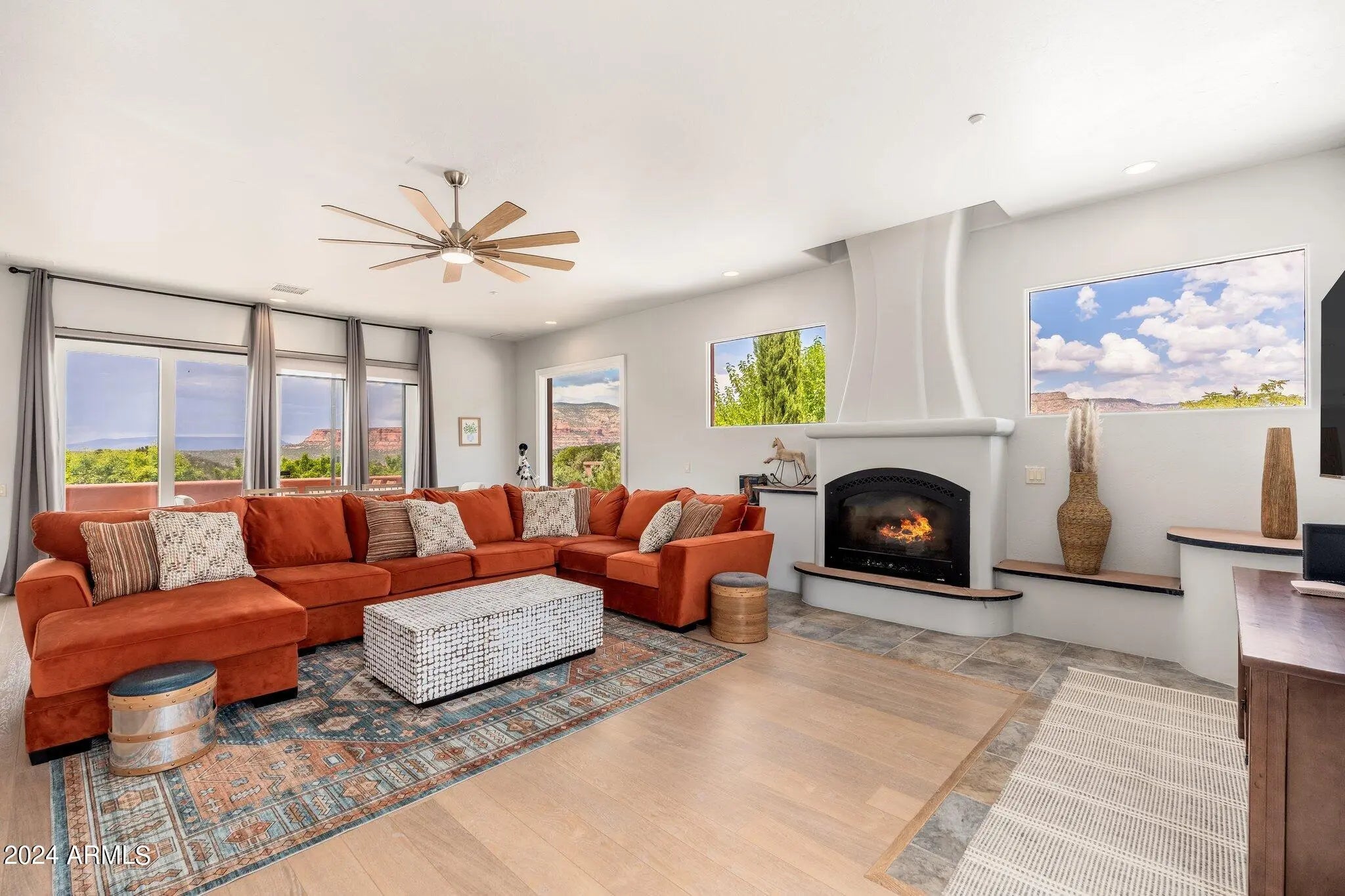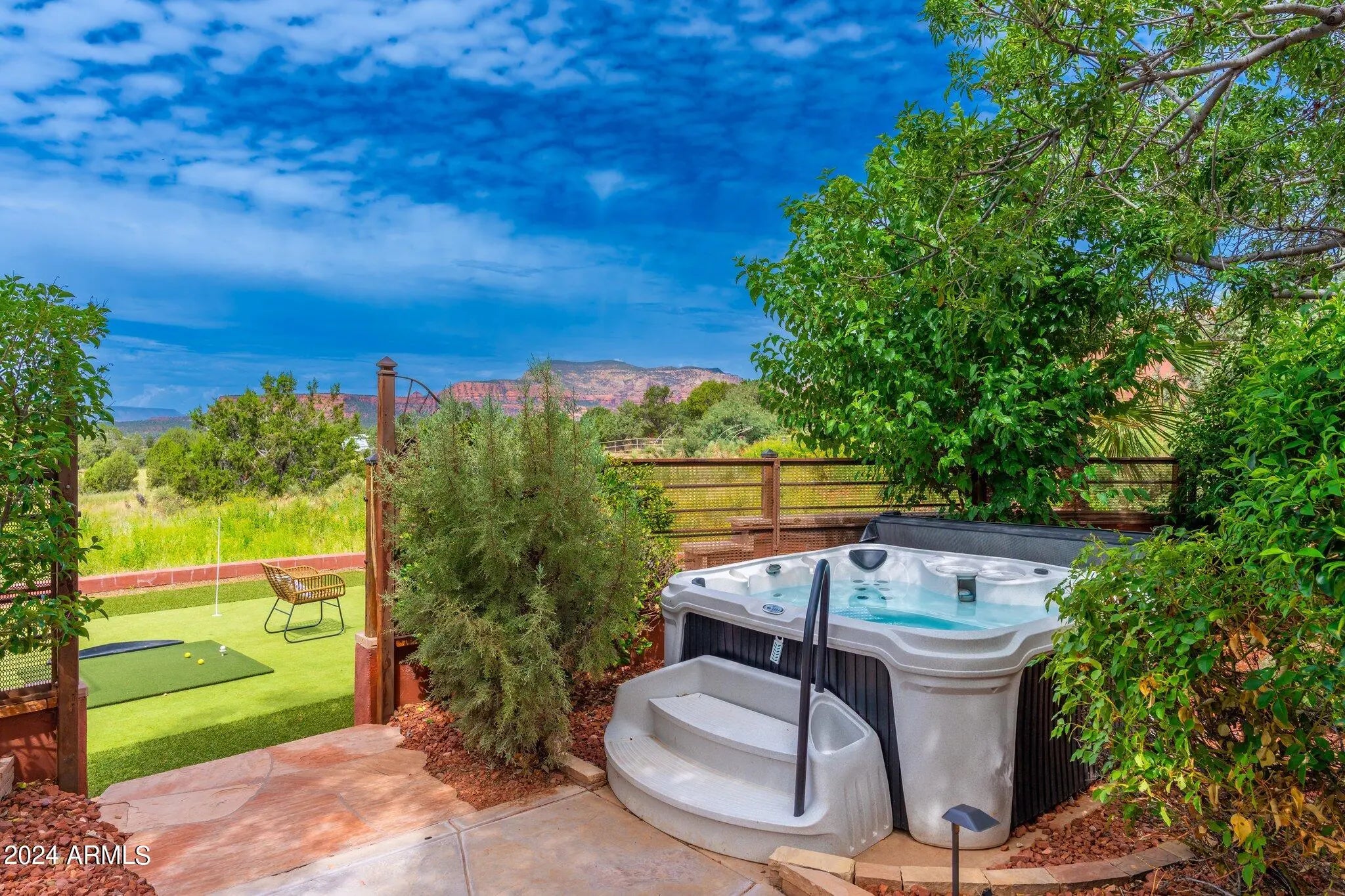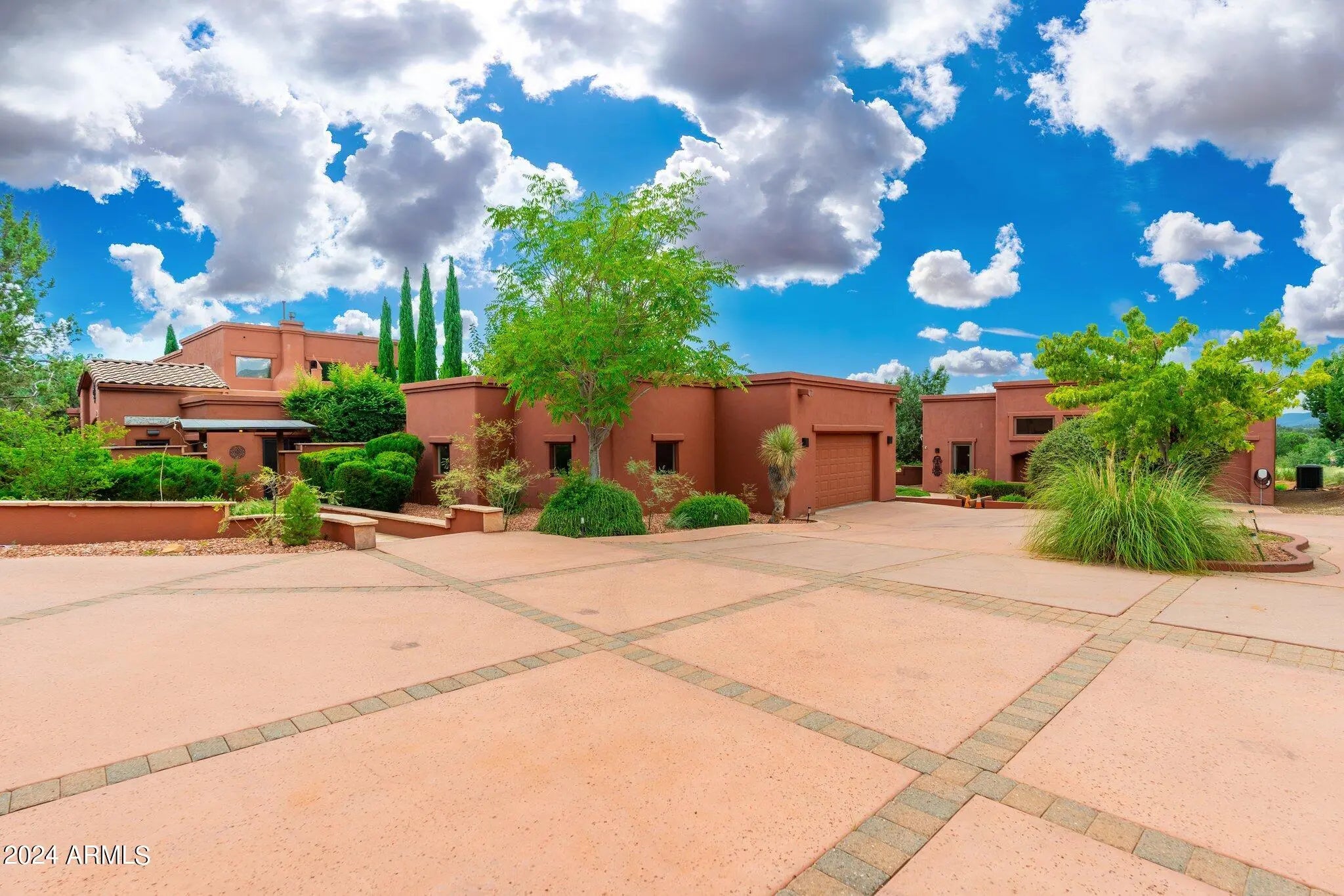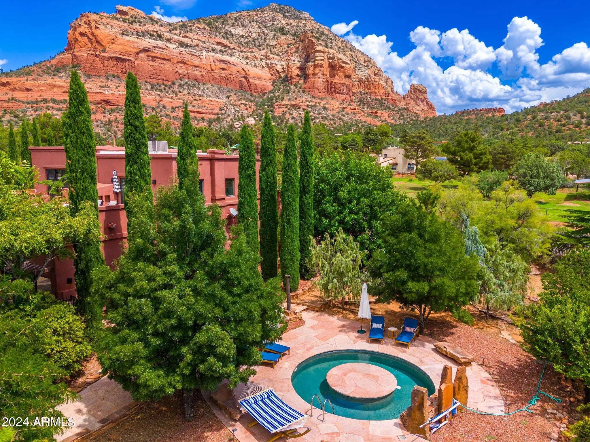 Buyer fell out of a lease purchase. Ignore days on market. This sprawling West Sedona Estate is amazing for so many reasons! The main home is spacious and has 4 bedrooms, 4 ensuite baths on 2.09 fabulous acres with expansive 360 views overlooking so many of Sedonas' landmark red rock mountains in an amazing location with no HOA. The outdoor entertaining areas are ample with plenty of room to relax and unwind including a putting green, multiple fireplaces, hot tub and pool. This home has an oversized 4 car detached garage with room for a workshop, 2 driveways, a separate guest house featuring 16-foot ceilings, 2 bedrooms, living area, kitchen with an attached climate-controlled RV garage. This extraordinary retreat is currently functioning as a successful short-term rental. This property has produced 350k in gross revenue in its first year, comes fully furnished but would also be a wonderful home for your family or great second home. The main house is 6,414 square feet with 4 spacious bedrooms 4 ensuite bathrooms and the primary Bedroom is on the main level and is huge with a stacked stone rock wall to add to its ambiance. Walk out to the expansive rear patio and enjoy morning coffee while admiring some of Sedona's most iconic rock formations. The kitchen has a Cambria Quartz Island and countertops. NXR chef grade range with a 6 burner gas cooktop, wine fridge, plenty of space to cook and entertain with multiple options for casual dining including a charming out door pergola with a large dining area, an outdoor fireplace and 2 outdoor fire pit areas, surrounded by lush greenery and mature fruit trees. There are so many outdoor entertainment areas it will be hard to choose where to be, the upper level which boasts a large living room/game room, fireplace and two huge decks. The views are unobstructed, you can see all the way to Mingus Mountain and the twinkling lights of Jerome. Cockscomb, Doe Mesa, Bear Mountain and Boynton Canyon to the West and Lizard, Chimney, Thunder Mountain to the East. Come see this in person, it is truly spectacular. Allow time to take it all in. New wine fridge, new roof, expanded new septic, new water heater, new washer and dryer, both in main house and guest house, refurbished putting green, ev charger and fully furnished.