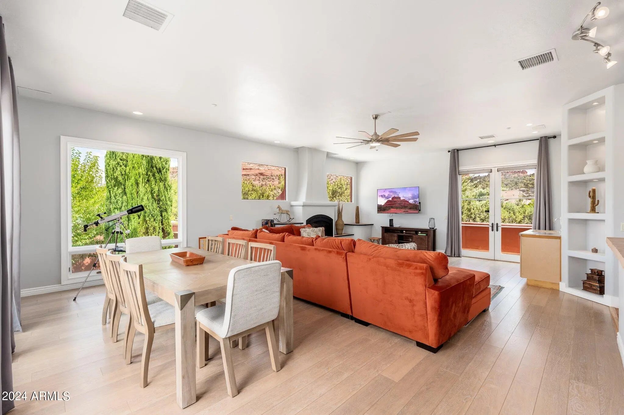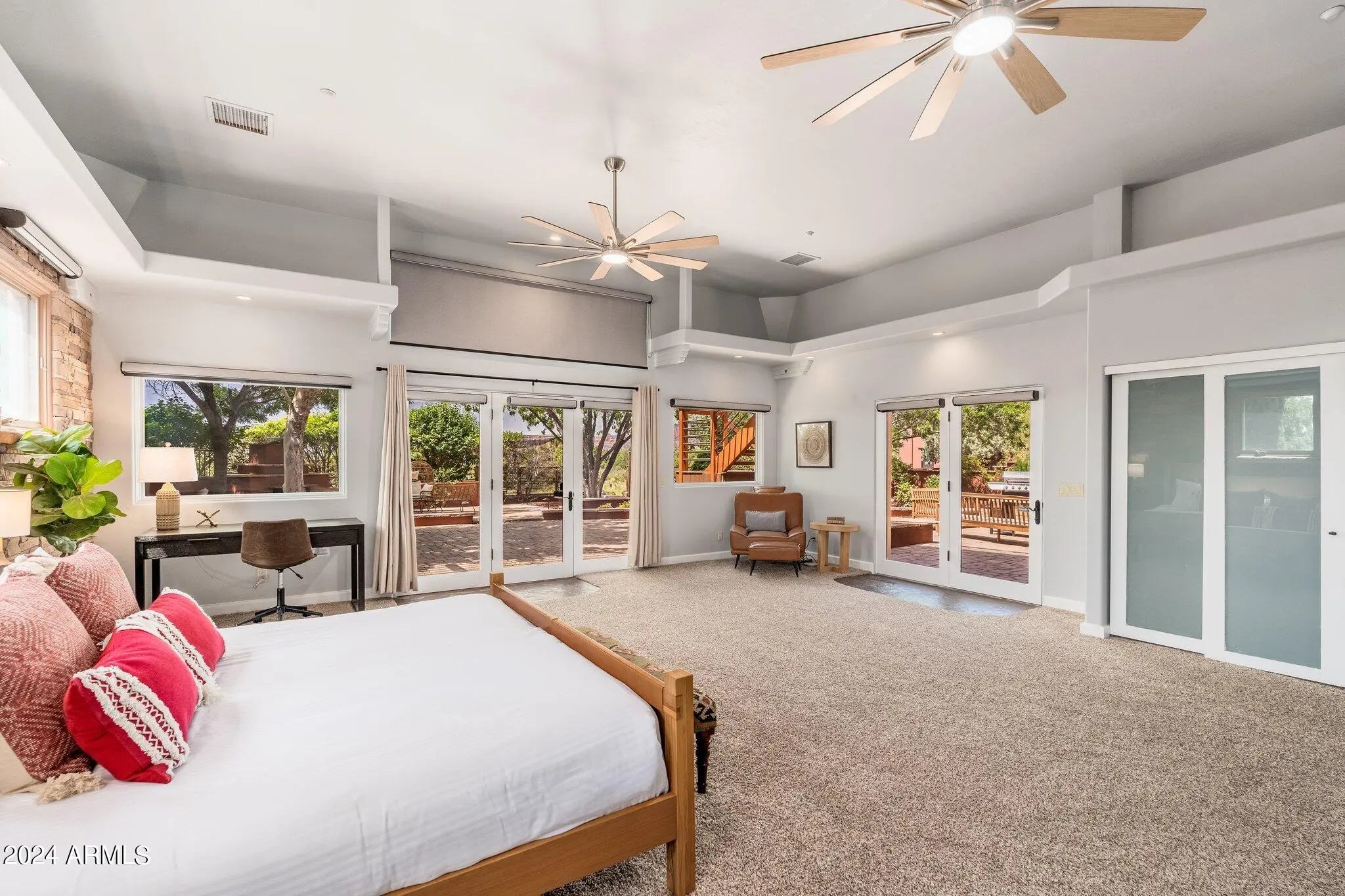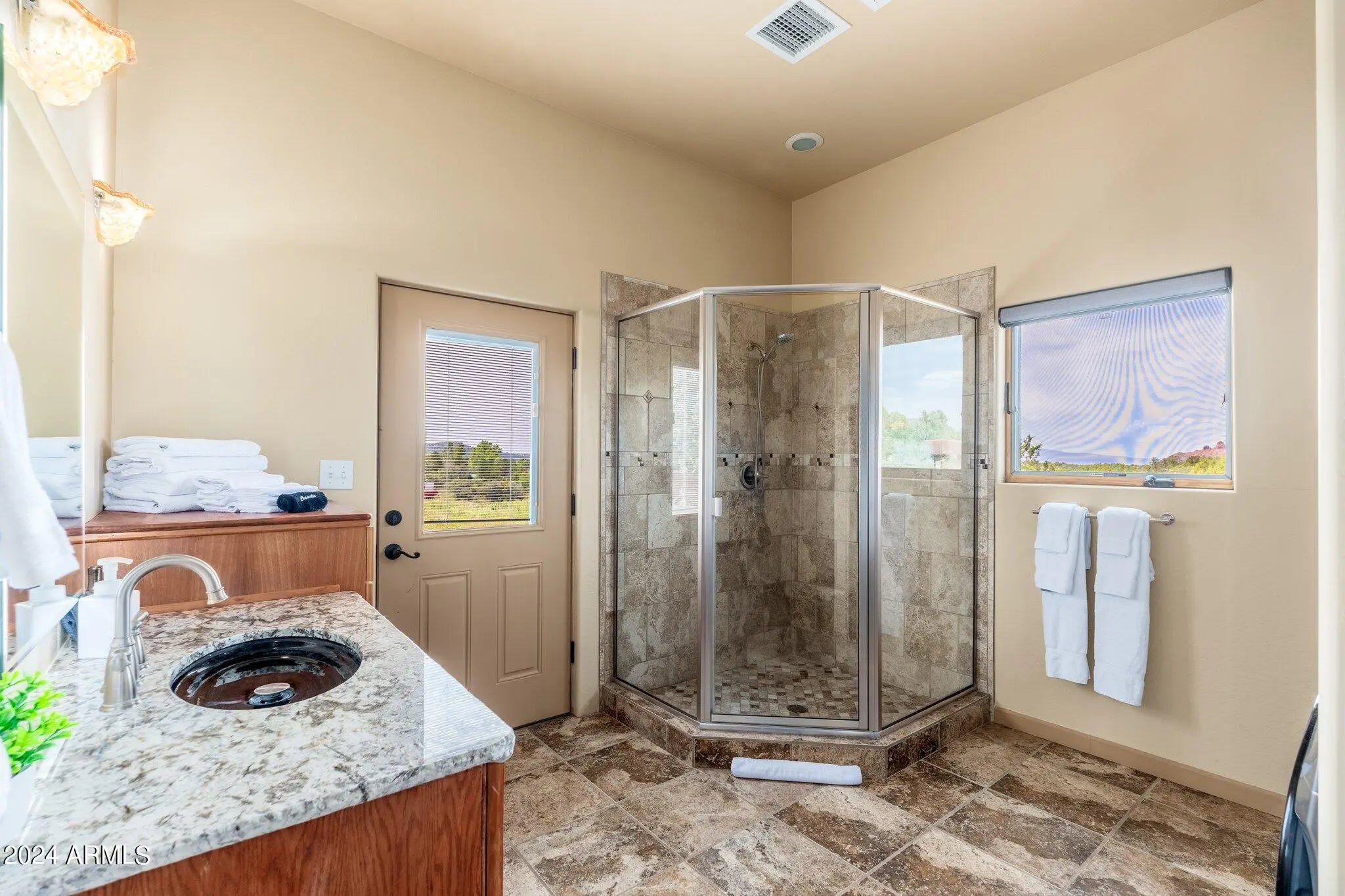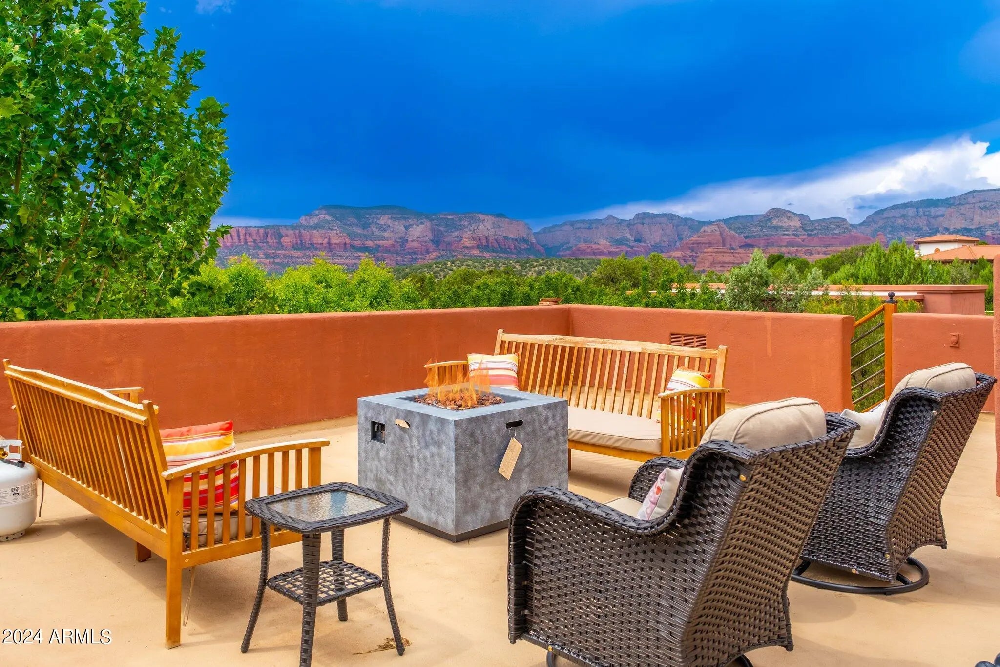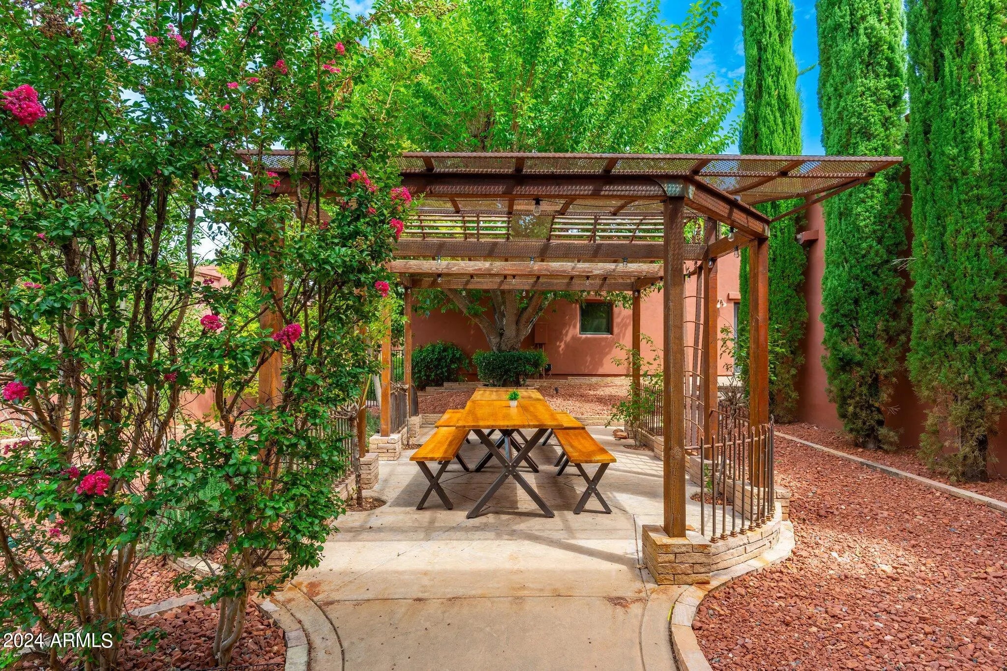 Buyer fell out of a lease purchase. Ignore days on market. This sprawling West Sedona Estate is amazing for so many reasons! The main home is spacious and has 4 bedrooms, 4 ensuite baths on 2.09 fabulous acres with expansive 360 views overlooking so many of Sedonas' landmark red rock mountains in an amazing location with no HOA. The outdoor entertaining areas are ample with plenty of room to relax and unwind including a putting green, multiple fireplaces, hot tub and pool. This home has an oversized 4 car detached garage with room for a workshop, 2 driveways, a separate guest house featuring 16-foot ceilings, 2 bedrooms, living area, kitchen with an attached climate-controlled RV garage. This extraordinary retreat is currently functioning as a successful short-term rental. This property has produced 350k in gross revenue in its first year, comes fully furnished but would also be a wonderful home for your family or great second home. The main house is 6,414 square feet with 4 spacious bedrooms 4 ensuite bathrooms and the primary Bedroom is on the main level and is huge with a stacked stone rock wall to add to its ambiance. Walk out to the expansive rear patio and enjoy morning coffee while admiring some of Sedona's most iconic rock formations. The kitchen has a Cambria Quartz Island and countertops. NXR chef grade range with a 6 burner gas cooktop, wine fridge, plenty of space to cook and entertain with multiple options for casual dining including a charming out door pergola with a large dining area, an outdoor fireplace and 2 outdoor fire pit areas, surrounded by lush greenery and mature fruit trees. There are so many outdoor entertainment areas it will be hard to choose where to be, the upper level which boasts a large living room/game room, fireplace and two huge decks. The views are unobstructed, you can see all the way to Mingus Mountain and the twinkling lights of Jerome. Cockscomb, Doe Mesa, Bear Mountain and Boynton Canyon to the West and Lizard, Chimney, Thunder Mountain to the East. Come see this in person, it is truly spectacular. Allow time to take it all in. New wine fridge, new roof, expanded new septic, new water heater, new washer and dryer, both in main house and guest house, refurbished putting green, ev charger and fully furnished.