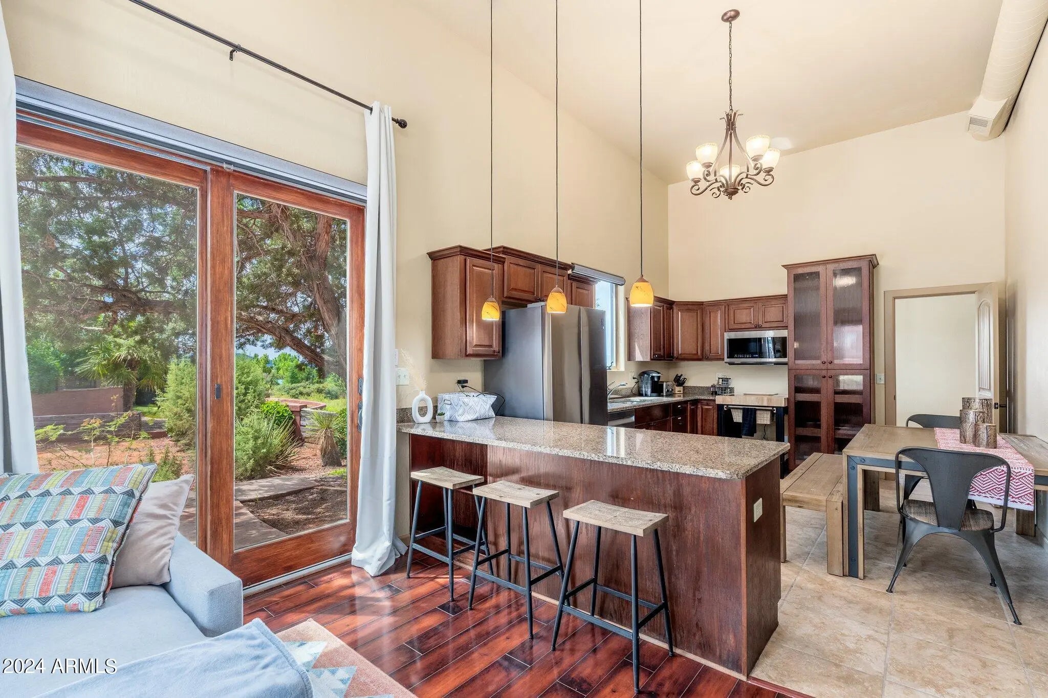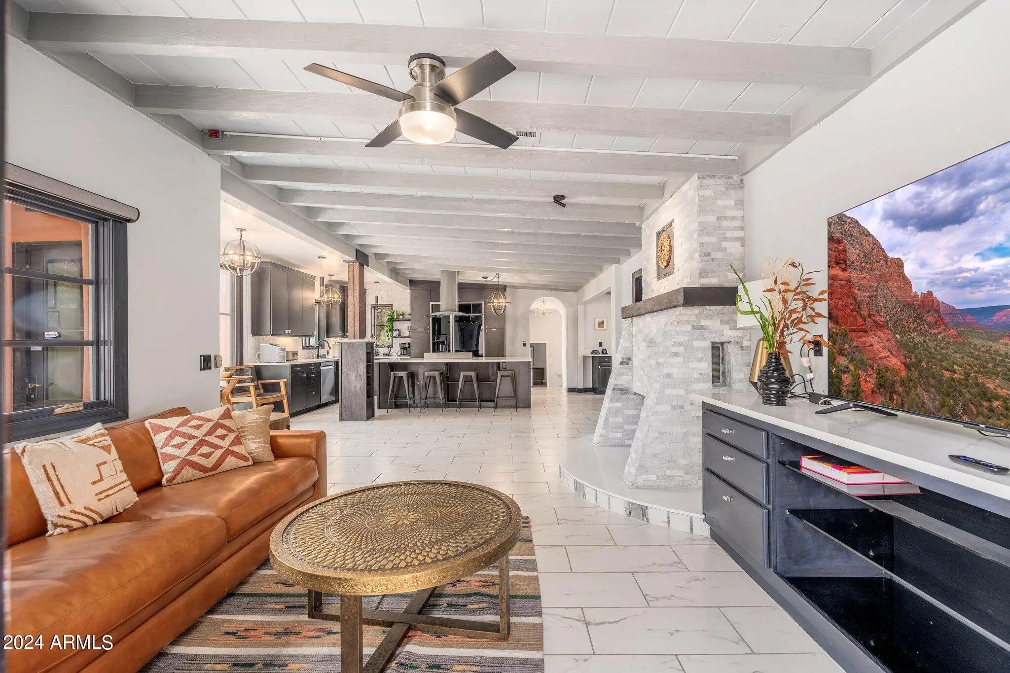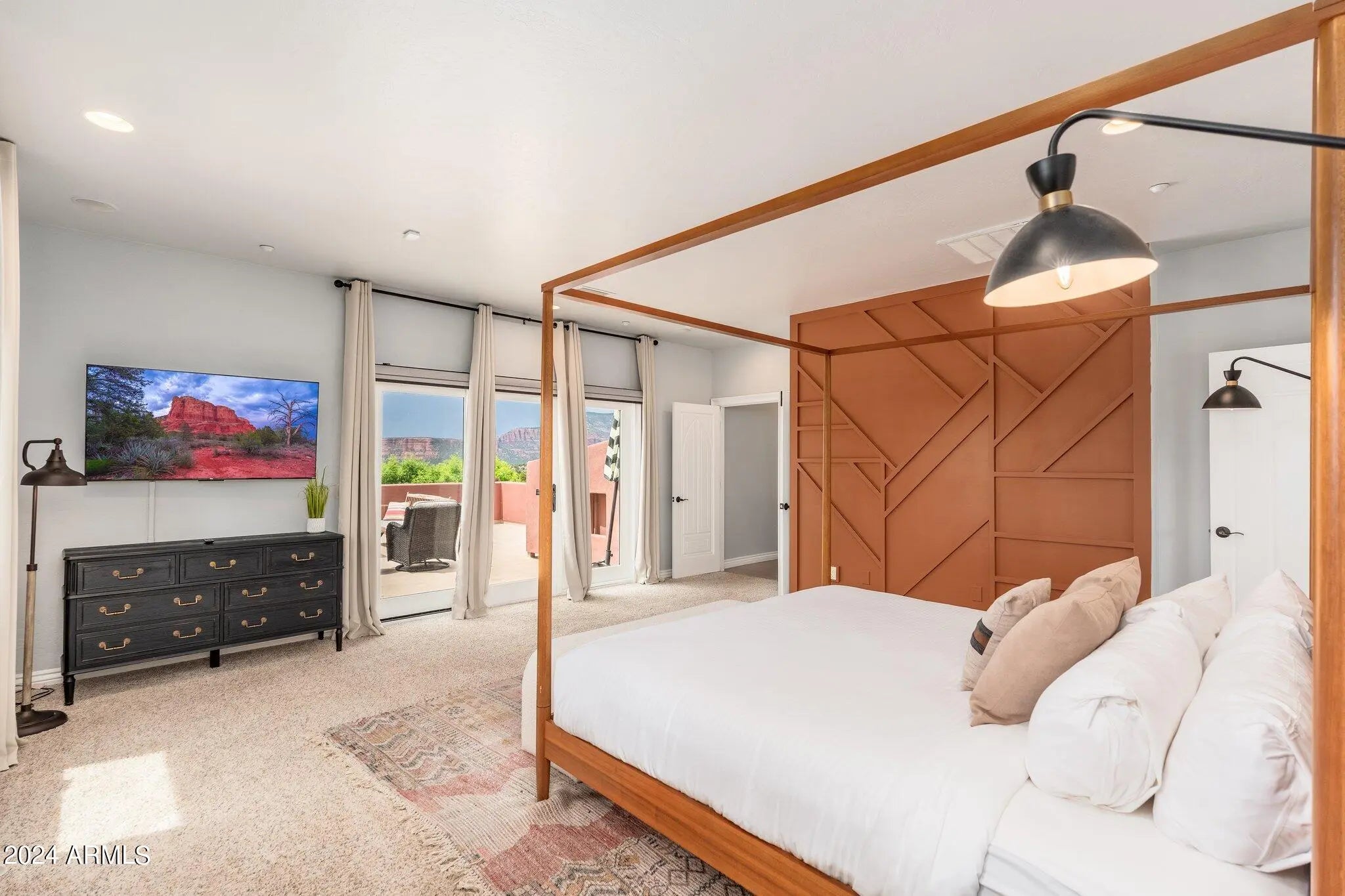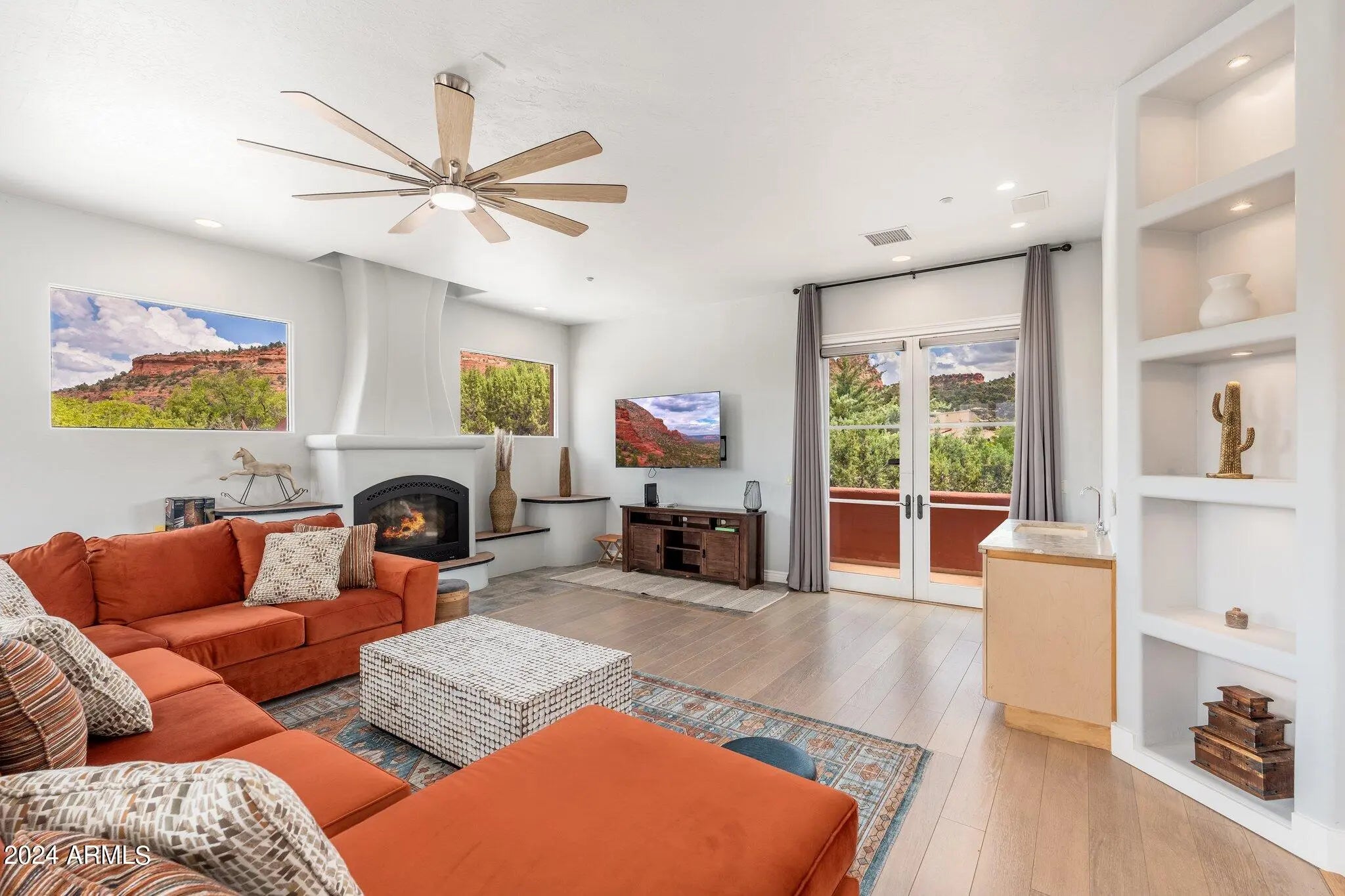 Buyer fell out of a lease purchase. Ignore days on market. This sprawling West Sedona Estate is amazing for so many reasons! The main home is spacious and has 4 bedrooms, 4 ensuite baths on 2.09 fabulous acres with expansive 360 views overlooking so many of Sedonas' landmark red rock mountains in an amazing location with no HOA. The outdoor entertaining areas are ample with plenty of room to relax and unwind including a putting green, multiple fireplaces, hot tub and pool. This home has an oversized 4 car detached garage with room for a workshop, 2 driveways, a separate guest house featuring 16-foot ceilings, 2 bedrooms, living area, kitchen with an attached climate-controlled RV garage. This extraordinary retreat is currently functioning as a successful short-term rental. This property has produced 350k in gross revenue in its first year, comes fully furnished but would also be a wonderful home for your family or great second home. The main house is 6,414 square feet with 4 spacious bedrooms 4 ensuite bathrooms and the primary Bedroom is on the main level and is huge with a stacked stone rock wall to add to its ambiance. Walk out to the expansive rear patio and enjoy morning coffee while admiring some of Sedona's most iconic rock formations. The kitchen has a Cambria Quartz Island and countertops. NXR chef grade range with a 6 burner gas cooktop, wine fridge, plenty of space to cook and entertain with multiple options for casual dining including a charming out door pergola with a large dining area, an outdoor fireplace and 2 outdoor fire pit areas, surrounded by lush greenery and mature fruit trees. There are so many outdoor entertainment areas it will be hard to choose where to be, the upper level which boasts a large living room/game room, fireplace and two huge decks. The views are unobstructed, you can see all the way to Mingus Mountain and the twinkling lights of Jerome. Cockscomb, Doe Mesa, Bear Mountain and Boynton Canyon to the West and Lizard, Chimney, Thunder Mountain to the East. Come see this in person, it is truly spectacular. Allow time to take it all in. New wine fridge, new roof, expanded new septic, new water heater, new washer and dryer, both in main house and guest house, refurbished putting green, ev charger and fully furnished.
