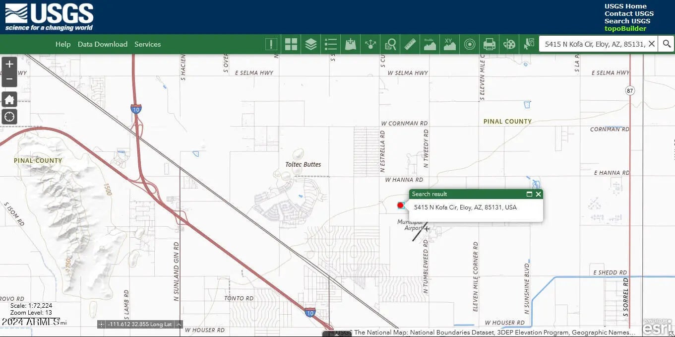 LARGE RESIDENTIAL LOT: A prime Pie Shaped Residential Zoned lot (approx. .28 acre) with City WATER located on Estrella at Acoma. Zoning allows for a residential home to be built and is perfect for a Developer, Investor or perhaps a future retirement home... With SKYDIVE Arizona nearby, this one is a true find. Pinal County is experiencing huge growth and this lot is already located within the City limits of Eloy, AZ. Can you say LOCATION, right in the path of growth, just off the I-10, below the I-8 split in Casa Grande. Robson Ranch, Union Pacific's rail line, the Promenade Mall... Yep, there is plenty going on in the area along with major job growth thanks to LUCID and others. Eloy and CG have plenty of projects in the planning stage as well. This lot has been platted and surveyed, str