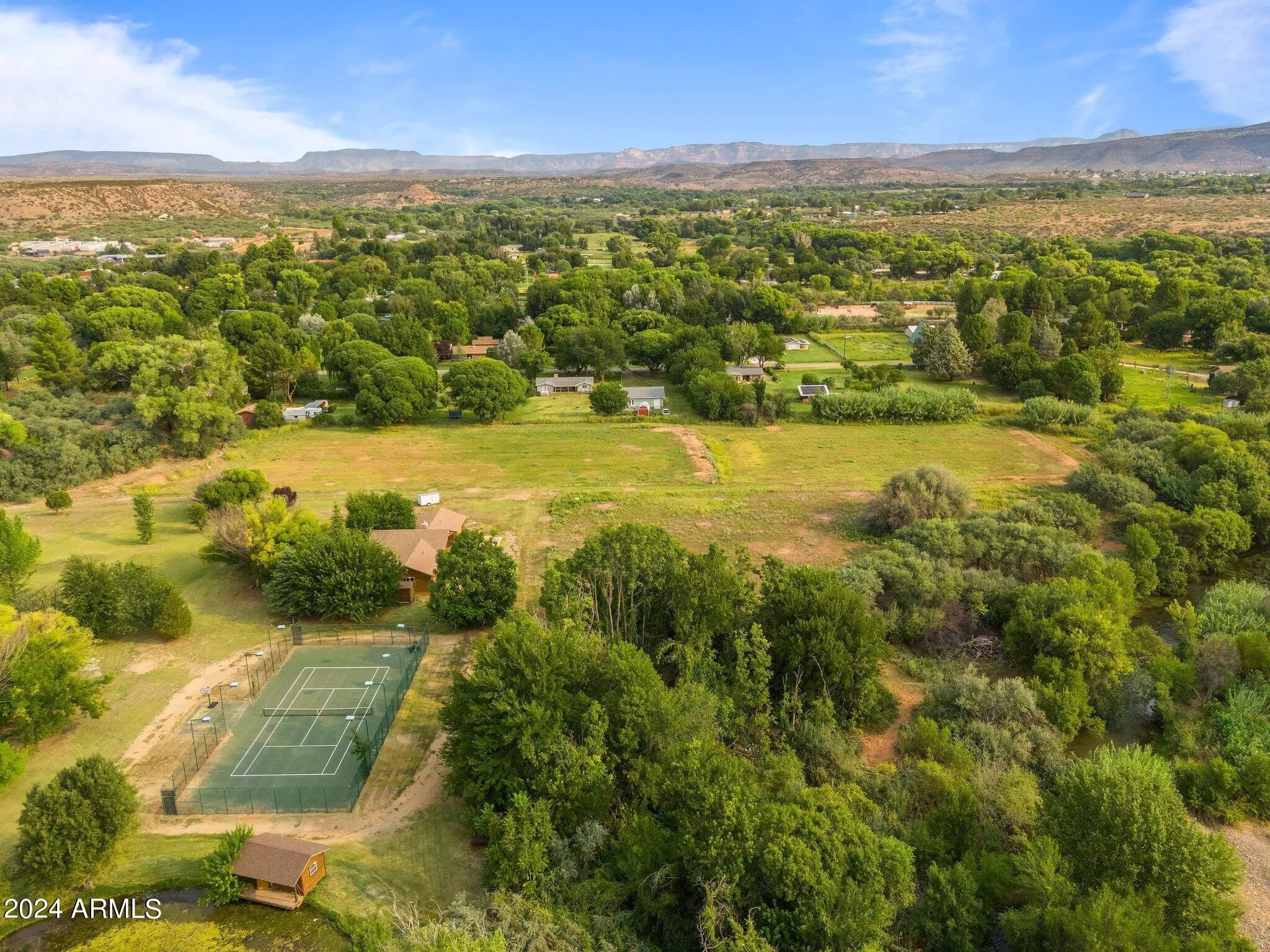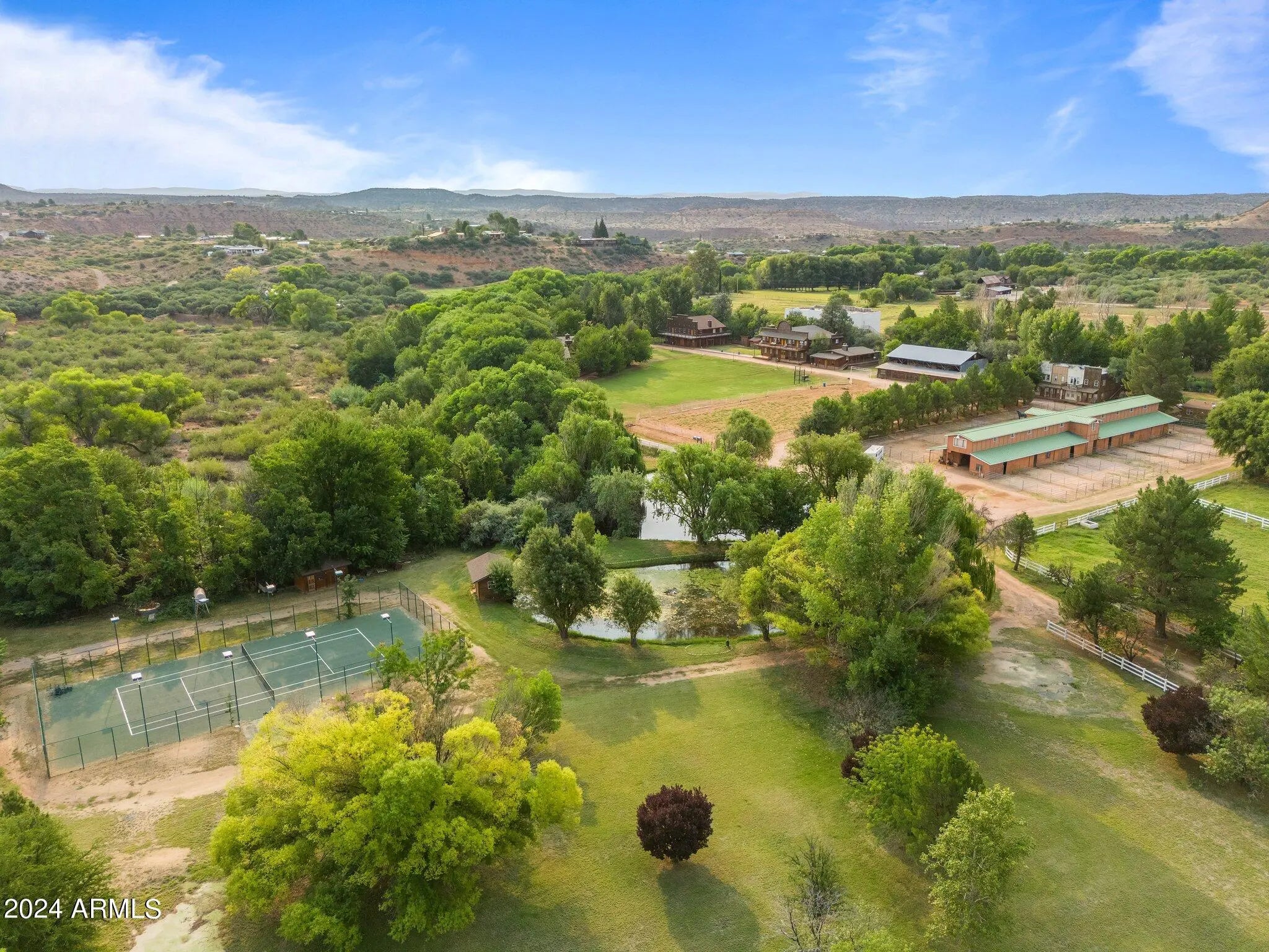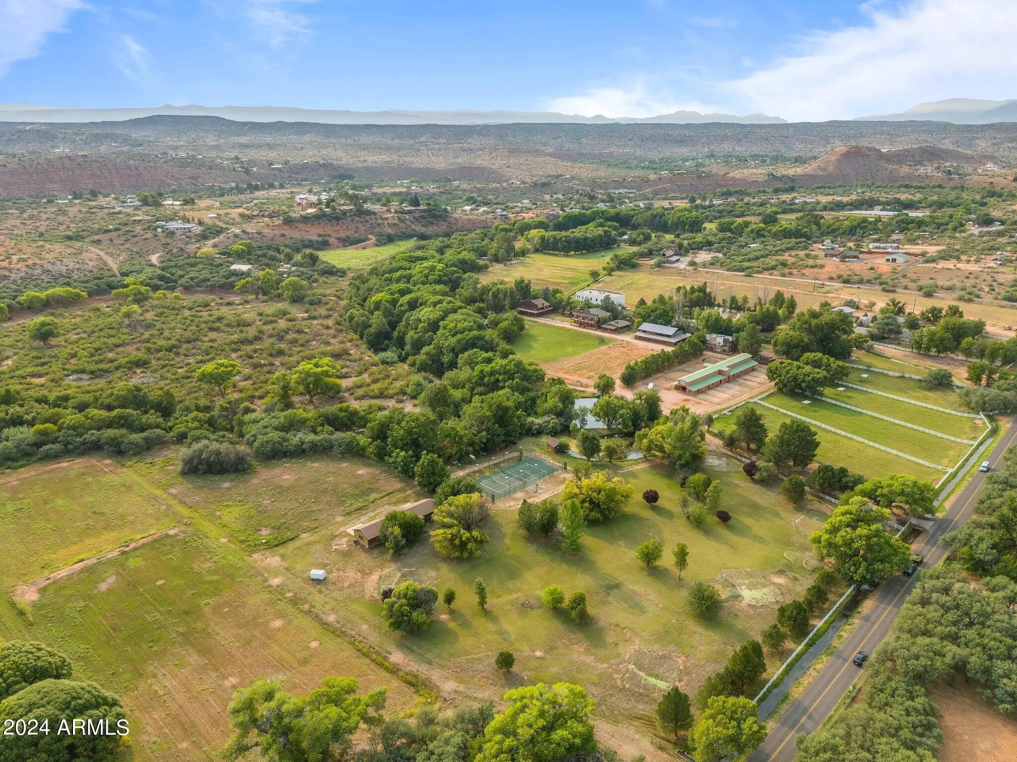 Unparalleled opportunity to own over 50 acres outside of Sedona. These remarkable 11 parcels hold the potential to create your own ranch, business, and rental opportunities all in one place. Sitting Creekside and just 20 minutes outside of Sedona, this horse property includes residential homes, a hotel, an opera house, indoor skating rink, tennis court, golf course, barn/stable, general store, and original stage coach. Listing Broker has full parcel and property details. This is truly a one of a kind property.
