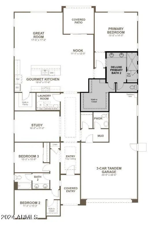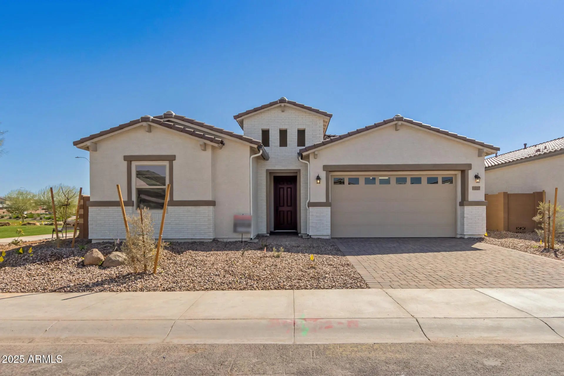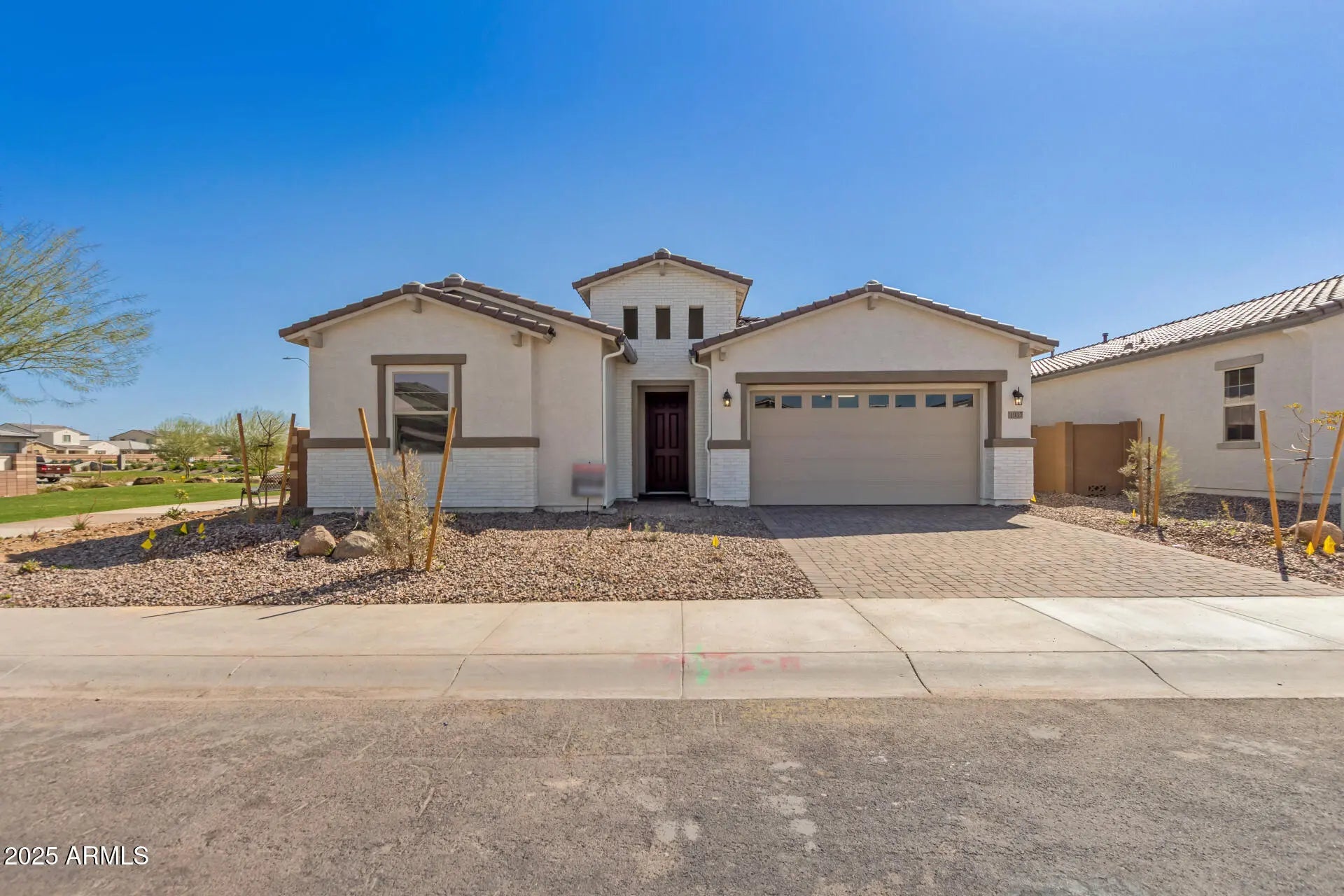 Explore this eye-catching Celeste home, ready for quick move-in on a homesite boasting driveway pavers and front yard landscaping. Included features: an inviting covered entry; a gourmet kitchen offering 42'' cabinets, quartz countertops, stainless-steel appliances, With a wall oven and built in microwave above; a walk-in pantry and a center island; an open dining area; a large great room boasting center-meet doors leading onto a tranquil covered patio; an elegant primary suite showcasing an expansive walk-in closet and gorgeous bathroom with a Deluxe Spa Shower and cultured marble countertops; a convenient laundry; a mudroom and a 3-car tandem garage. This home also offers additional windows and ceiling fan prewiring in select rooms as well as airy 10' ceilings throughout. .