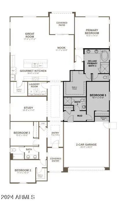 Explore this stunning Celeste home, ready for quick move-in on a homesite boasting driveway pavers and front yard landscaping. Included features: an inviting covered entry with a tray ceiling; a quiet study; a gourmet kitchen offering 42'' cabinets, quartz countertops, stainless-steel appliances, wall oven with built in microwave, a walk-in pantry and a center island; an open dining area; a spacious great room boasting center-meet doors leading onto a relaxing covered patio; a lavish primary suite showcasing a generous walk-in closet and a private bath with cultured marble countertops; a convenient laundry; a mudroom and a 2-car garage. This home also offers stone tile flooring, additional windows and ceiling fan prewiring in select rooms as well as airy 10' ceilings throughout.