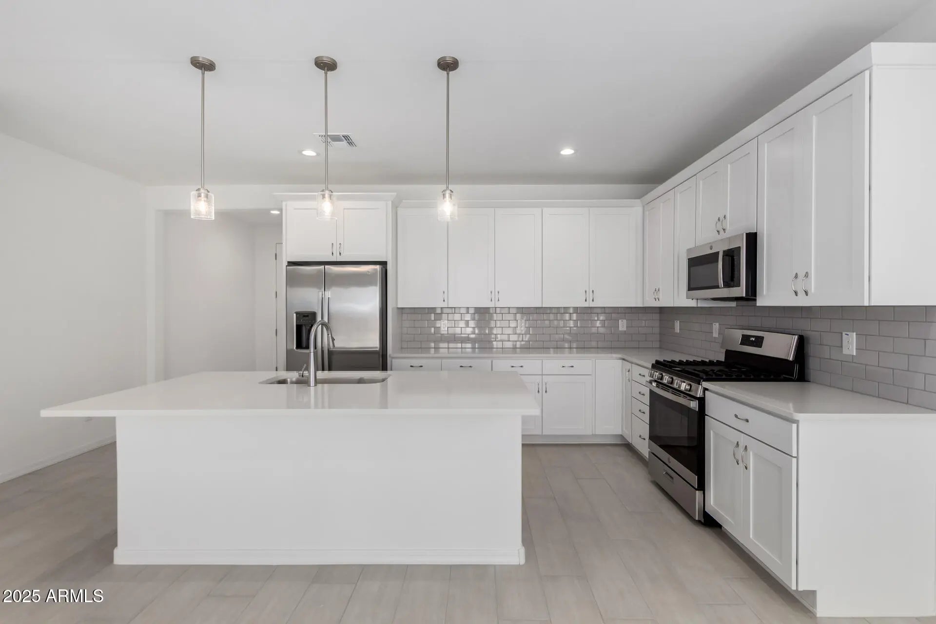 : Discover this single-story Alexandrite home, ready for quick move-in! Included features: a welcoming covered entry; an open great room with center-meet doors leading onto a tranquil covered patio; a dining nook; a well-appointed kitchen boasting a corner layout, white 42'' upper cabinets, quartz countertops, 3x6 subway tile backsplash, satin nickel hardware, a pantry, a center island with pendant lighting, and stainless-steel appliance suite; a convenient laundry room; a lavish primary suite offering a walk-in closet and a private bath with double sinks; three additional bedrooms; a second full bath with double sinks, and a 2-car garage with a service door, belt drive opener, and 8' door height. This home also features 9x35" stone tile flooring, carpeted bedrooms, cultured marble bathroom countertops, ceiling fan prewiring in all rooms plus patio, a paver driveway and walkway, and front yard landscaping! Also included is garage coach lights, soft water loop, R/O pre-plumb, gas stub at the back patio, and tankless gas hot water heater. Plus, much more!
