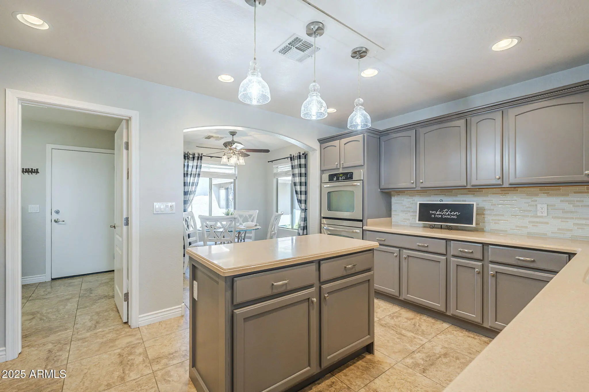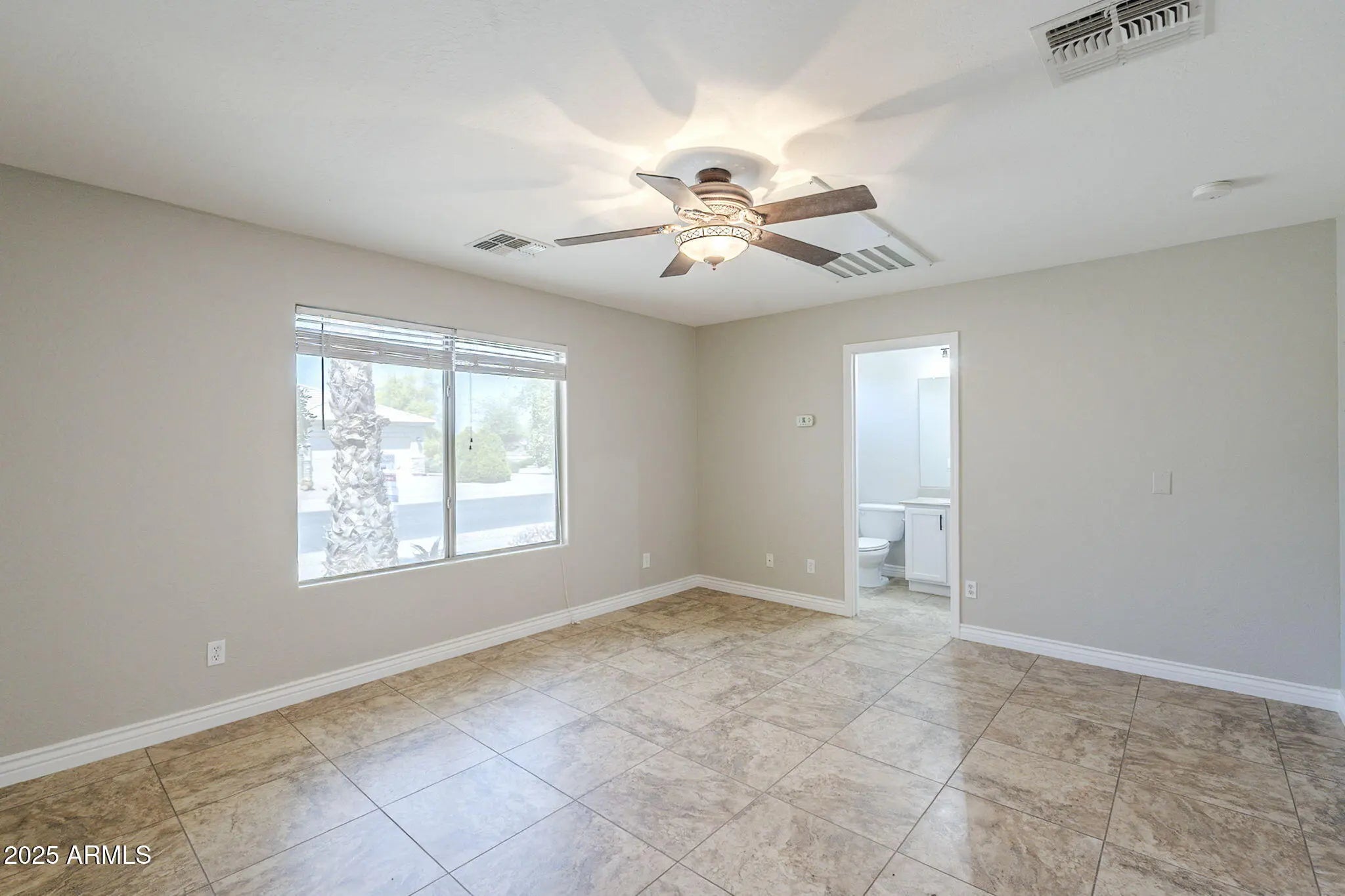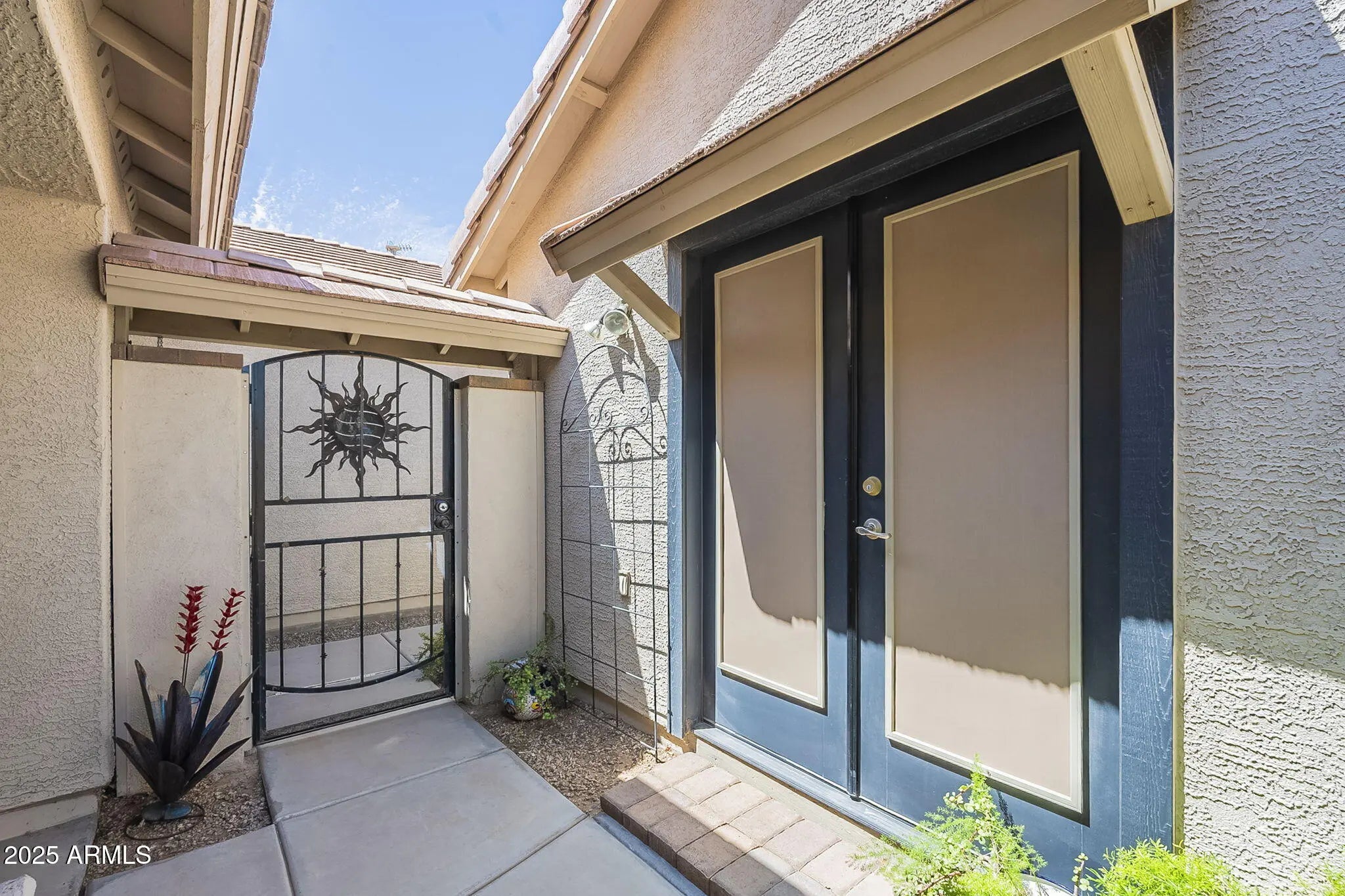 Private-entry casita + no rear/side neighbor = rare privacy in Mission Royale. New HVAC, garage door, appliances & more! One of the most flexible floor plans in Mission Royale, this spacious home includes a private-entry casita with its own bedroom, bath, and walk-in closet, perfect for guests, hobbies, or working from home. Inside, enjoy a well-appointed kitchen with double ovens, a spacious island, and a large breakfast bar. The split layout offers privacy, while all tile floors and neutral paint throughout keep things fresh and low-maintenance. Backing to open space with only one side neighbor, this home offers a rare sense of peace. Enjoy all that Mission Royale offers - resort-style pools, pickleball, golf, and a vibrant clubhouse with fitness center, events, and more