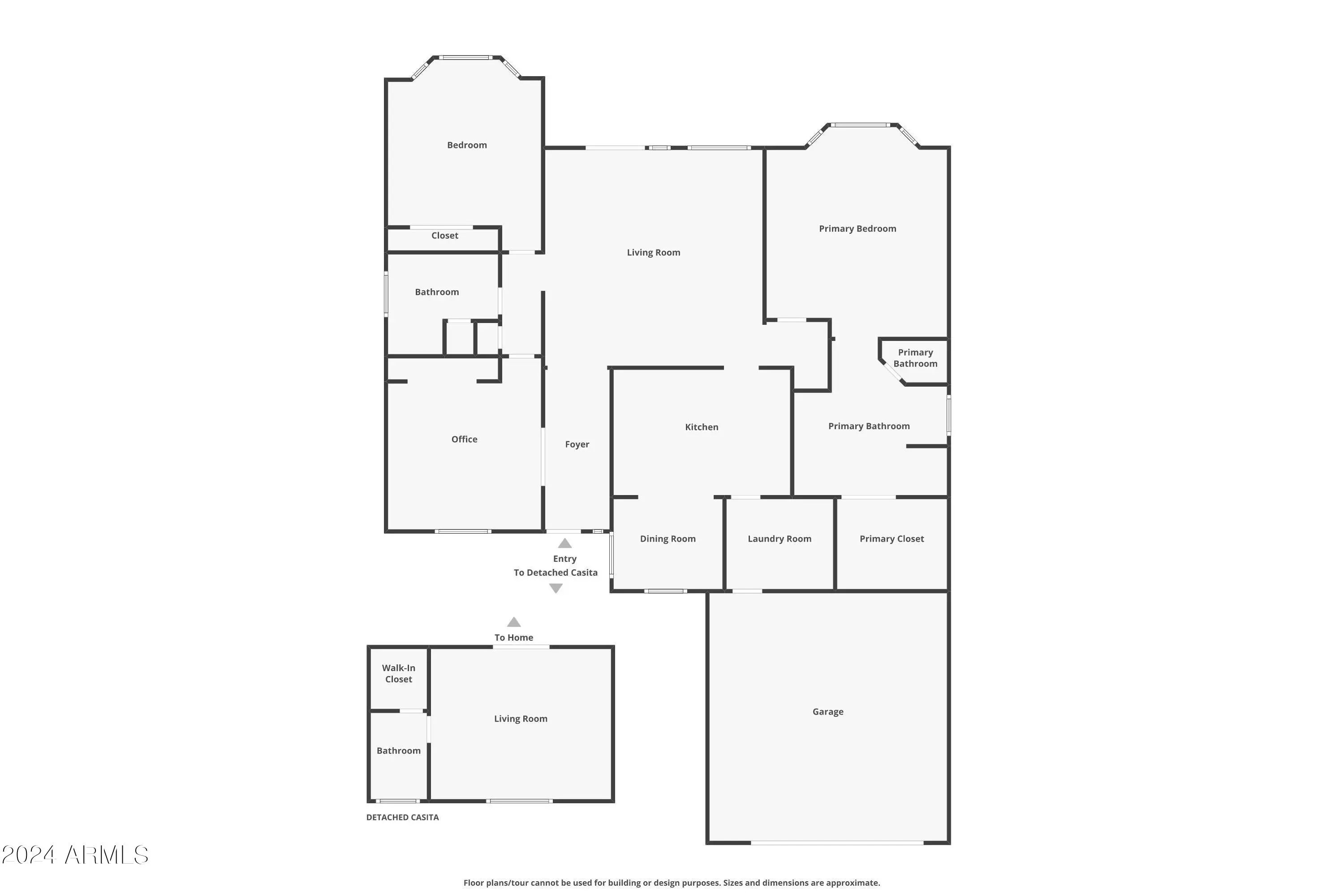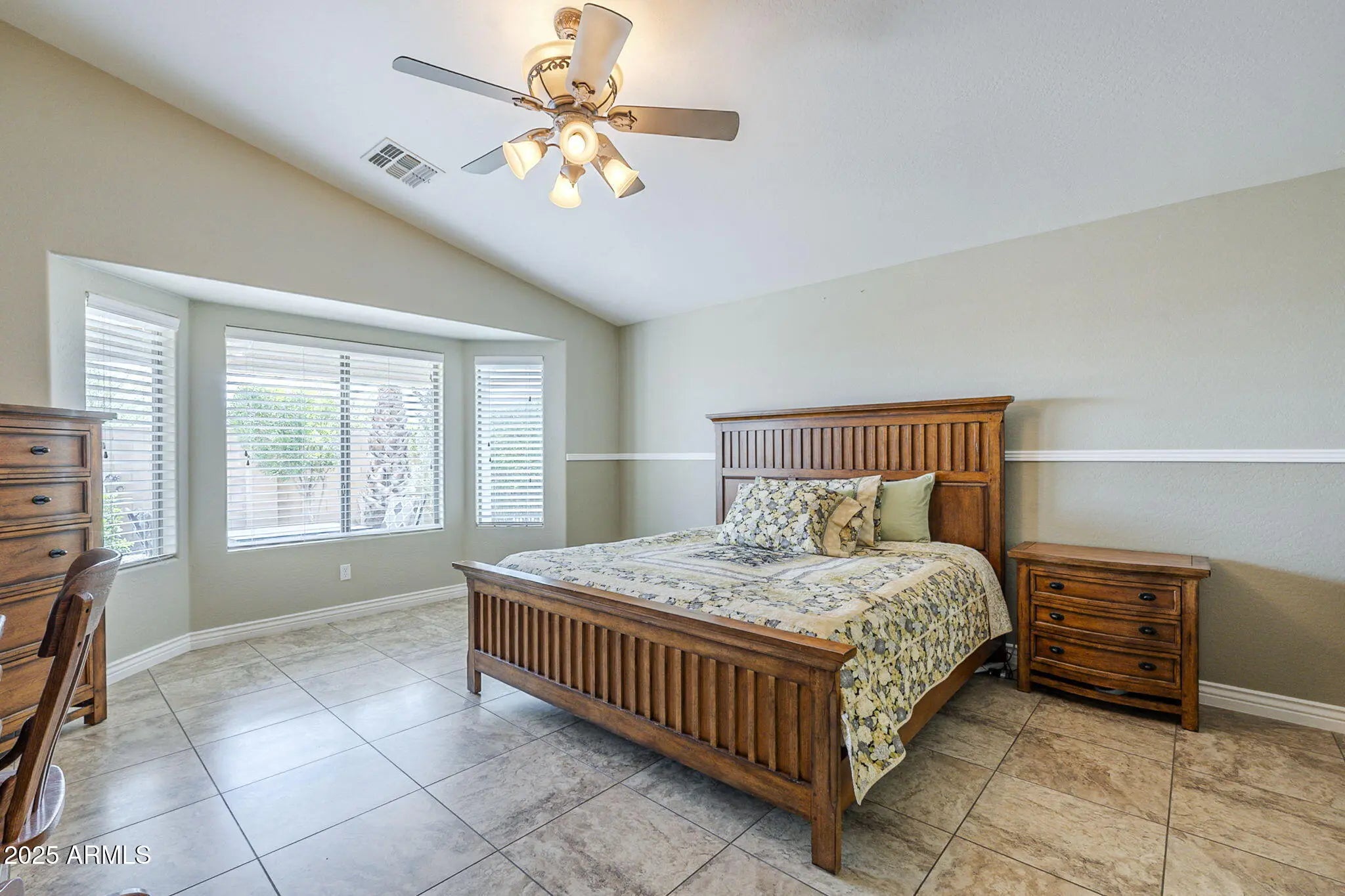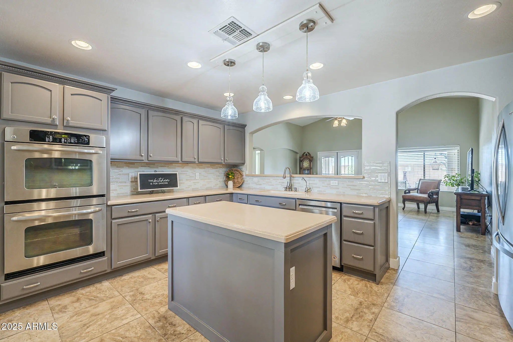 Private-entry casita + no rear/side neighbor = rare privacy in Mission Royale. New HVAC, garage door, appliances & more! One of the most flexible floor plans in Mission Royale, this spacious home includes a private-entry casita with its own bedroom, bath, and walk-in closet, perfect for guests, hobbies, or working from home. Inside, enjoy a well-appointed kitchen with double ovens, a spacious island, and a large breakfast bar. The split layout offers privacy, while all tile floors and neutral paint throughout keep things fresh and low-maintenance. Backing to open space with only one side neighbor, this home offers a rare sense of peace. Enjoy all that Mission Royale offers - resort-style pools, pickleball, golf, and a vibrant clubhouse with fitness center, events, and more