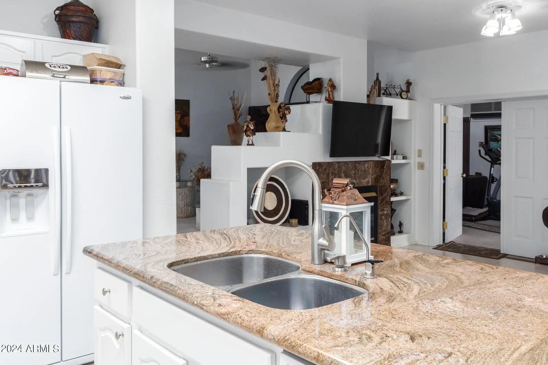 This Charming three-bedroom home with a three-car garage and bonus room that can be used as a media room, exercise or playroom. This home is nestled in the golf course community of Alta Mesa. Upon entering the home, you will be greeted , by light bright walls and vaulted ceilings. Coupled with a two-way fireplace that leads to a spacious and cozy family room. The heart of the home is the kitchen. A haven for a culinary enthusiast. Large granite island counters for eating and entertaining. The backyard epitomizes comfort relaxation. Three mature fruit trees synthetic grass, gravel a privacy wall and so much more . Brand new AC unit just installed in September 2024