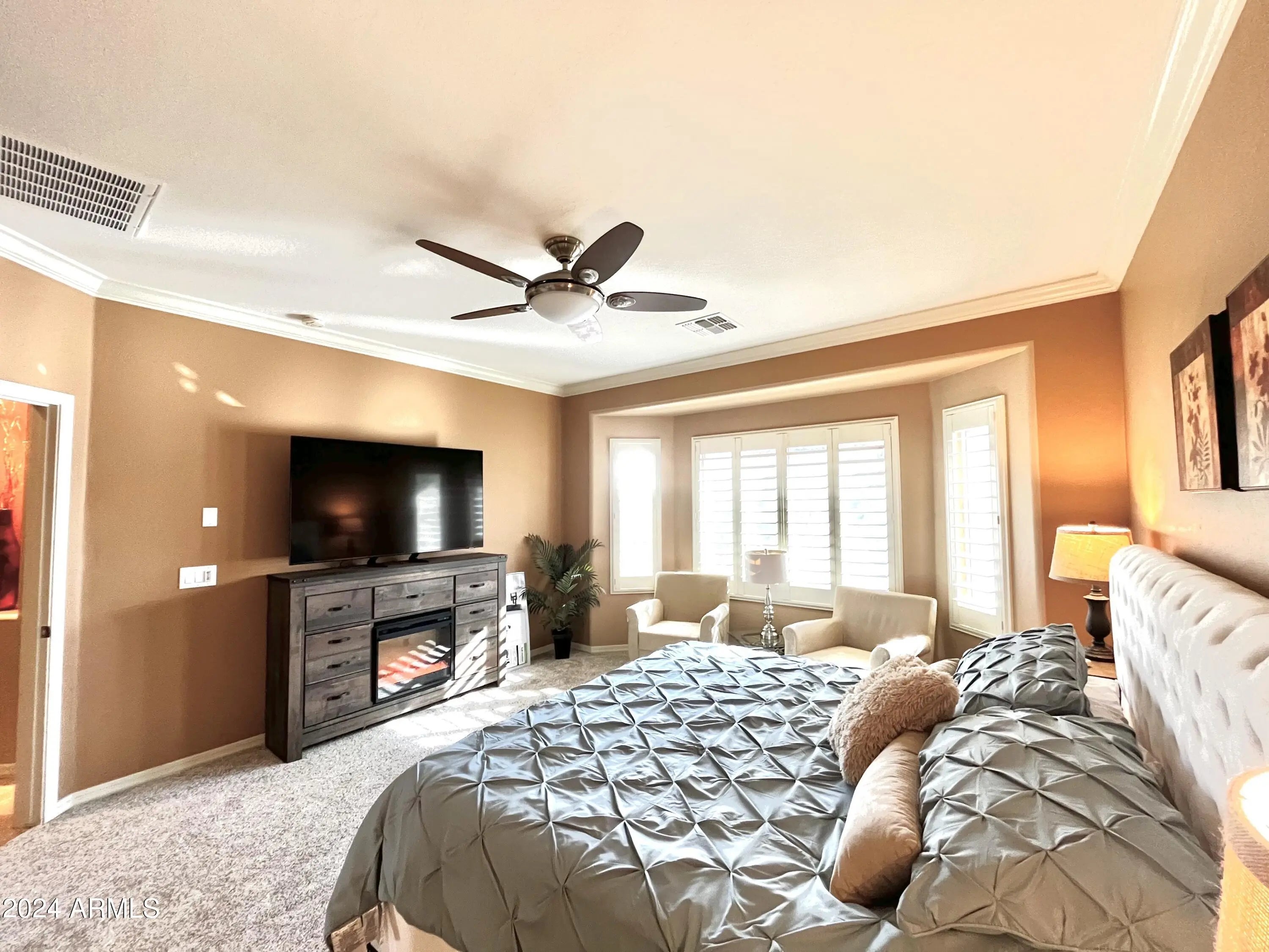 BEAUTIFUL, FULLY furnished home w/ AMAZING amenities incl. resident rate golf fees on award winning 18 hole course! Spacious, non-smoking home on lovely corner lot! 2 bdrms + office, 2 full baths & 2 car garage. Home fully equipped! Includes all utilities & wifi for short term rentals + smart TV's! NEW furniture inside & out. Large front & back patio w/ sunshades, grill, cozy fire-pit. Master has new king mattress & cozy electric fireplace! New thick pad & carpet, new appliances, fully equipped kitchen, plantation shutters+beautiful granite! 1 renter must be 55+ in order to use amenities. Rent varies based on the month. Available Oct, Nov & Dec 2025 at $3500/month.
