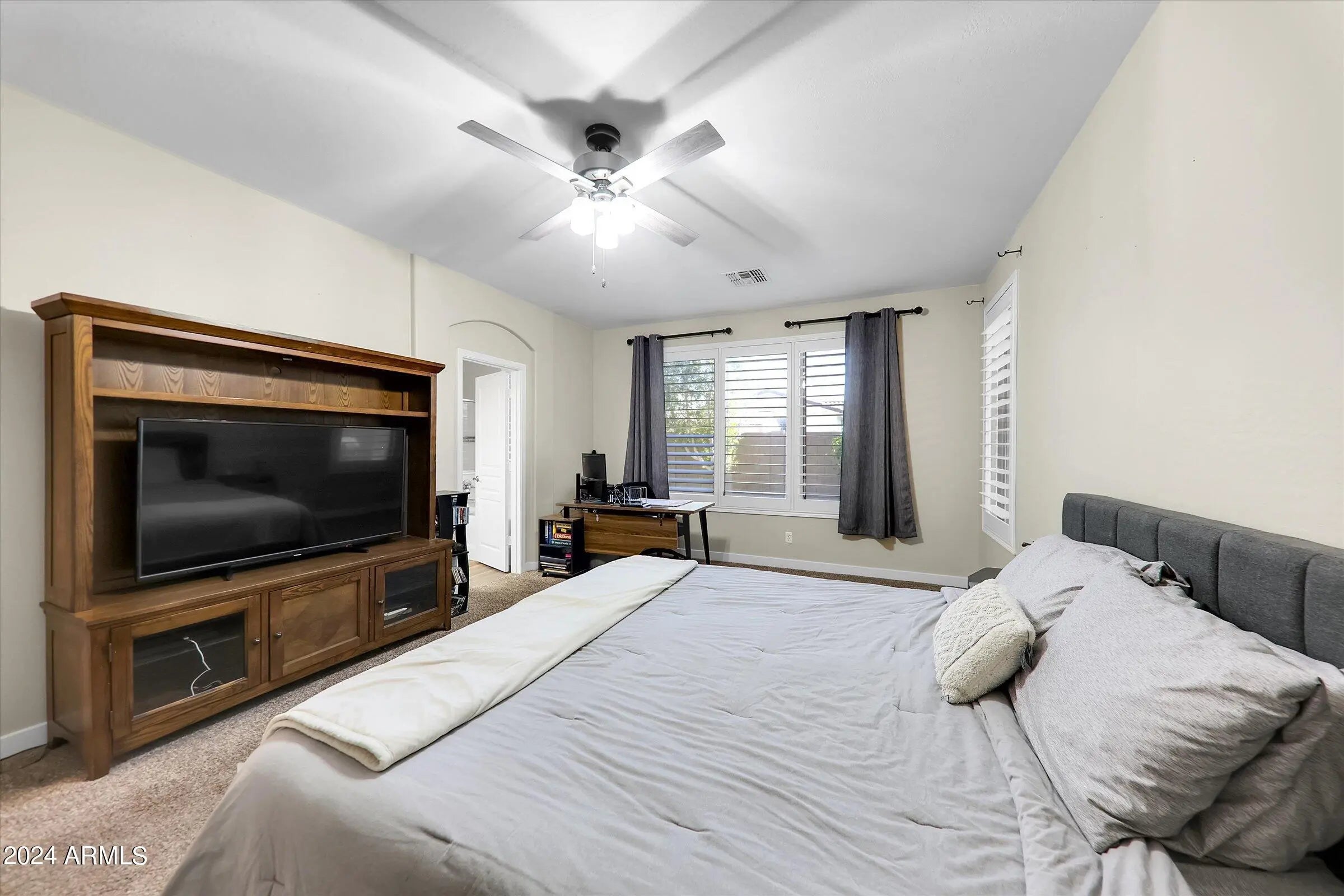WHAT COULD HAVE BEEN THE FORMER MODEL IS NOW AVAILABLE AND LOADED WITH EXTRAS/ EXCELLENT FLOORPLAN WAS DESIGNED FOR FAMILY LIVING W/ SPACIOUS FAMILY & LIVING ROOMS/ BAY WINDOWS IN BOTH DR & LR/ CUSTOM DISTRESSED WOODWORK AND DECORATIVE STONE ACCENTS GIVE THIS HOME THE ''FLETCHER FARMS FEEL''/ CUSTOM PLANTATION SHUTTERS COVER ALL OF THE WINDOWS/ TILE AND LAMINATE COVER THE FLOORS EXCEPT THE CARPETED BEDROOMS/ KITCHEN HAS UPGRADED CABINERTY, GRANITS TOPS, SS APPLIANCES, GAS STOVE, W/I PANTRY AND GREAT BREAKFAST BAR/ OTHER EXTRAS INCLUDE FANS IN ALL ROOMS, 9' CEILINGS, SECURITY SYSTEM, R/O & SOFT WATER, GAS HOT WATER & HEAT & SUNSCREENS/ THE 3CGARAGE HAS EPOXY FLOORS AND ATTACHED GARAGE CABINETS/ EASY CARE DESERT FRONT YARD AND GRASS REAR FOR THE KIDS/ NICE STORAGE SHED W/ ELECTRIC/ SPACIOUS PAVER PATIO WITH OVERSIZED GAZEBO/ YOUR OWN PARK IS DIAGONAL TO THE HOME A BALL THROW AWAY/ THIS HOME IS MOVE IN READY