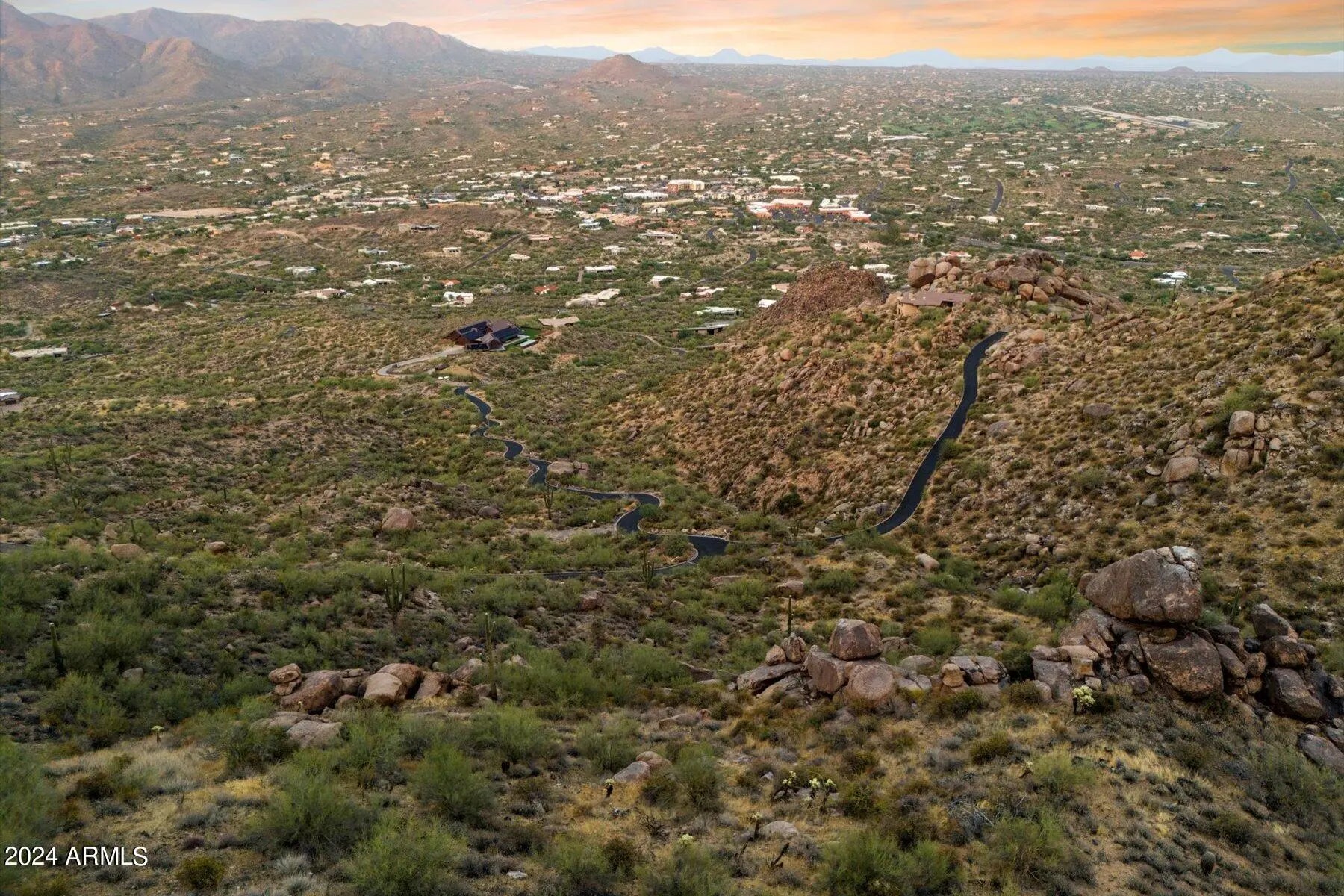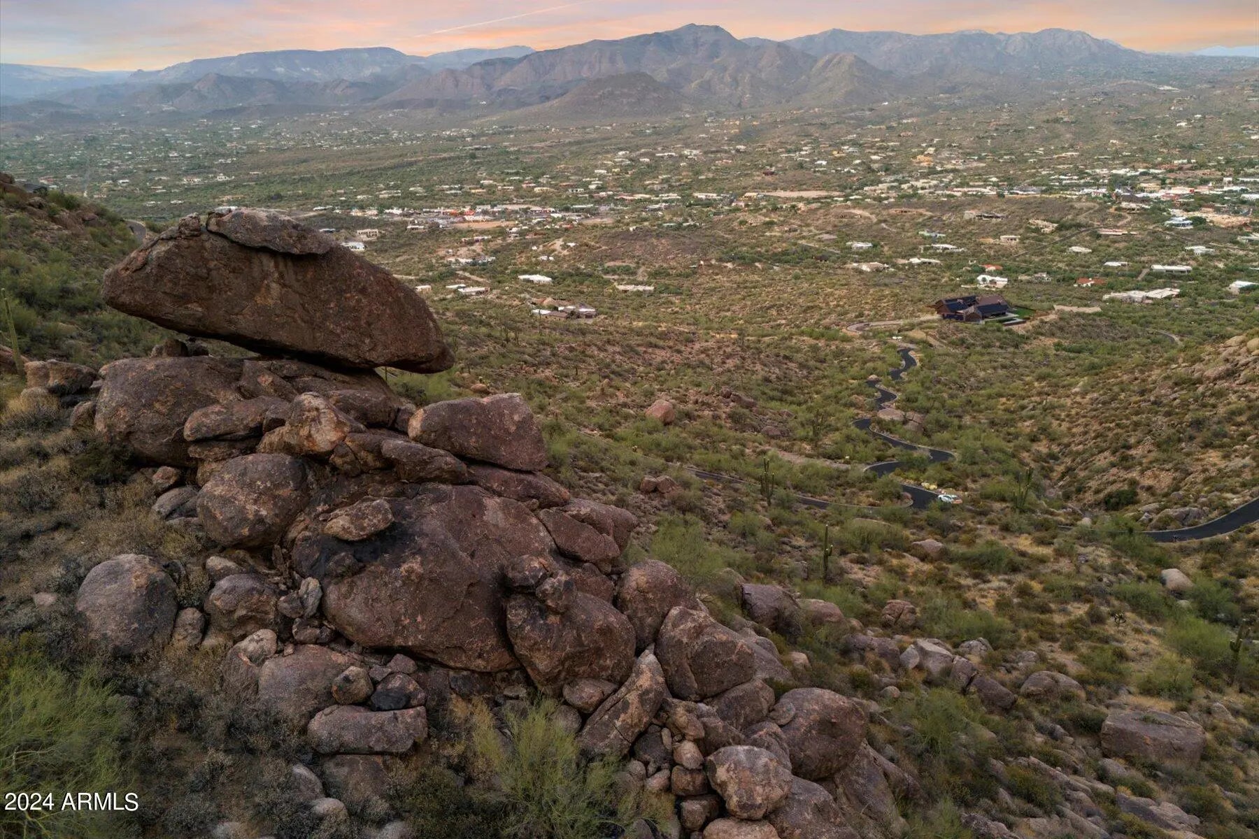 This exceptional 5.10-acre home site on the north slope of Black Mountain offers a serene and elevated setting in the prestigious, gated Hawksnest Subdivision. The gently sloping building site, adjacent to preserve land, provides easy access and incorporates a signature boulder into the design, surrounded by breathtaking views of the Continental Mountains, Elephant Butte, Skull Mesa, and Apache Peak. With paved roads and utilities on-site, this property offers high-quality, low-density living just minutes from golf, shopping, dining, and the charming towns of Carefree and Cave Creek, making it the perfect retreat.