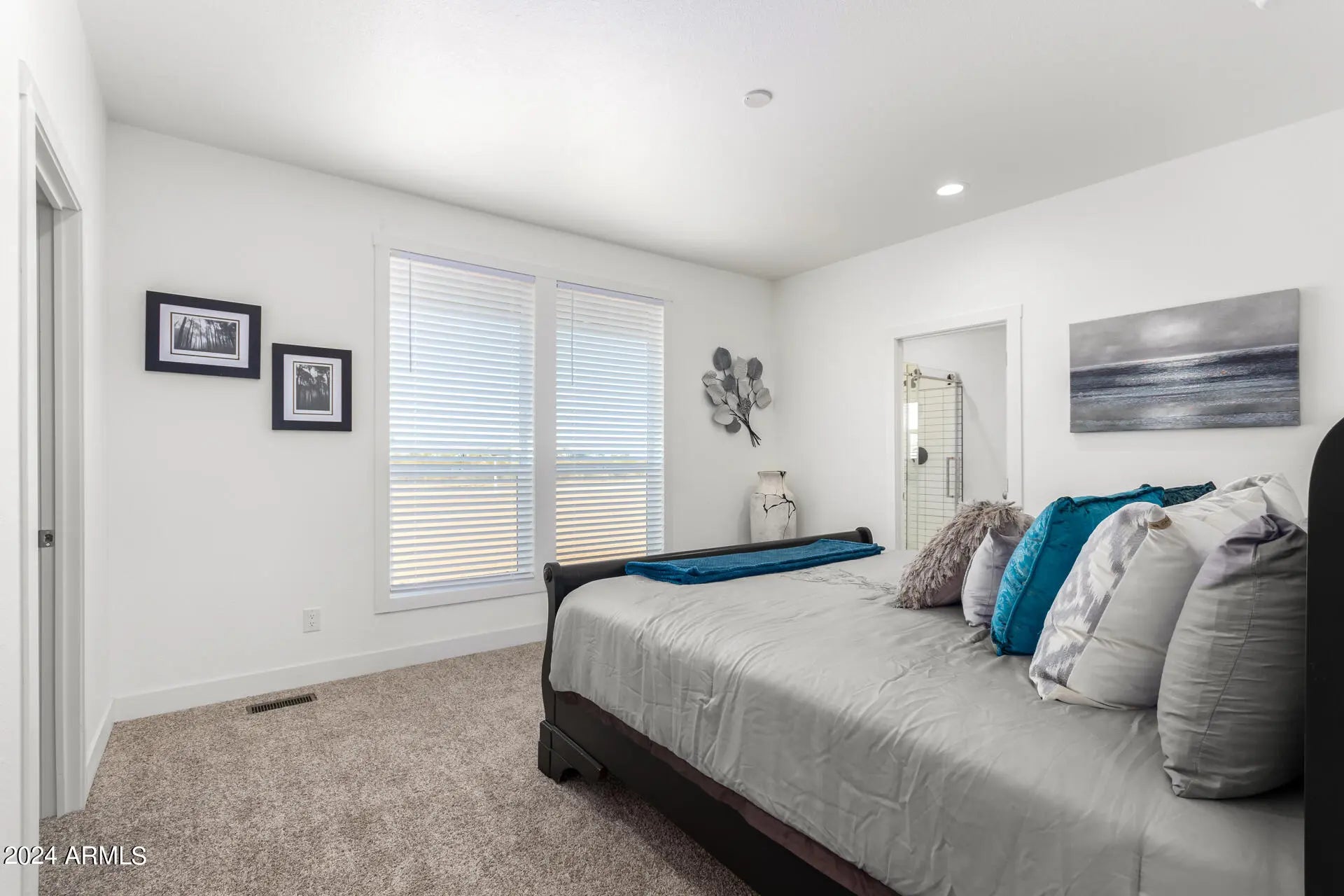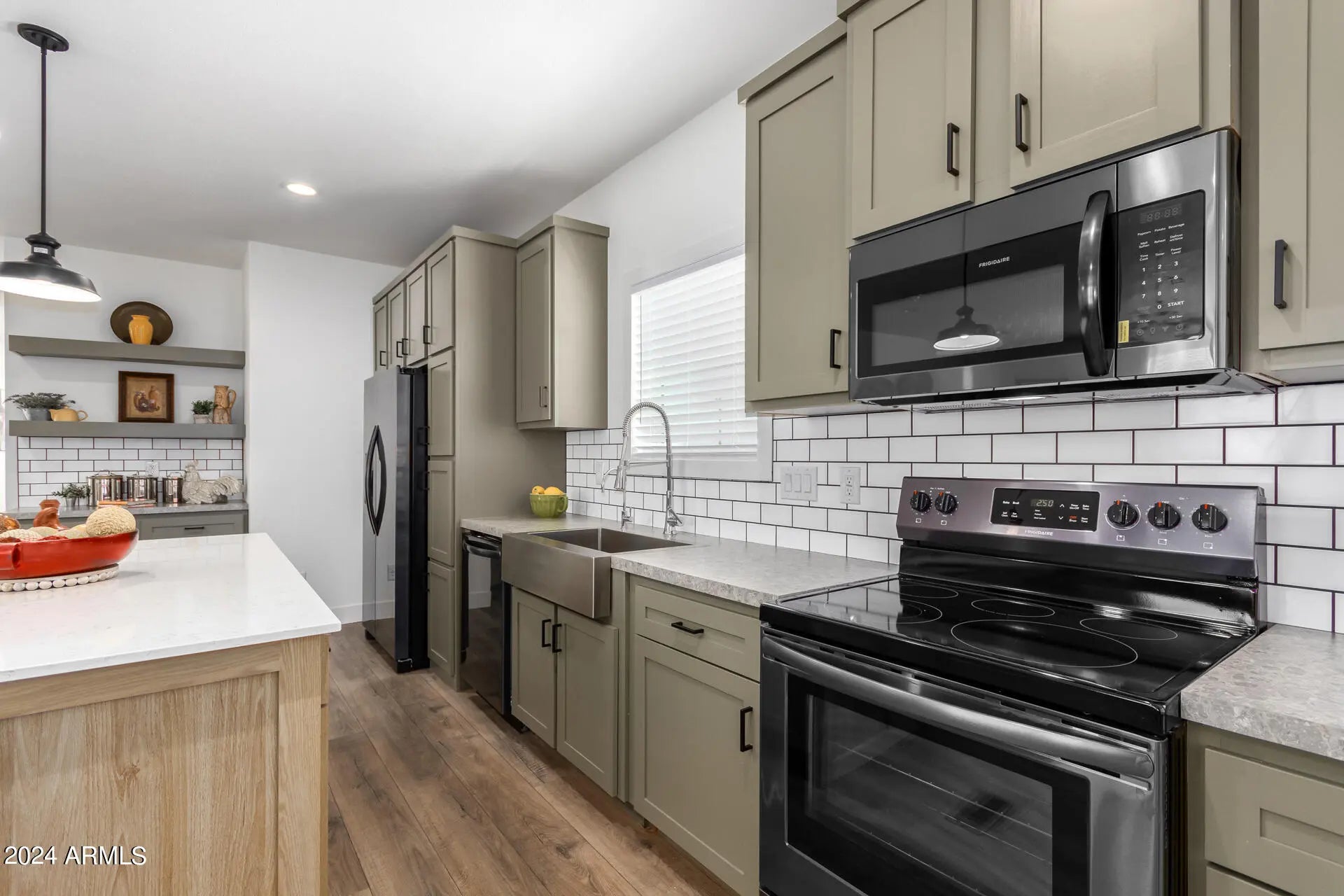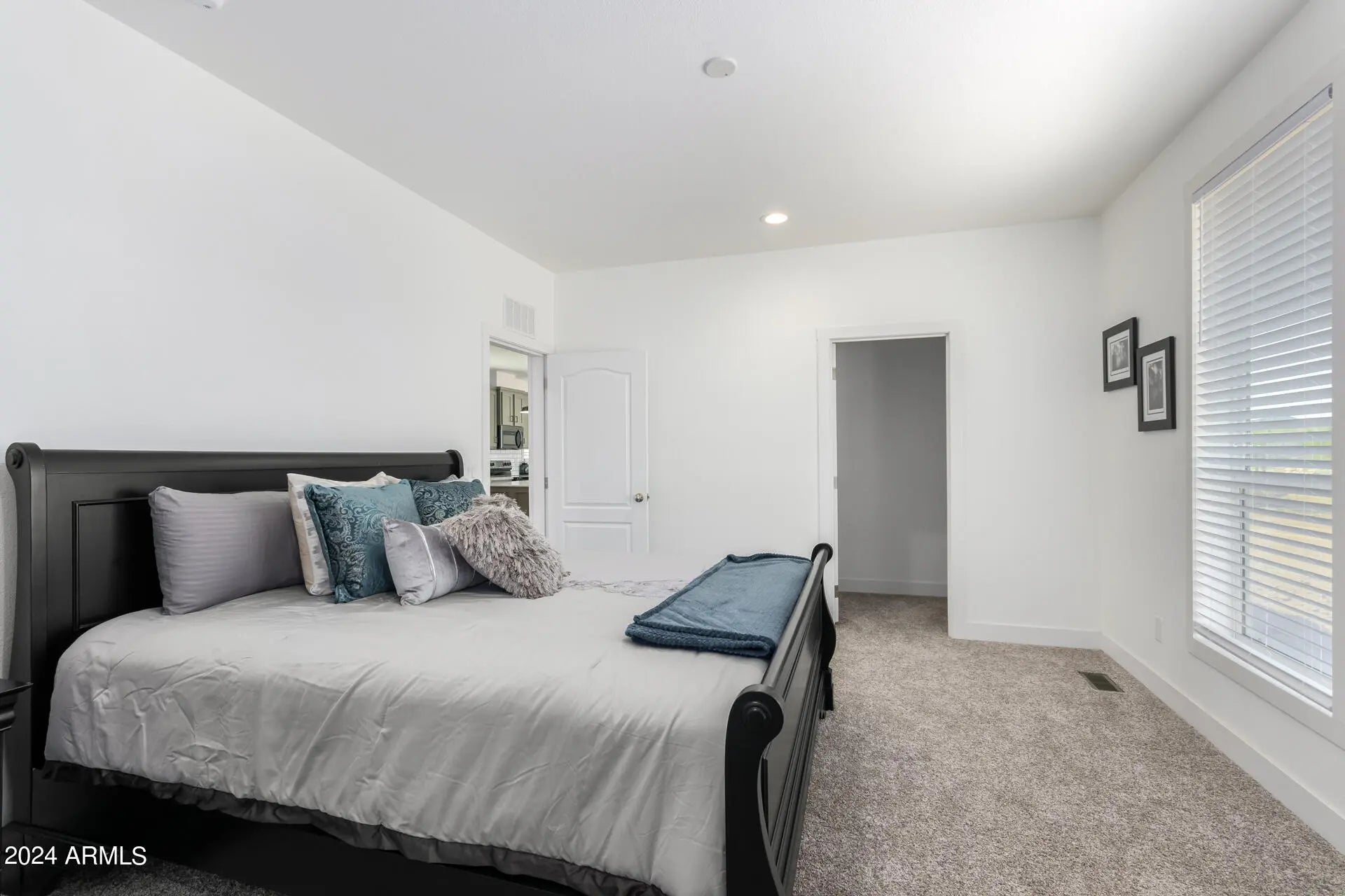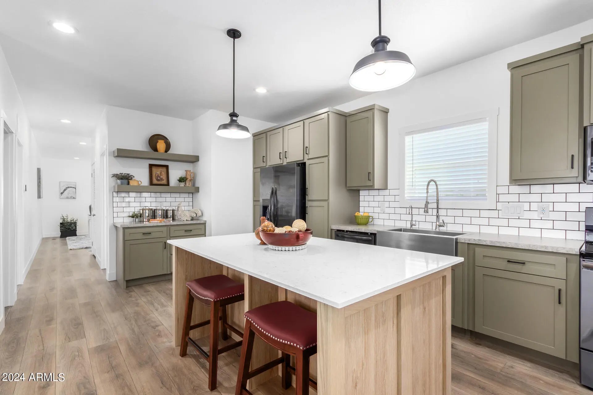 Fantastic, spacious split floor plan with 3 bedrooms, 2 baths plus an office/bonus room that could be easily be converted to a 4th bedroom by adding a closet. This home is over 2,000 sq ft with 9' ceilings, an upscale kitchen with an abundance of cabinet and drawer space, walk-in pantry, black stainless steel appliances, subway tile backsplash, and a quartz island bar. The serene primary bedroom provides a large walk-in closet, plush carpet and a pristine ensuite with dual sinks and a high-quality barn door style shower. Outdoors, enjoy a full cement walk around plus large 18'x84' cement patio on a supersized corner 1.75-acre lot. Shared well FHA-approved water system that is limited to only 4 Shared Well Owners. Turnkey! Elegantly-staged & decorated. All furnishings included.