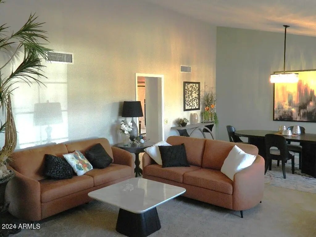 A newly furnished & beautiful 2 bedroom, 2 bathroom, 2 car garage, vacation rental on a quiet street in a nice neighborhood. 2103 sf with a large screened Arizona room with 2 exterior pavered patios. The back yard is block wall fenced for privacy. This home is a must see with 2 Rec. Center passes available for tenant purchase if desired. FIRST MONTHS RENT AND ALL DEPOSITS ARE REQUIRED TO RESERVE.