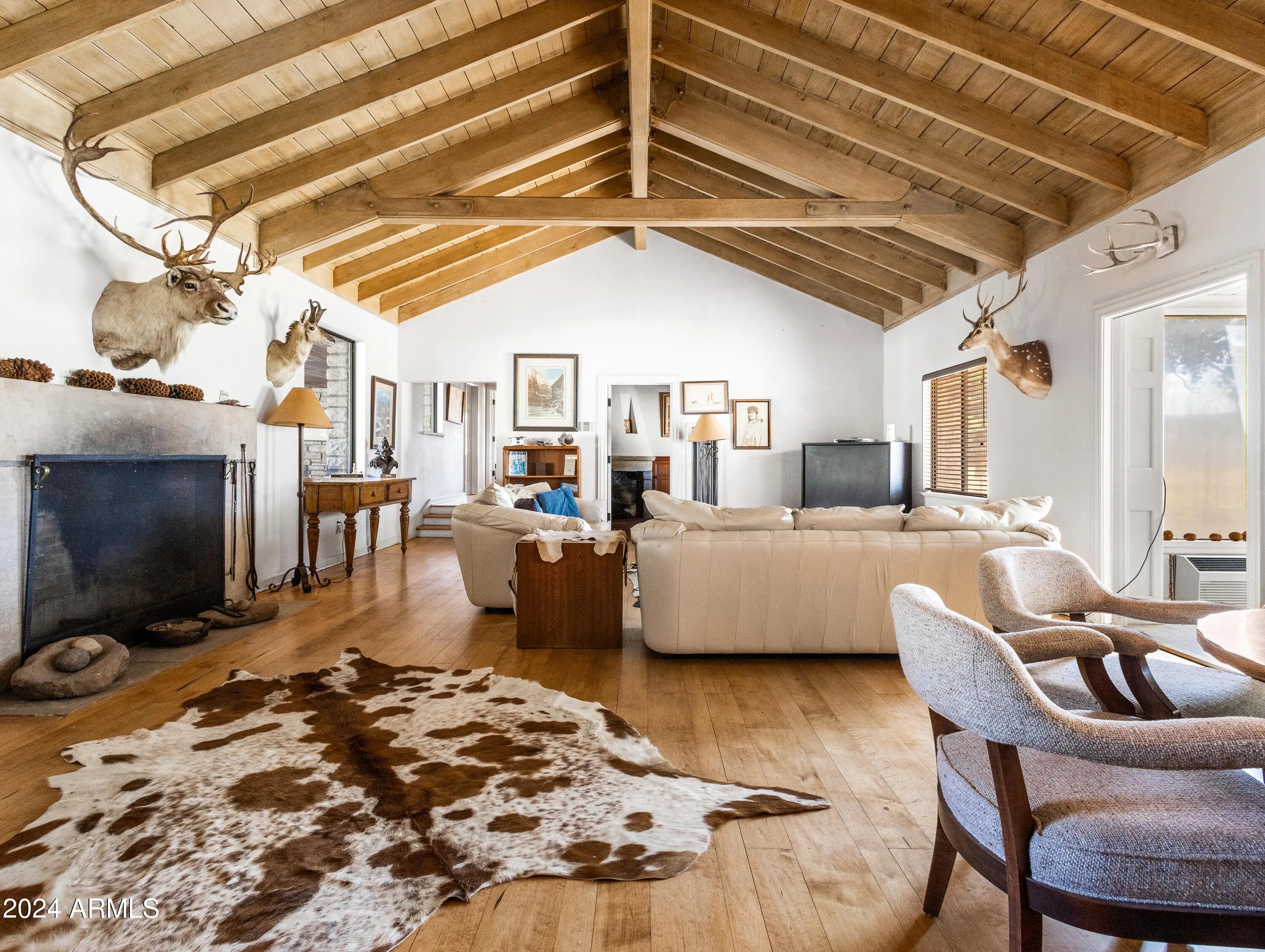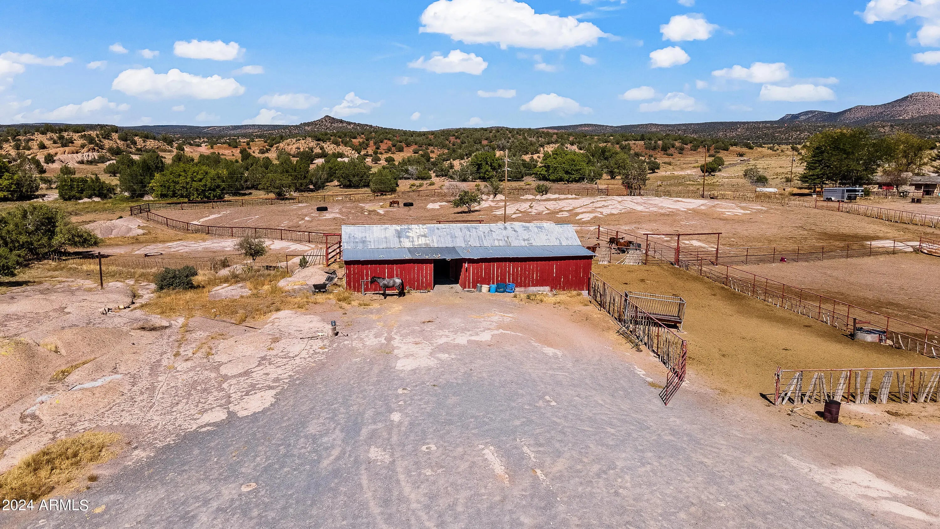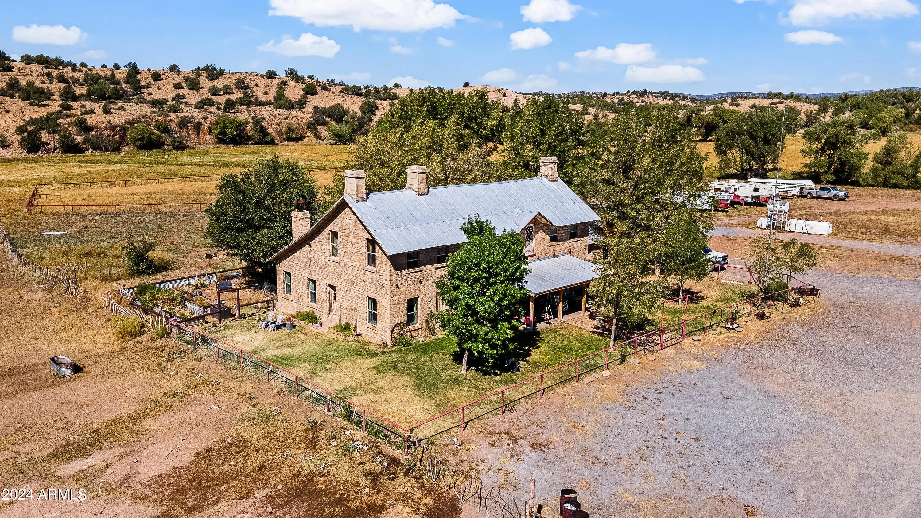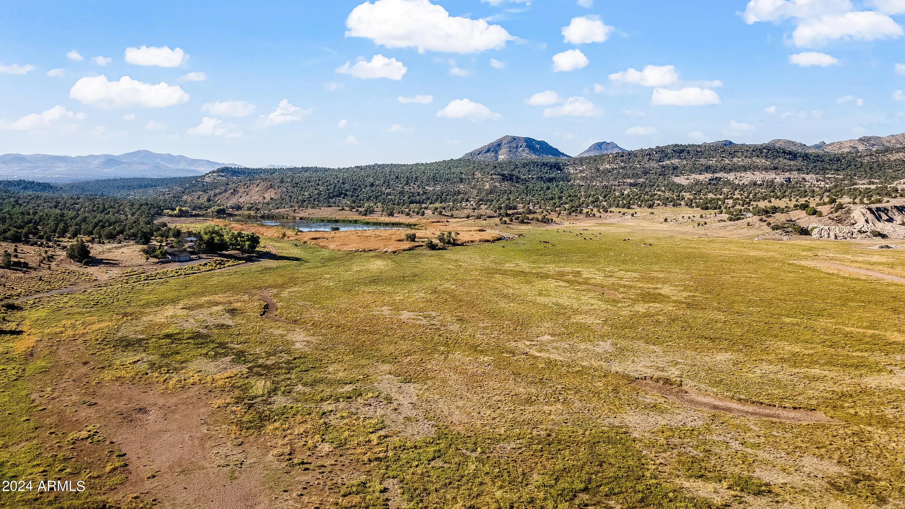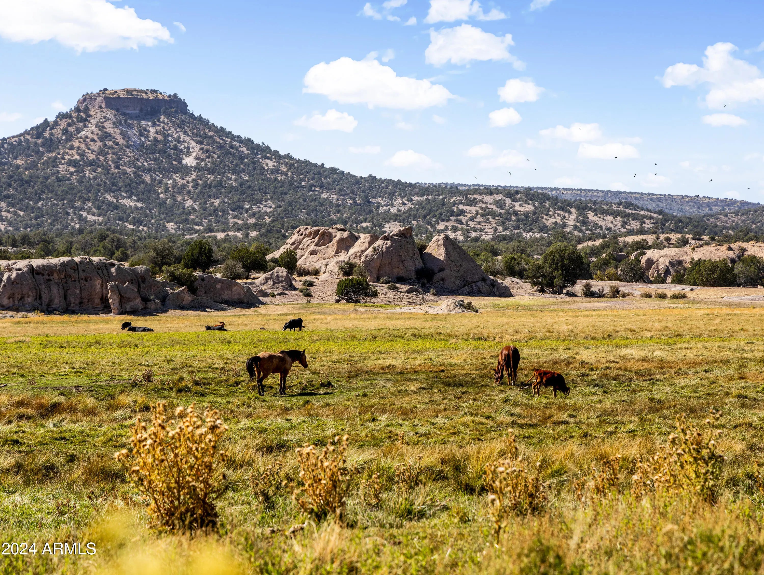 HISTORIC 'FORT ROCK RANCH' for sale in Seligman, AZ. Formerly the Buckman Stage Station, Fort Rock got its name after a battle in 1866 with the Hualapai Indians which was hard fought, and won, in the midst of the majestic rock formations surrounding the skirmish. Picturesque landscape is a feast for the eyes & soul. Breathtaking, panoramic views with widely varied topography. SEE AERIAL VIDEO in PHOTOS slide 2. Water abounds. 22 wells & multiple dirt tanks dot this 104,145 acre property. (52,677 deeded / 51,468 leased) Live water includes Meadow Lake, Upper Trout Creek, Fort Rock Creek, Tom Bacon Lake, Horse Lake & more w/ native species of fish. The Air Strip has been resurrected, with the first plane landing on site in over 30 years. EPIC! * Click 'MORE' for addt'l important details! * The iconic 'Fort', the home of the Ranch Foreman, was built in 1894 and still stands today in all its glory (3,660 sq ft). The main home, affectionately known as 'The Mellon House', was built in 1926 and is strategically located by Meadow Lake (5,737 sq ft). Several other structures house ranch employees. Bonus - secluded off grid cabin on the way to Trout Creek. Fort Rock is a working cattle ranch w/ apprx 600 head currently on the ranch. They are primarily black angus bulls w/ mostly black angus cross cows - but still some cross bred mix on the ranch. Cattle may convey with the right offer (954 AU's). 80+ acres of irrigated pasture possible. Ranching, hunting (elk, lion, deer) and other investment prospects abound. Fort Rock Ranch participates with the AZ Game and Fish Landowner Compact and enjoys a longstanding, mutually beneficial partnership. This is a rare opportunity to own a magnificent piece of western history.