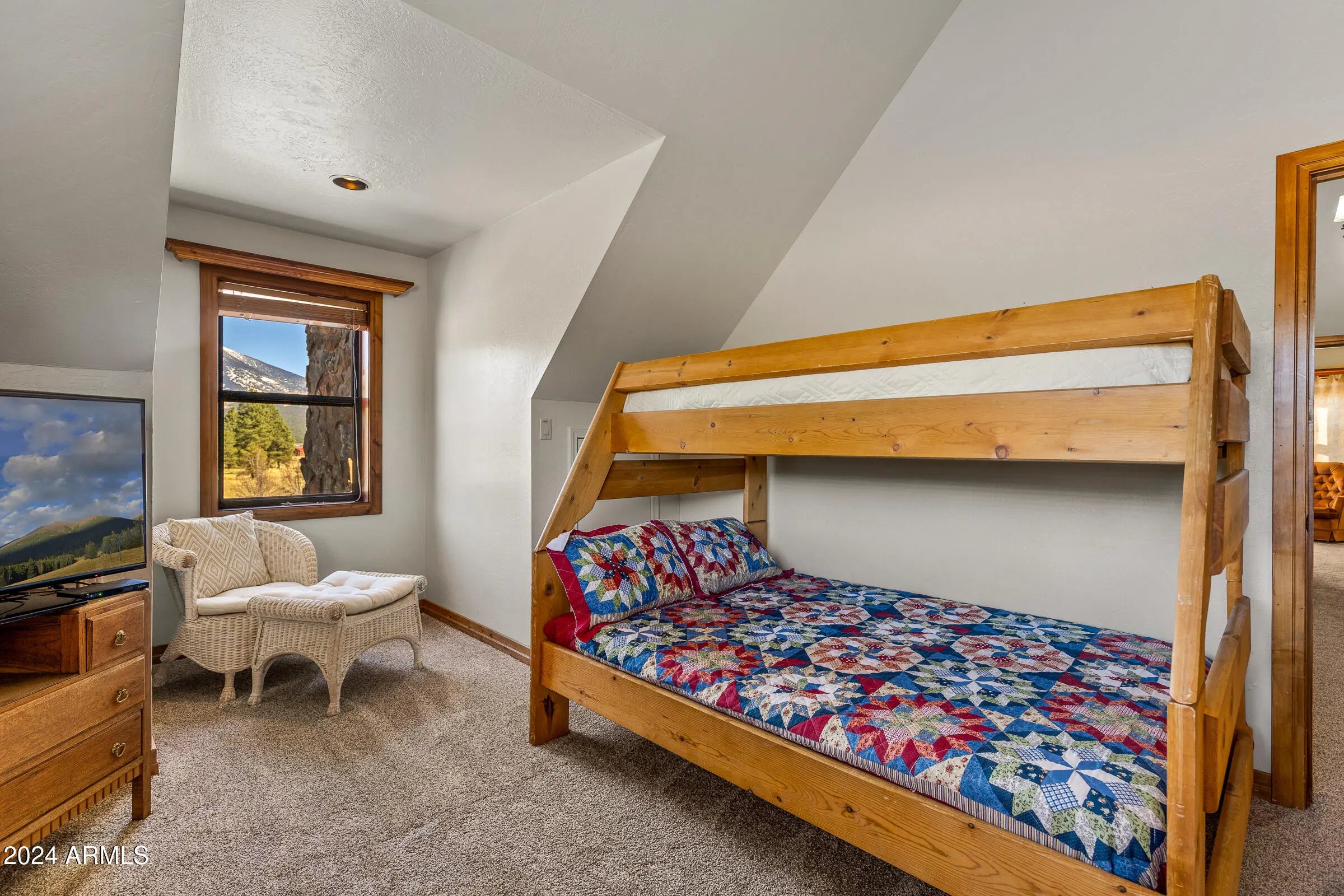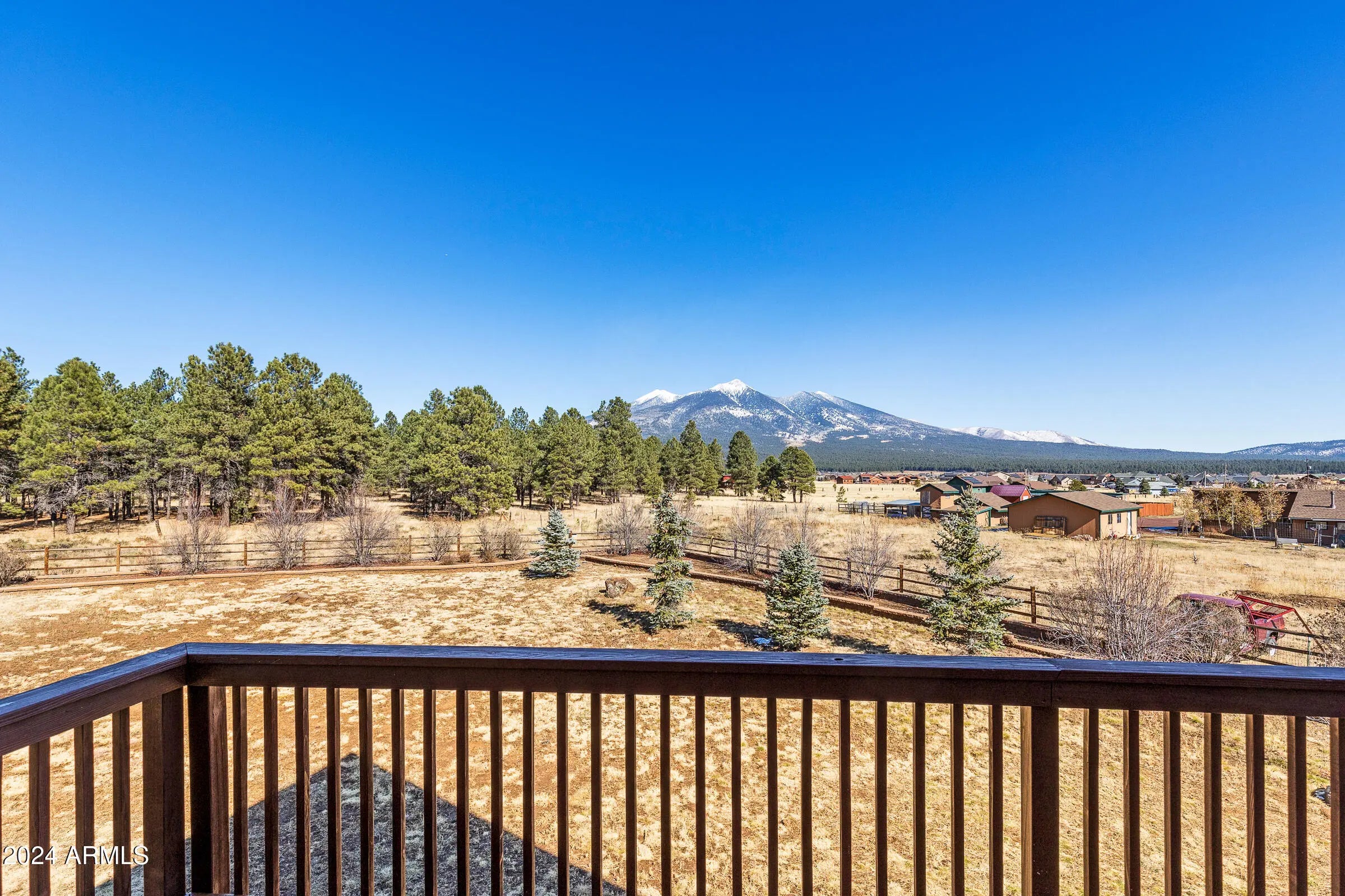 Vacation rental $500 per night 3 night minimum stay. This fully furnished 5-bedroom home is ideal for relaxing vacations & sleeps up to 14 guests. Hiking trails are all around without the crowds. The smell of pine in the air! Go for an isolated walk in the state forest land that backs up to the property. Soak in the hot tub & listen to the sound of the wind whispering through the leaves. Escape the Phoenix heat in Summer, enjoy changing leaves in Fall, play in the Winter snow, and enjoy Spring blooms! The main home features 4 bedrooms: two en-suite rooms upstairs & 2 bedrooms downstairs. In the carriage house, you'll find a downstairs bedroom & bath, plus a dramatic loft with stellar mountain views, balcony, a spacious play area, pool table, office space and an additional bed. Unwind in the hot tub with breathtaking mountain views, or enjoy the wrap-around porch for gorgeous views in every direction. Relax on the front deck to catch some world-class sunsets or bask in the crisp mountain air. Inside, catch a movie, work in the cozy desk area, or enjoy a game of pool. With direct access to the State Forest and a large fenced yard, there's plenty of room for both adults and kids to enjoy the outdoors. This mountain retreat promises an unforgettable experience! Weekly & nightly rental rates available with a 3 night minimum! Located just 5 minutes from Snowbowl Ski Resort entrance, 20 minutes from Flagstaff's vibrant downtown shopping, dining & NAU. 1.5 hours to the Grand Canyon & 50 minutes to Williams. This property offers the ideal blend of adventure and relaxation.