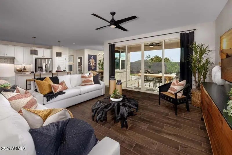 FORMER MODEL HOME! This exquisite 4-bedroom, 3-bathroom, single story gem boasting an open concept layout, spacious study, gourmet kitchen, and a center meet 12ft sliding glass door, inviting you out to a fully completed backyard, perfect for entertaining and relaxation! This home is beautifully finished with high-end details throughout, showcasing the latest in modern design. Smart Home technology enhancements that promote comfort and convenience, allowing you to control your environment with ease. Don't miss the chance to own this stunning model home, offering both luxury and functionality in every space! Furniture is not included, but may be offered for an additional fee.