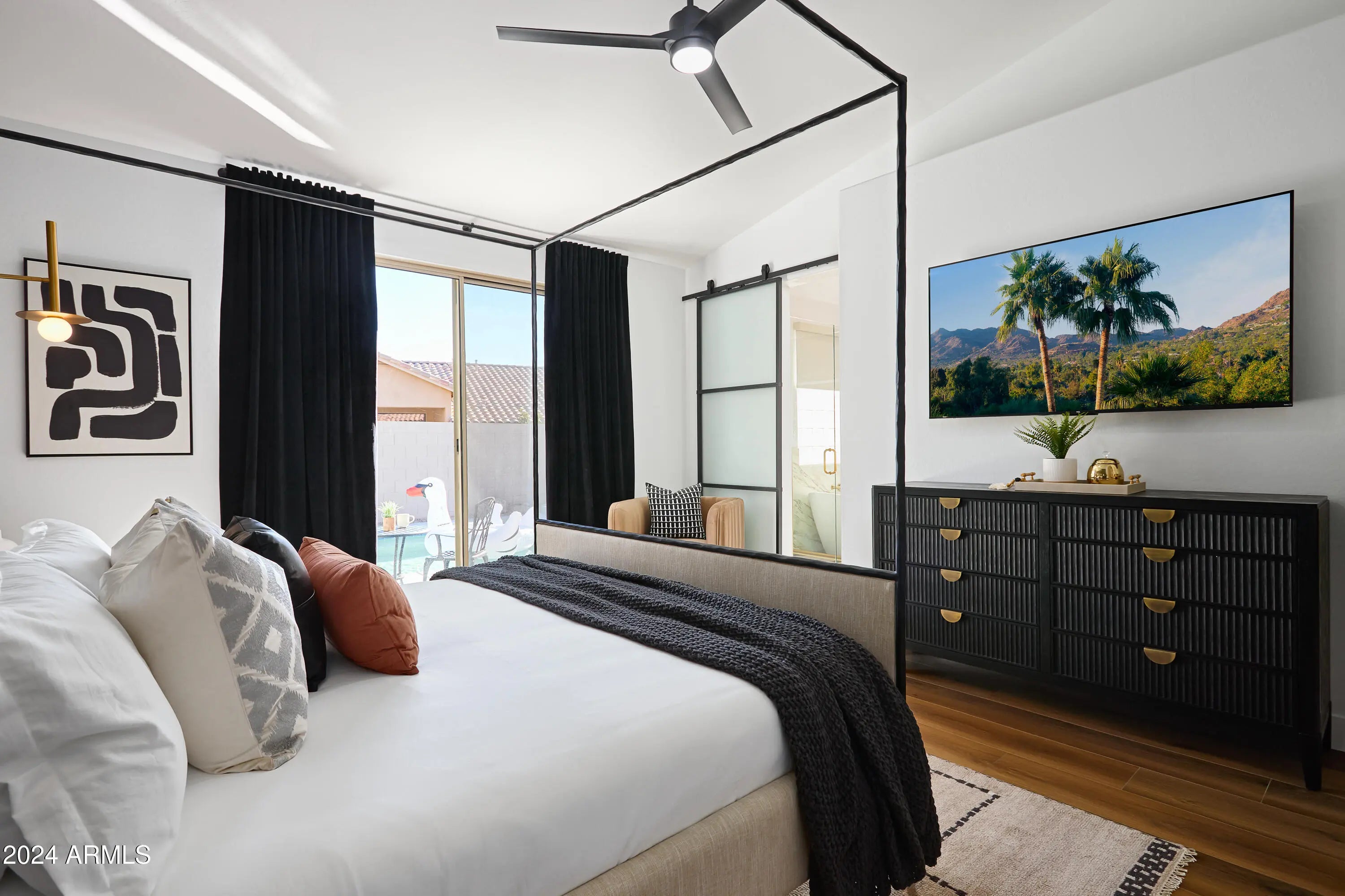 *APR THROUGH JUN, 3 MONTH RATE POSTED* Stunning Full Renovation to Euro-Modern Style-Everything's NEW from Top to Bottom. Enormous Island Kitchen, Wide Open GreatRoom Layout, All New Beds/Baths, Office Space, Furnishings and Equipment! Elegant Style, Professionally Designed/Decorated. Resort Backyard w/Heated Pool, HotTub, Pool Cabana, FirePit, Gas Grill, Outdoor Dining, Sun Loungers, Putting Green, Games -It's All Here! Seasonal Rental hosted by 5-Star Owners with 100s of 5-Star Reviews. 1-Story, 4 Bedrooms (3 Kings!), Outstanding Scottsdale Location, McDowell Mountain Views, 3-Car Garage, Universal EV Charger, Beach Cruisers, PingPong, Fast WiFi, Pet Friendly. Close to TPC/Phoenix Open, Spring Training, Scottsdale Airpark, WestWorld, TheQuarter, hiking, world-class golf +medical: 5 minutes to Envita, close to Scottsdale Shea Honor Health, 3 Mayo Clinics, Banner Health, more. Walk or bike to the large neighborhood park, nearby restaurants and shops. Baby Toddler Package and SUV available for rent on a first come first serve basis for our 9 properties. -Monthly Seasonal Rates based on 3 month terms (preferred, not required): Jan-Apr $20,695, Oct-Dec +May $13,500, Jun-Sept $8,595. Inquire for different term seasonal rates. Tell us animal details (breed, age, weight, send a pic) for an accurate quote. -Inquire for 9 more beautifully upgraded, fully furnished rentals in the area.