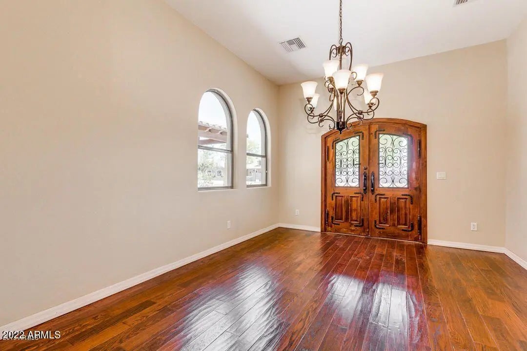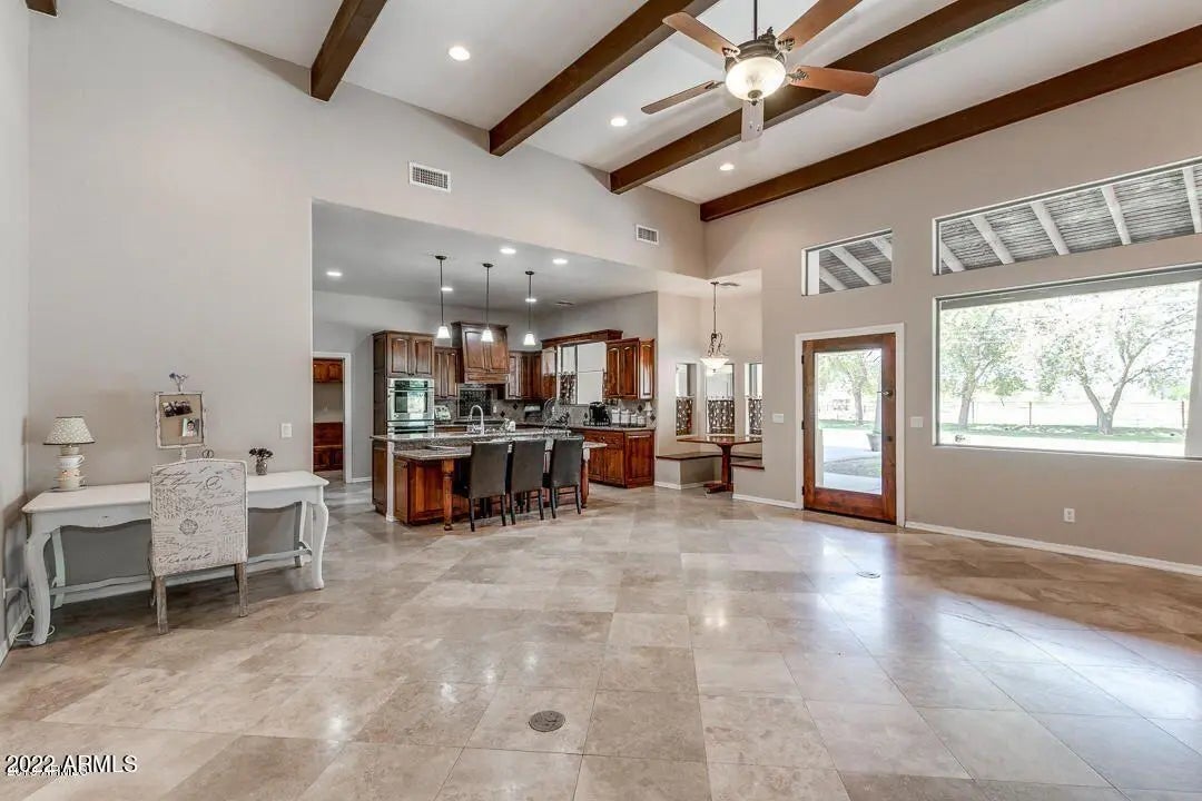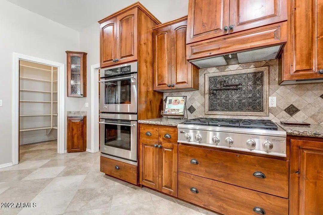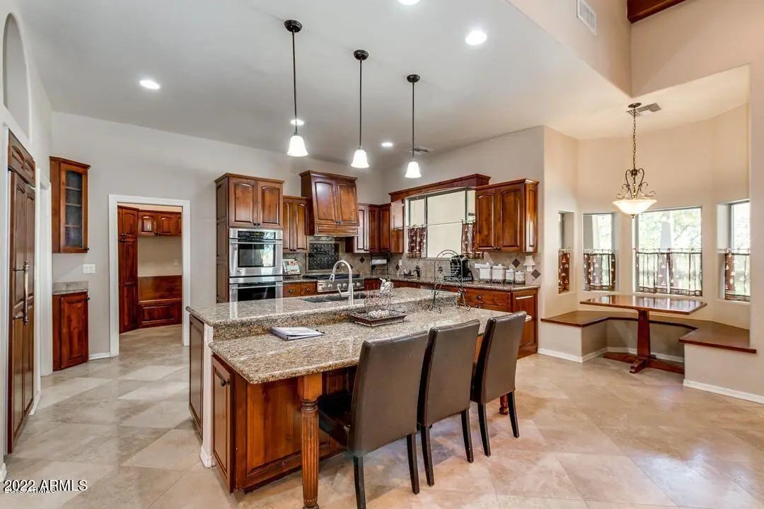 CUSTOM HOME IN A PRIVATE 1.25 ACRE LOT AT A PRIME CHANDLER LOCATION FOR SALE!!! . NO HOA !! Single level custom house over 3000 square feet. Home is filled with many custom details. High ceilings. A nice 4 bedroom and a den or a true 5 bedrooms. Gourmet kitchen with pot filler faucet, granite counter top, beautiful cabinetry, gas stove, built-in refrigerator and high-end appliances. Snail shower in master bedroom. 4 large car garages with a decorative pass through garage door on the opposite side. Lots of extra rooms for storages and boy's toys. A nice extended cover patio. Horse are allowed. Irrigated lot! Must See! Don't miss It!